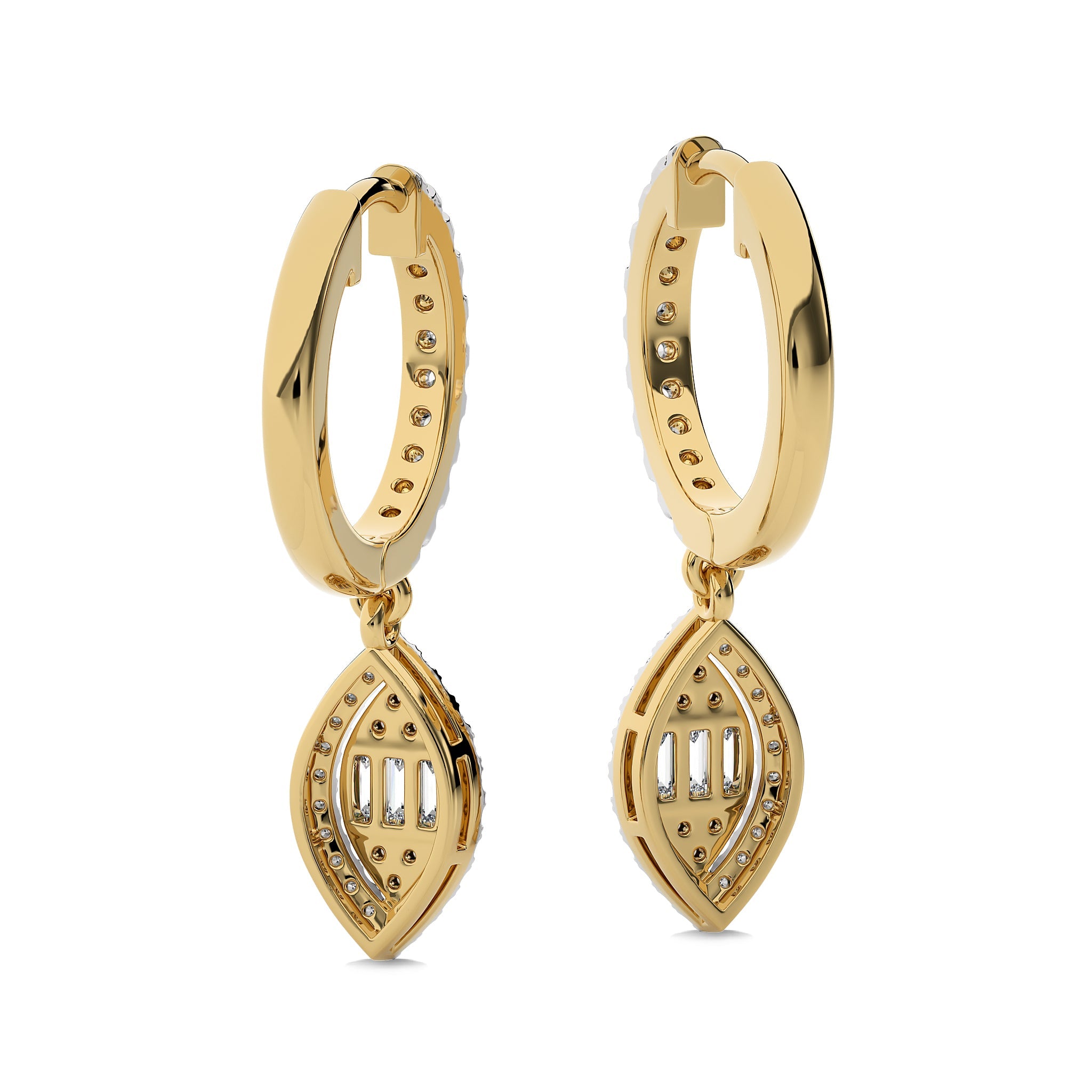 Enrich your jewelry box with these 1/2 CT. Round and Baguette Lab-Created Diamond Lever Back Halo Drop Earrings, featuring DEF/SI quality diamonds set in prong, micro split, and channel settings. Their exquisite design and brilliance make them a must-have accessory that complements any look