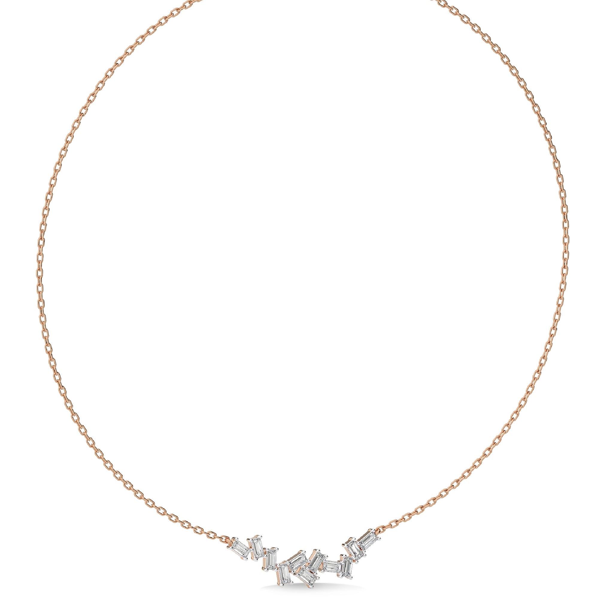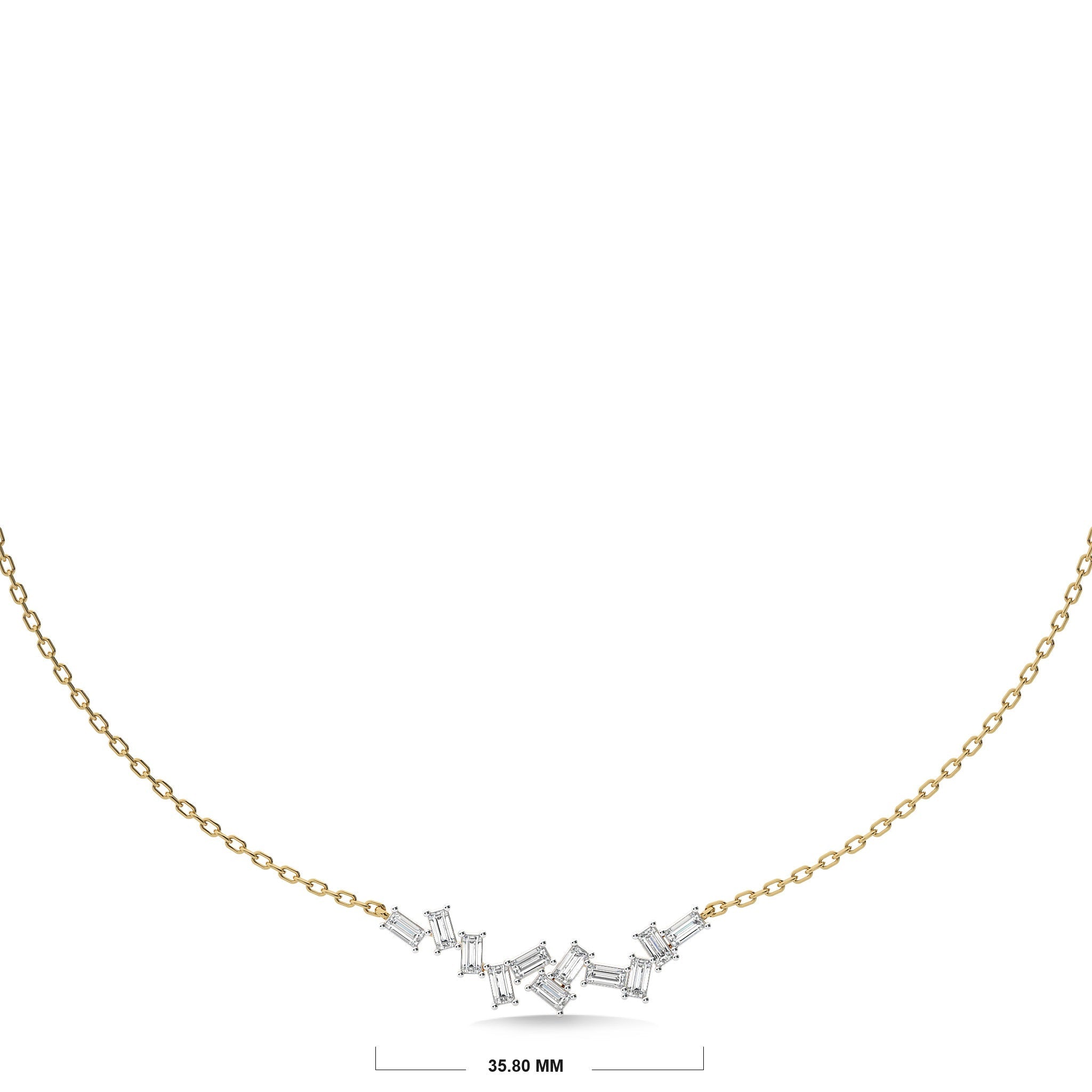 Improve your aesthetic with this 7/8 CT. Baguette Lab Created Diamond Pendant Necklace, featuring DEF/SI quality diamonds. Prong set for stunning clarity, this necklace effortlessly complements any outfit. Enhances your presence for any gathering
