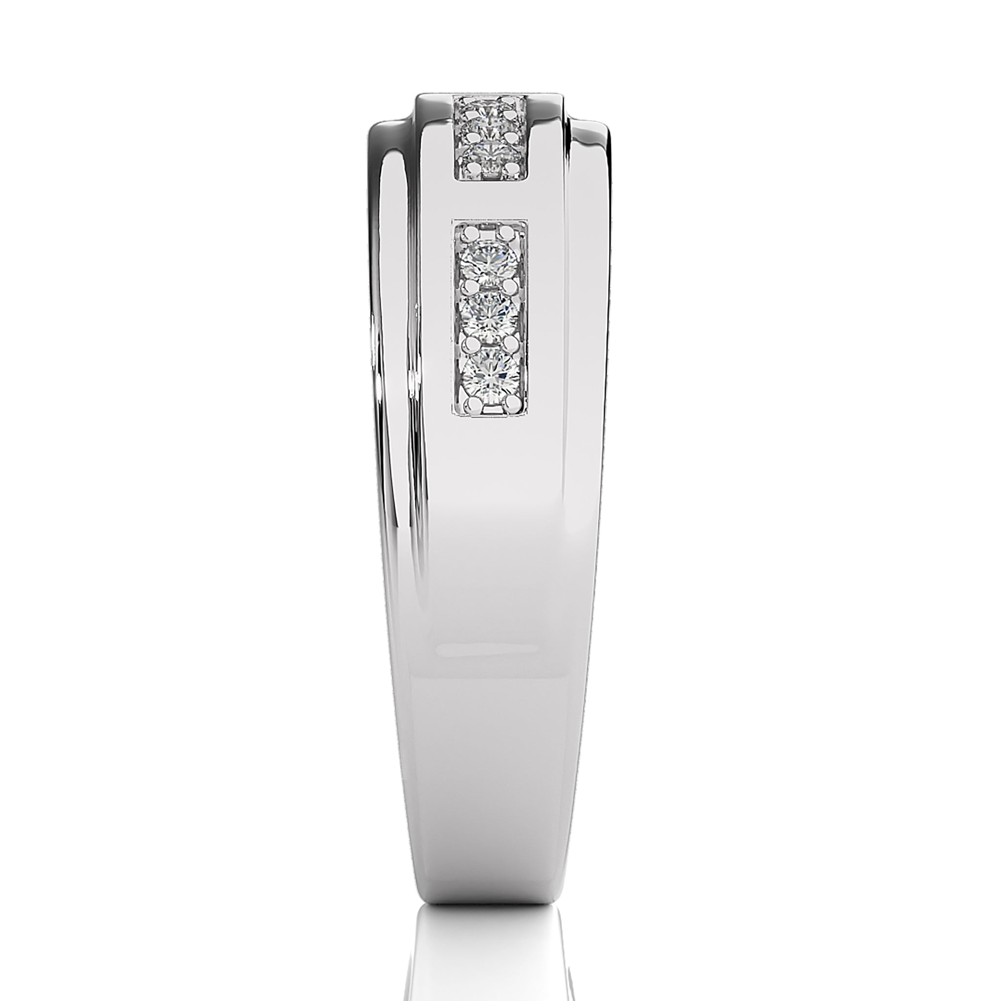 Sophistication meets style in the Maurice Men's Diamond Engagement Band Ring. Adorned with a brilliant 1/4 carat round lab created diamond in a pave setting, this ring exudes elegance and charm, making it a perfect expression of your enduring love