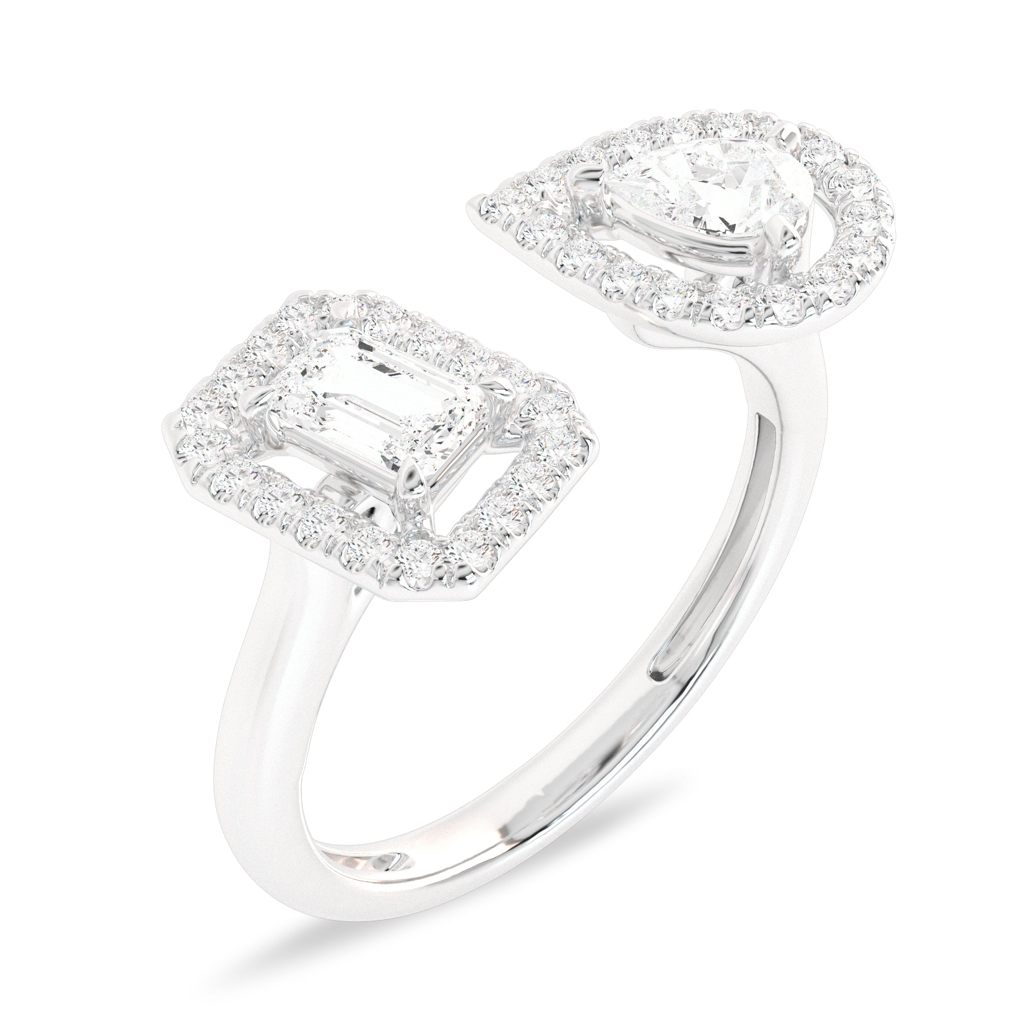 3/4 CT. Two Headed pear and Emerald cut Lab created Diamond Ring