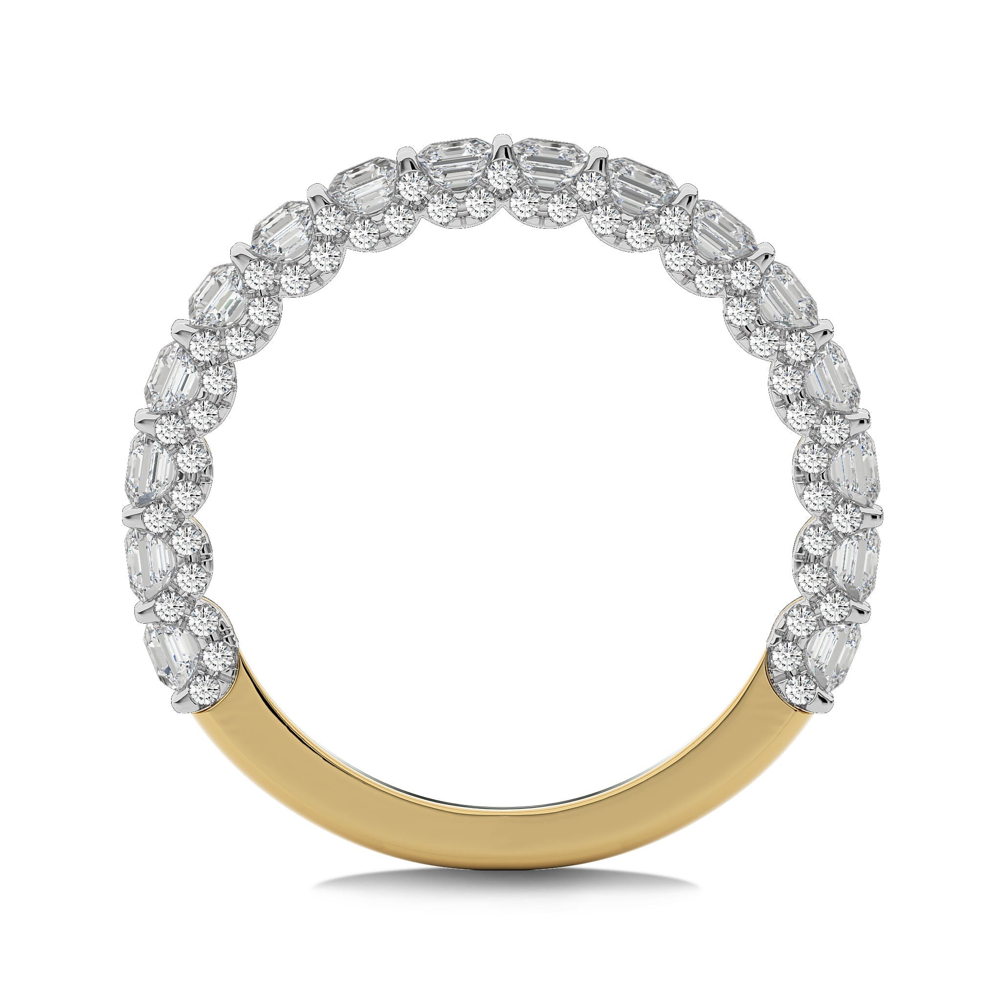 Bask in the luxury of this 2 CT. Asscher and Round Lab Created Diamond Wedding Band. Set in a delicate combination of micro split and prong settings, the alternating Asscher and round diamonds, showcasing DEF/SI quality,Perfect for celebrating everlasting love or adding a touch of opulence to any ensemble, this band promises timeless allure and enduring brilliance