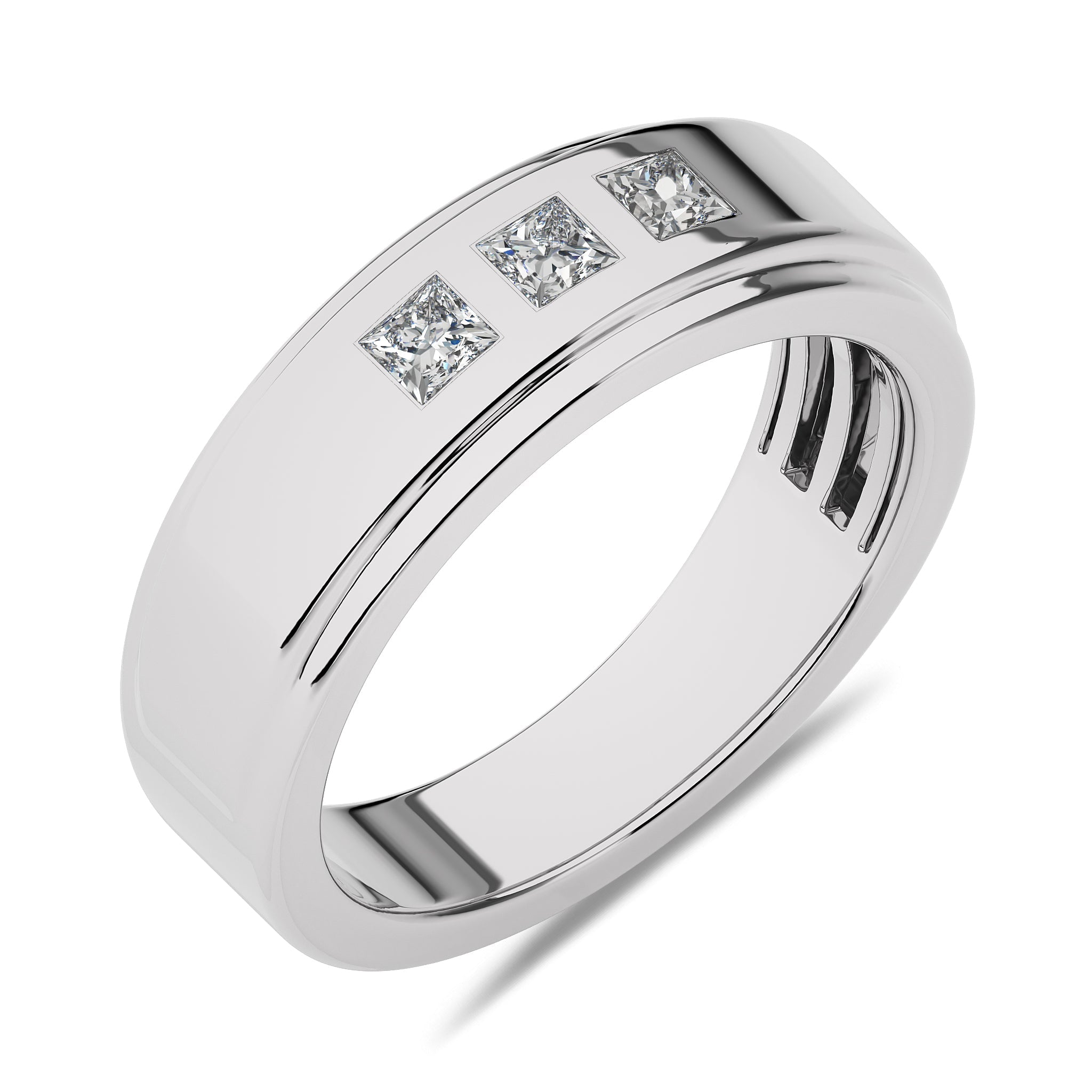 Pamper yourself with this luxurious 1/2 CT. princess-cut Lab Created diamond half eternity band, featuring DEF/SI quality diamonds in a sleek channel setting.Designed to symbolize everlasting love and timeless beauty, this band shines brightly with every gesture