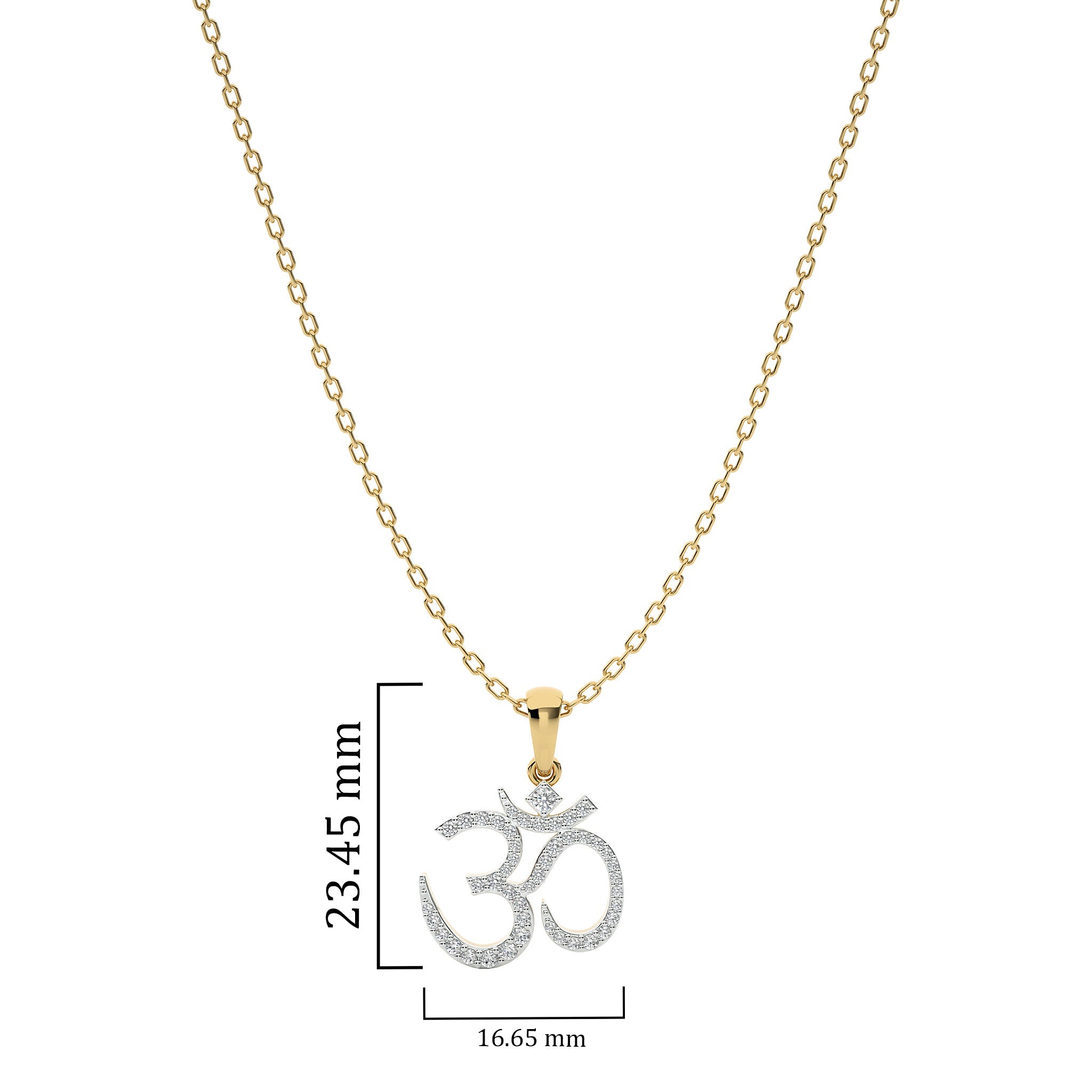 Embrace spiritual elegance with this 1/4 CT. Round Natural Diamond Om Pendant, showcasing H-I/I1-I2 quality diamonds. Prong set for radiant sparkle, this pendant beautifully symbolizes peace and harmony. A meaningful piece perfect for everyday wear or as a thoughtful gift