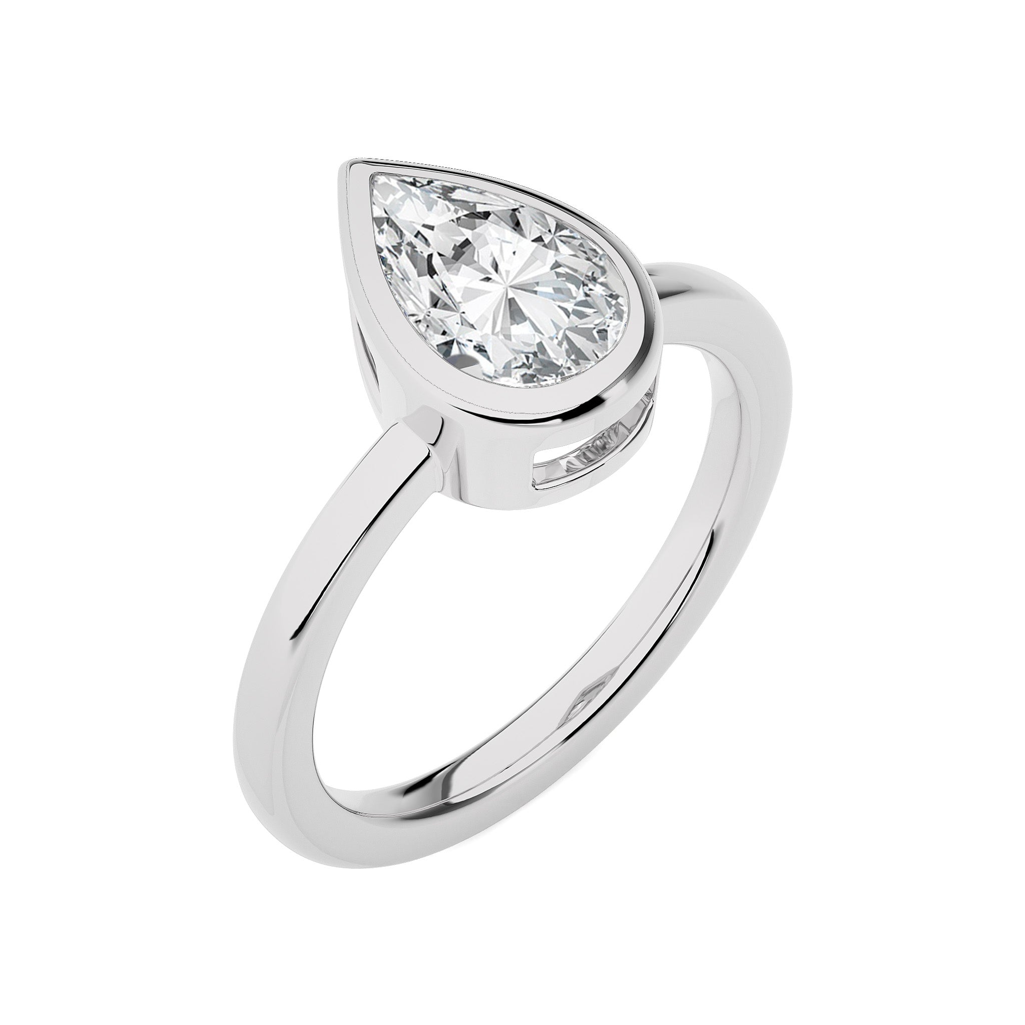 1 1/2 CT. Bespoke Bezel Set Pear Natural Diamond Engagement Ring