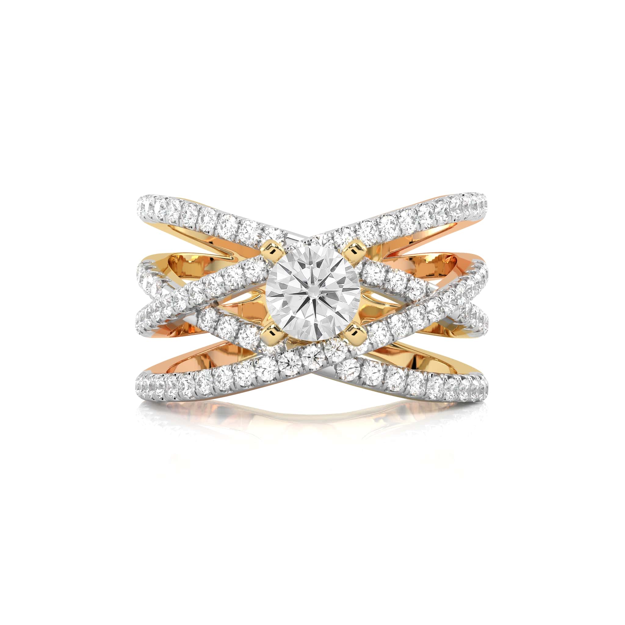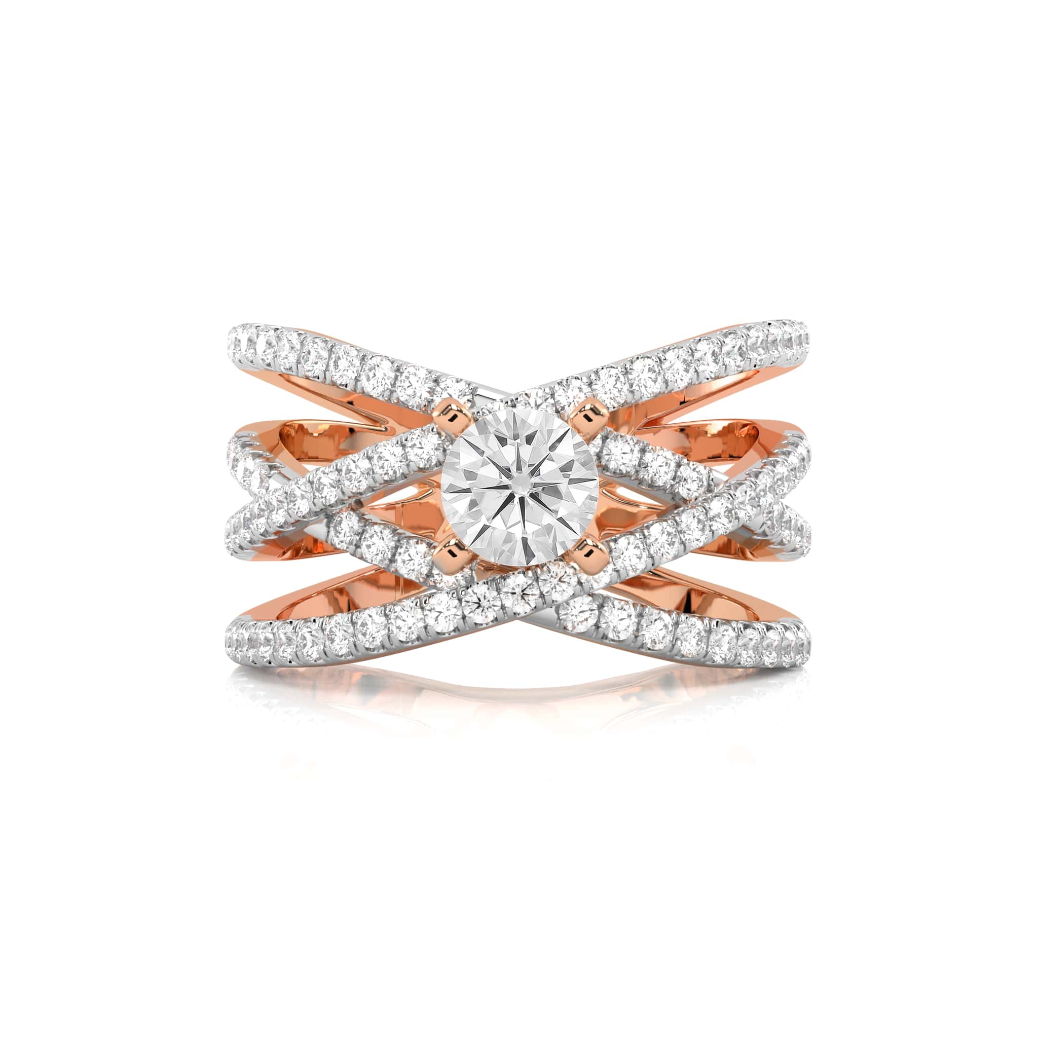 Discover the charm of this 1 CT. Round Natural Diamond Criss Cross Ring, featuring H-I/I1-I2 quality diamonds in a delicate micro and prong setting. The intertwining design adds depth and brilliance, making it a radiant symbol of elegance and grace
