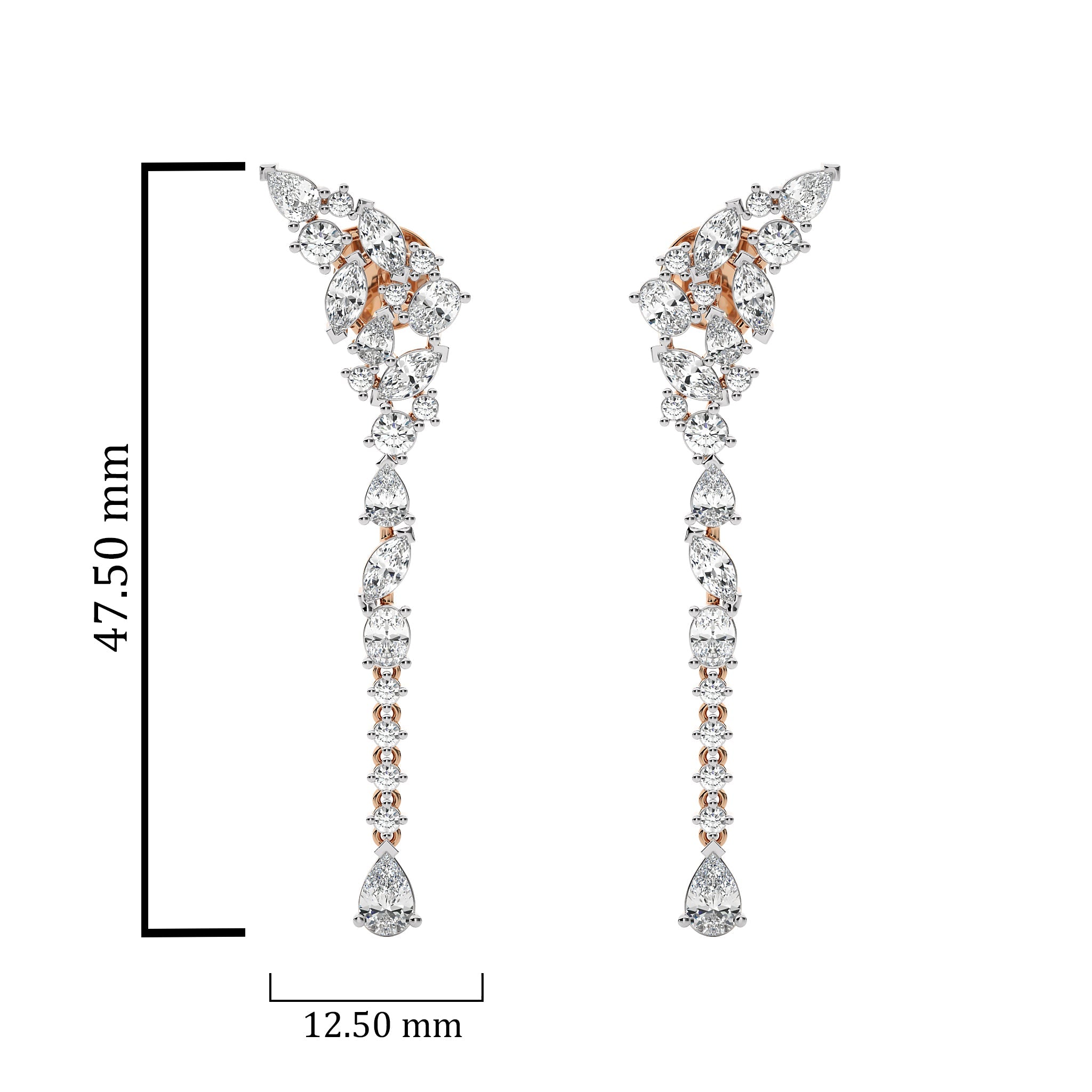 Grace your ears with the timeless allure of these 2 3/4 CT. Mixed Shape Natural Diamond Drop Earrings. Prong-set in elegant harmony, each diamond, ranging in shapes from round to pear and marquise, Oval radiates with captivating brilliance. Reflecting timeless elegance and shimmering brilliance, perfect for any occasion