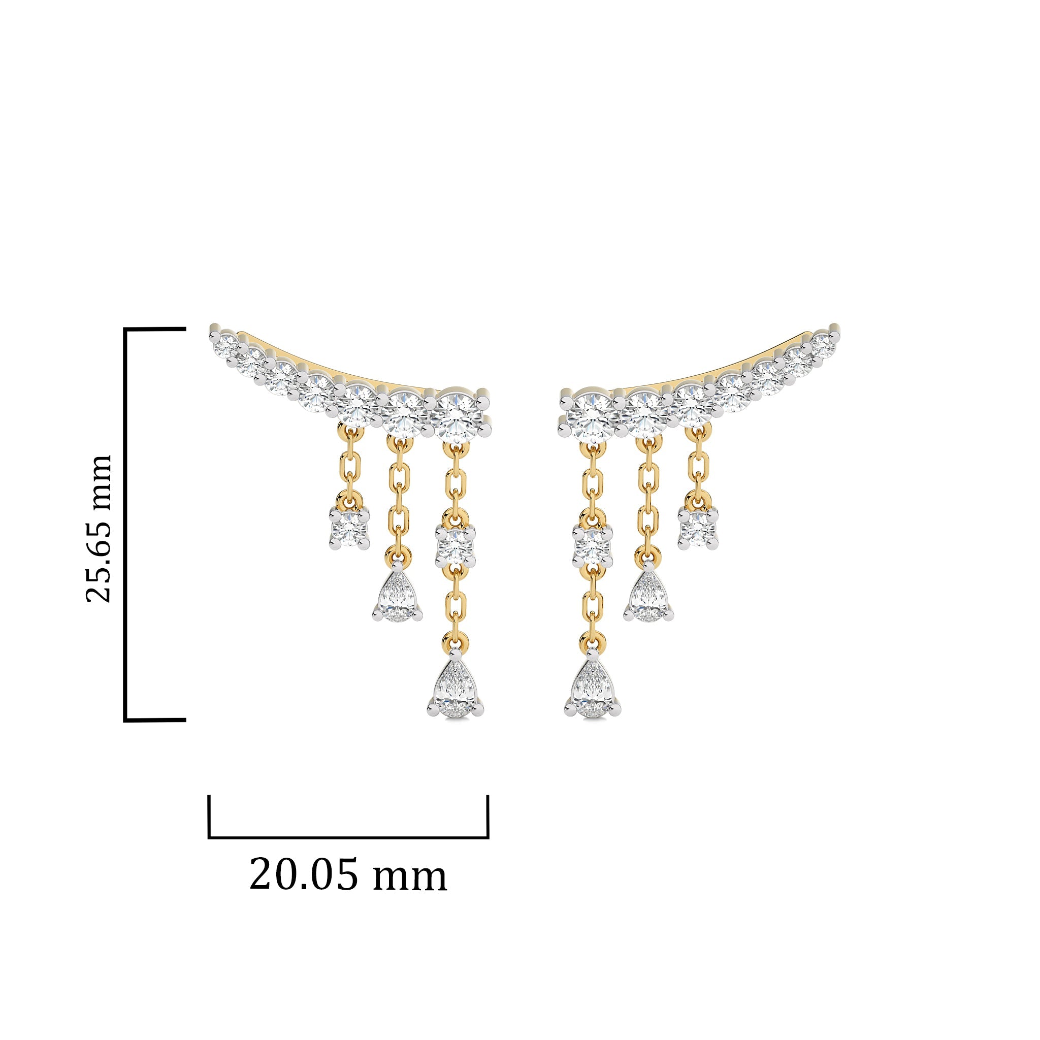 Augment your style with these 2 CT. Showering Shimmer Pear and Round Climber Drop Earrings. Featuring H-I/I1-I2 quality diamonds in elegant prong settings, the pear and round diamonds create a dazzling cascade of sparkle. Perfect for special occasions or adding a touch of luxury to everyday wear, these earrings promise enduring brilliance and timeless beauty