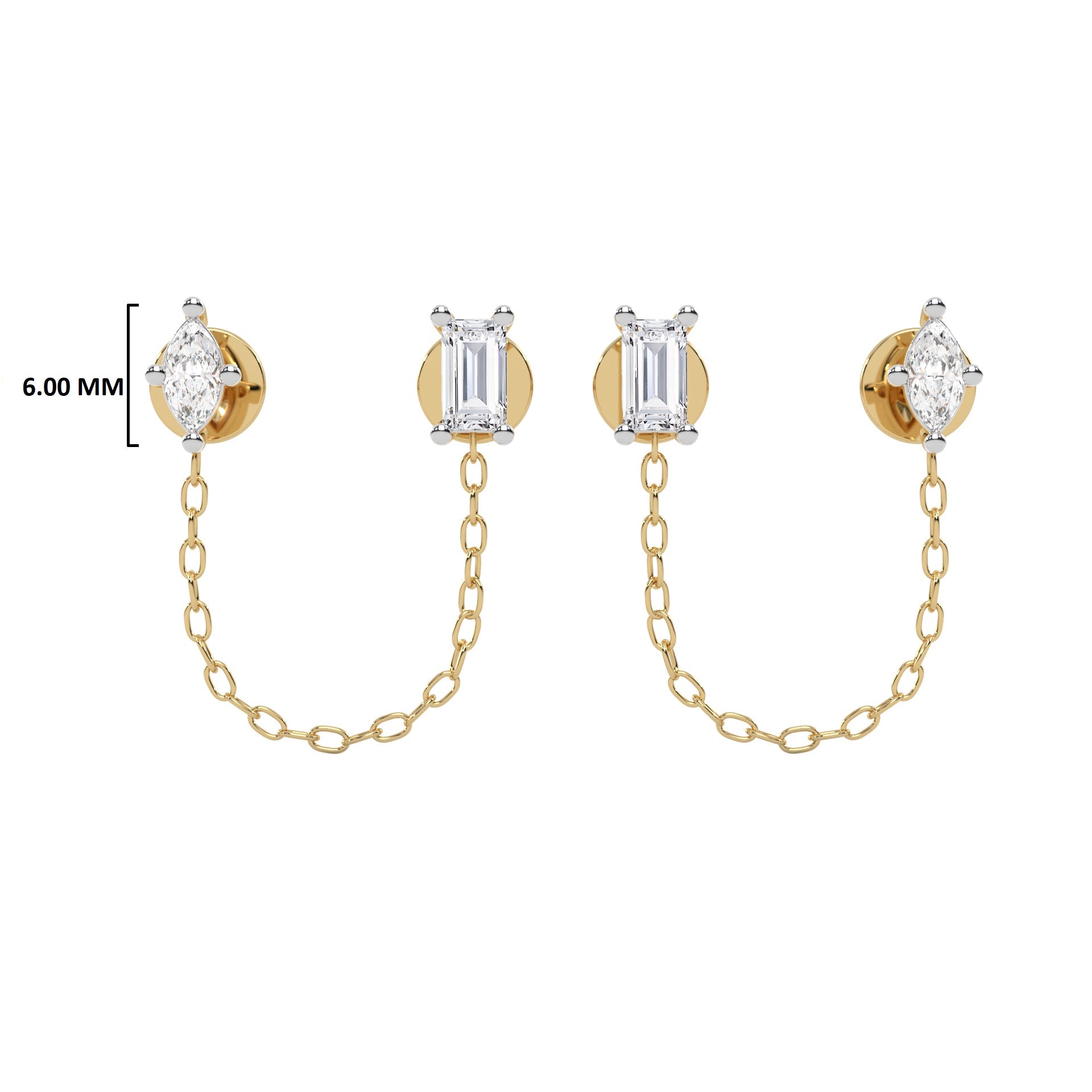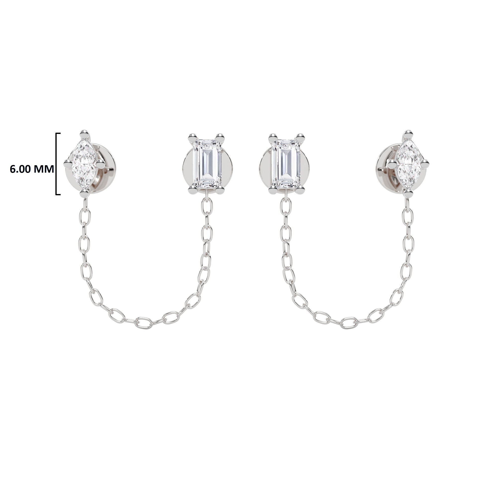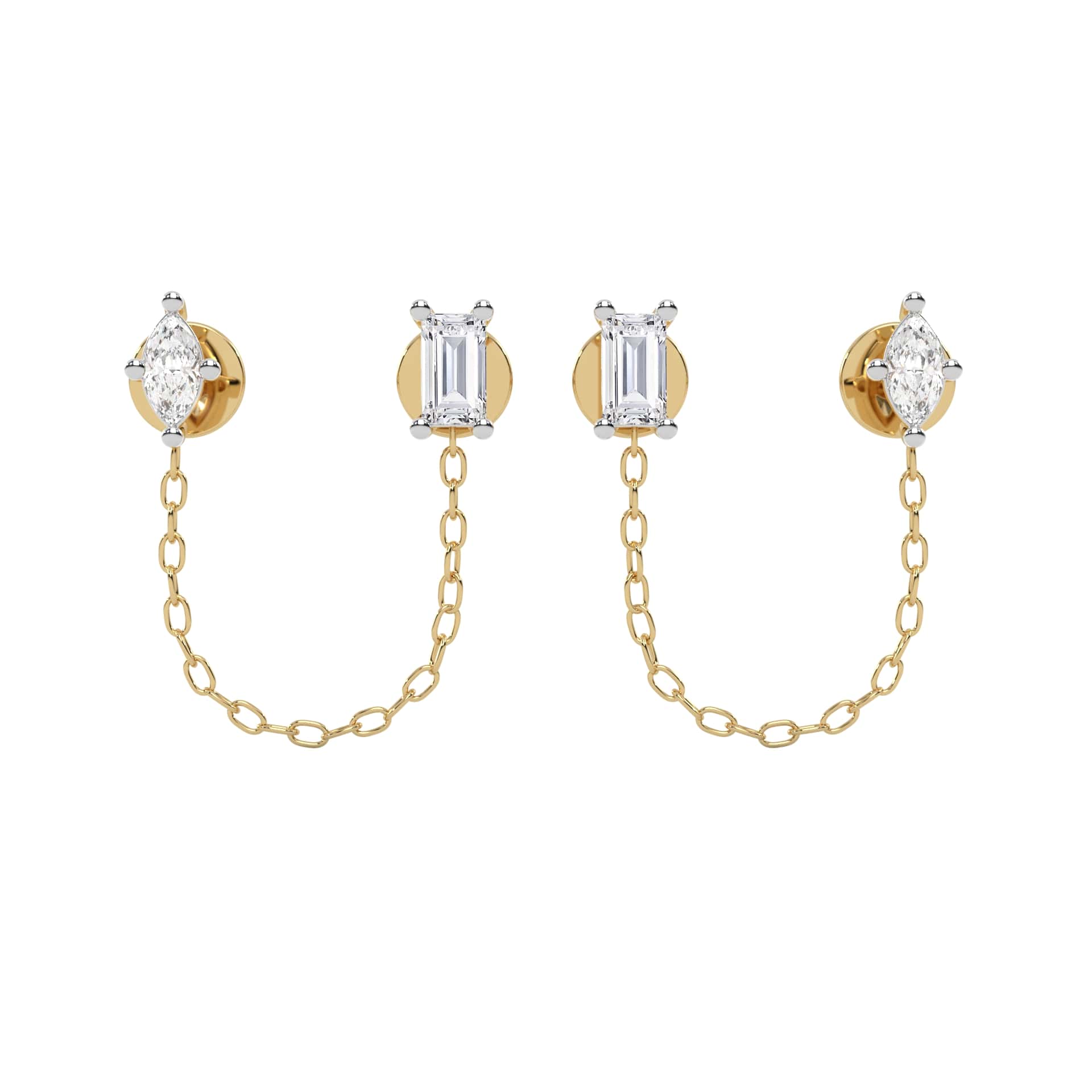1/2 CT. Baguette and Marquise Natural diamond Chain Stud Earrings