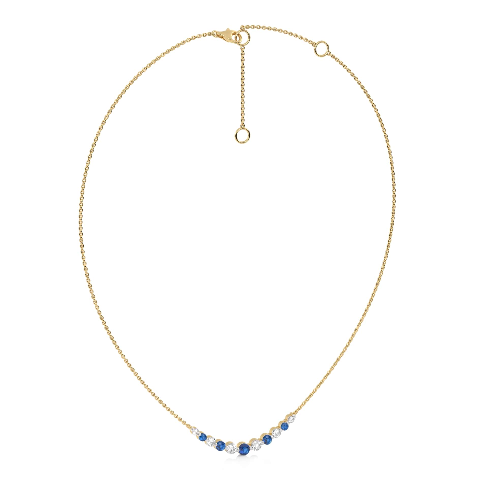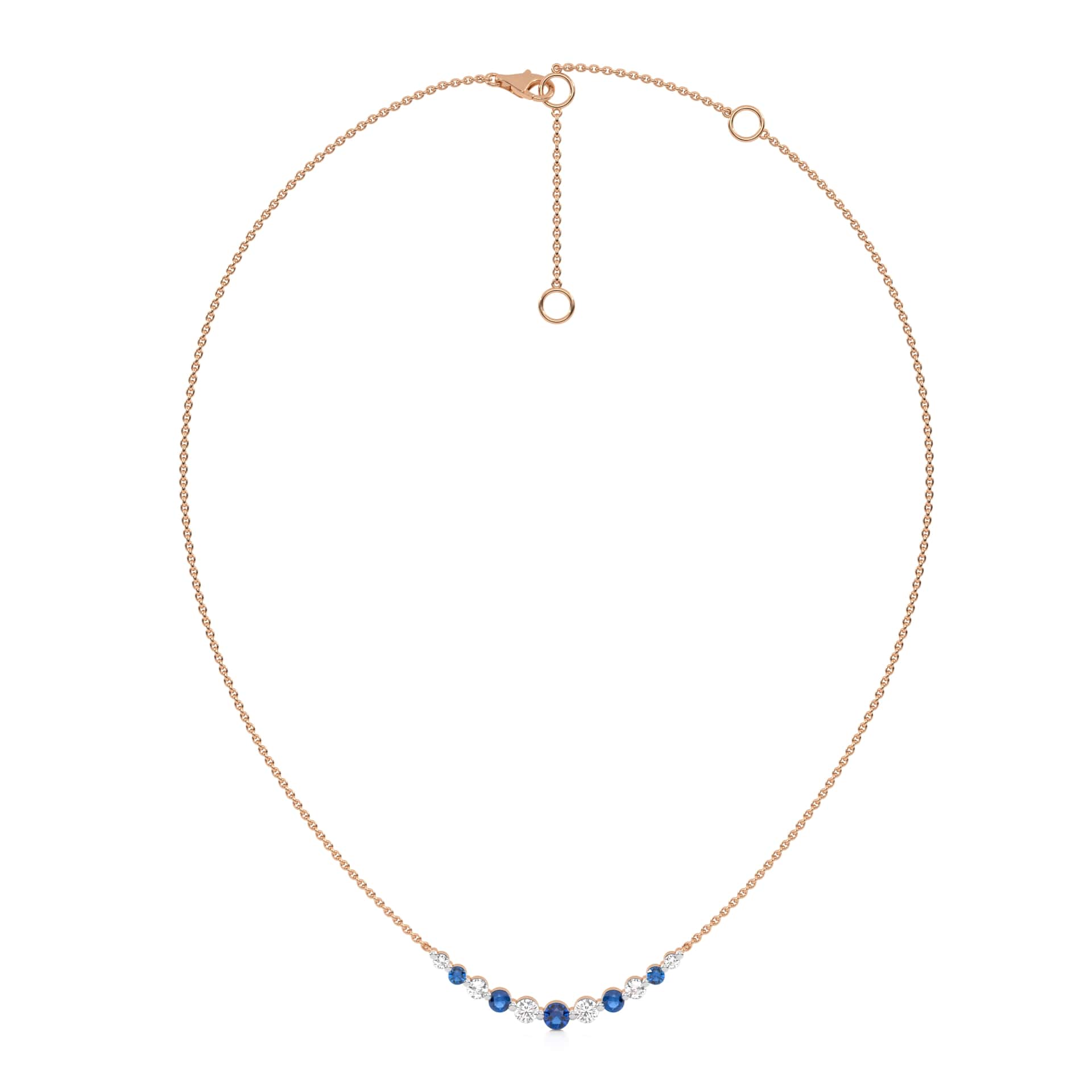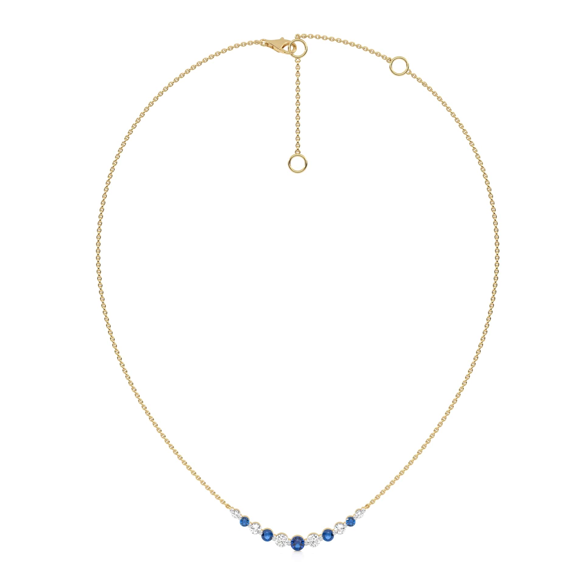 1 CT. Round Natural Diamond and Blue Sapphire Graduated Necklace