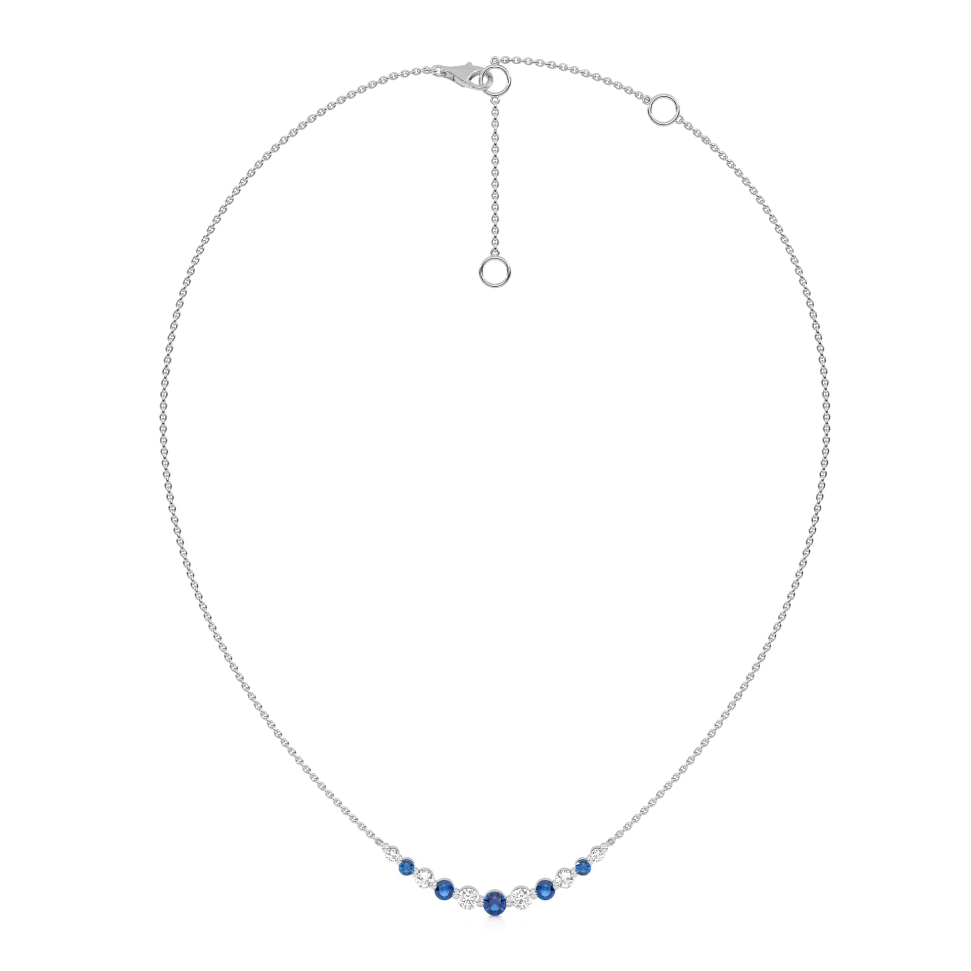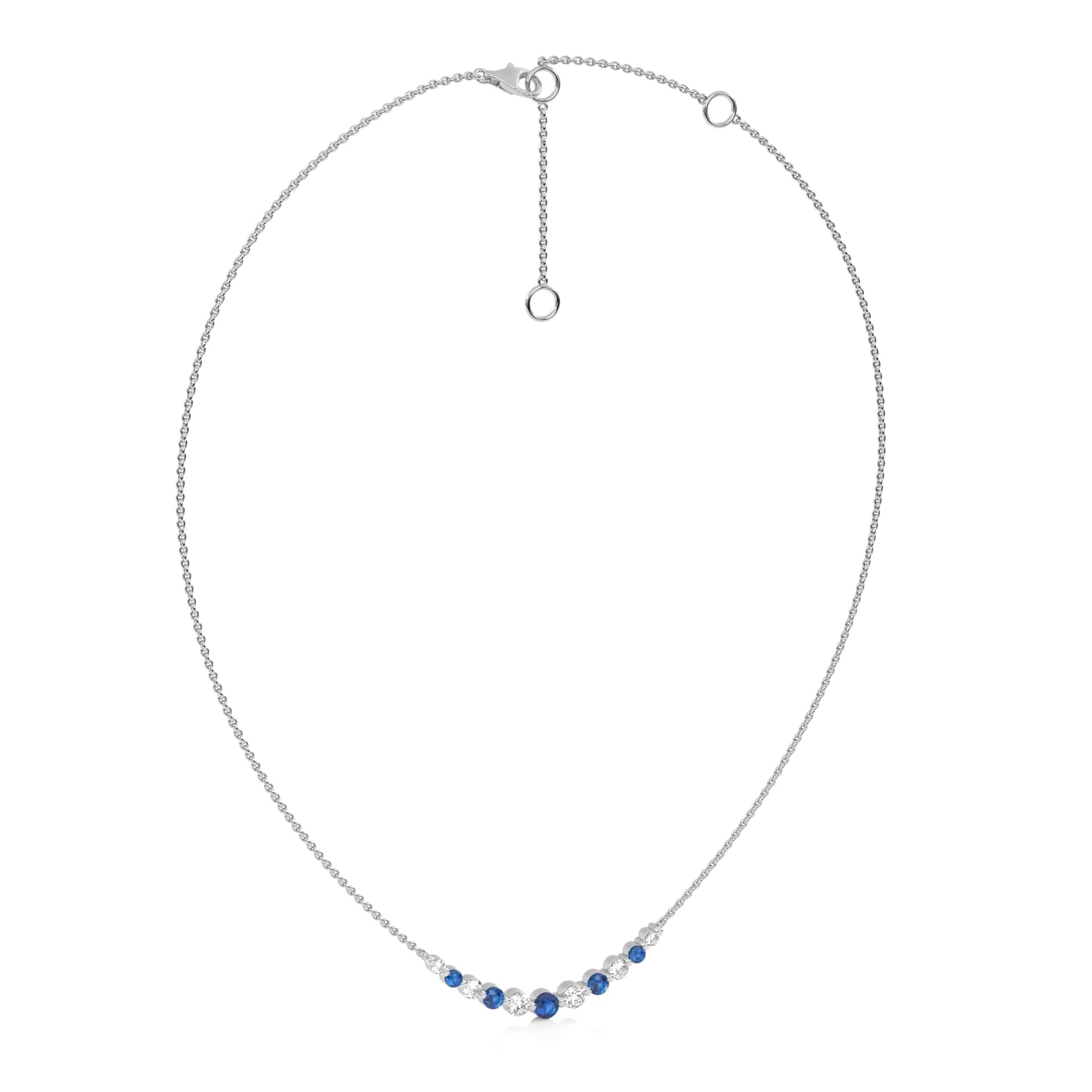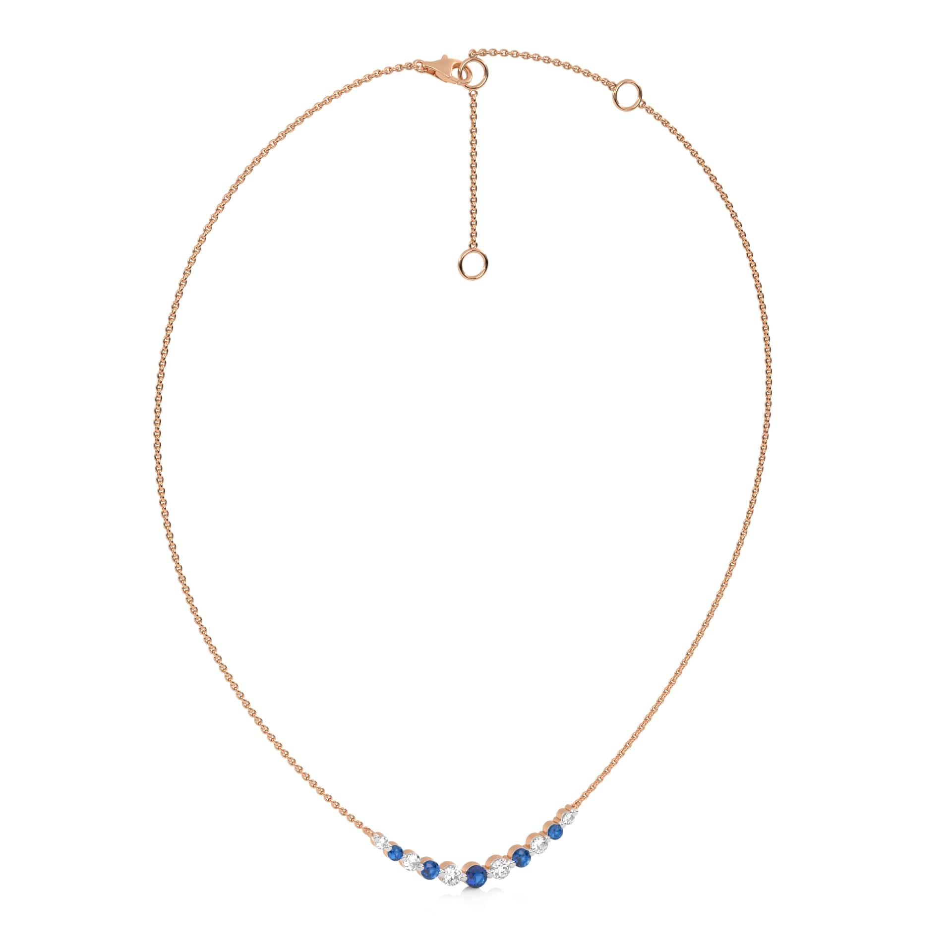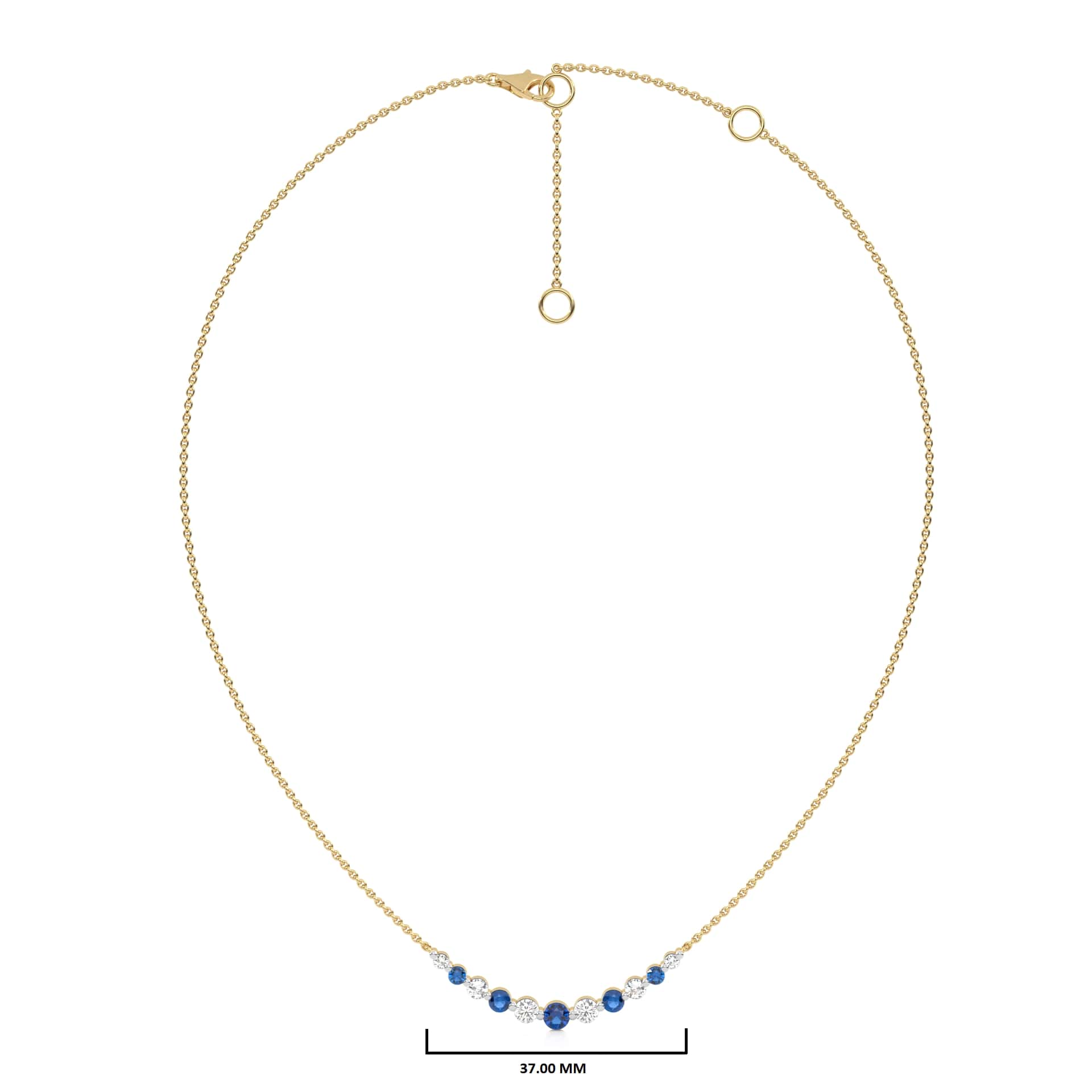 1 CT. Round Natural Diamond and Blue Sapphire Graduated Necklace