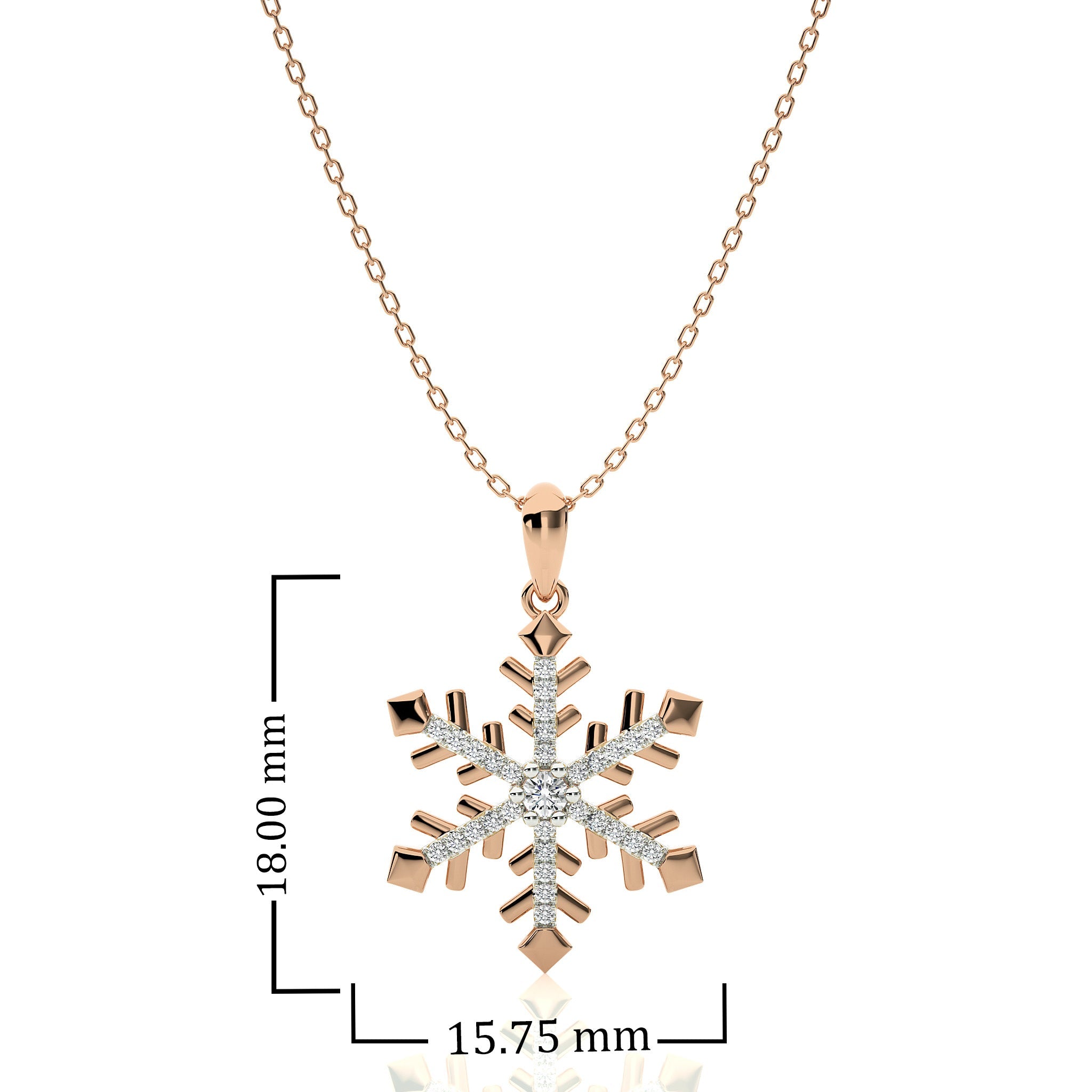 This charming piece features a 1/6 CT lab created diamond with DEF/SI quality, intricately set in a micro split and prong setting. The delicate design mimics the beauty of a snowflake, capturing light and attention with its shimmering brilliance