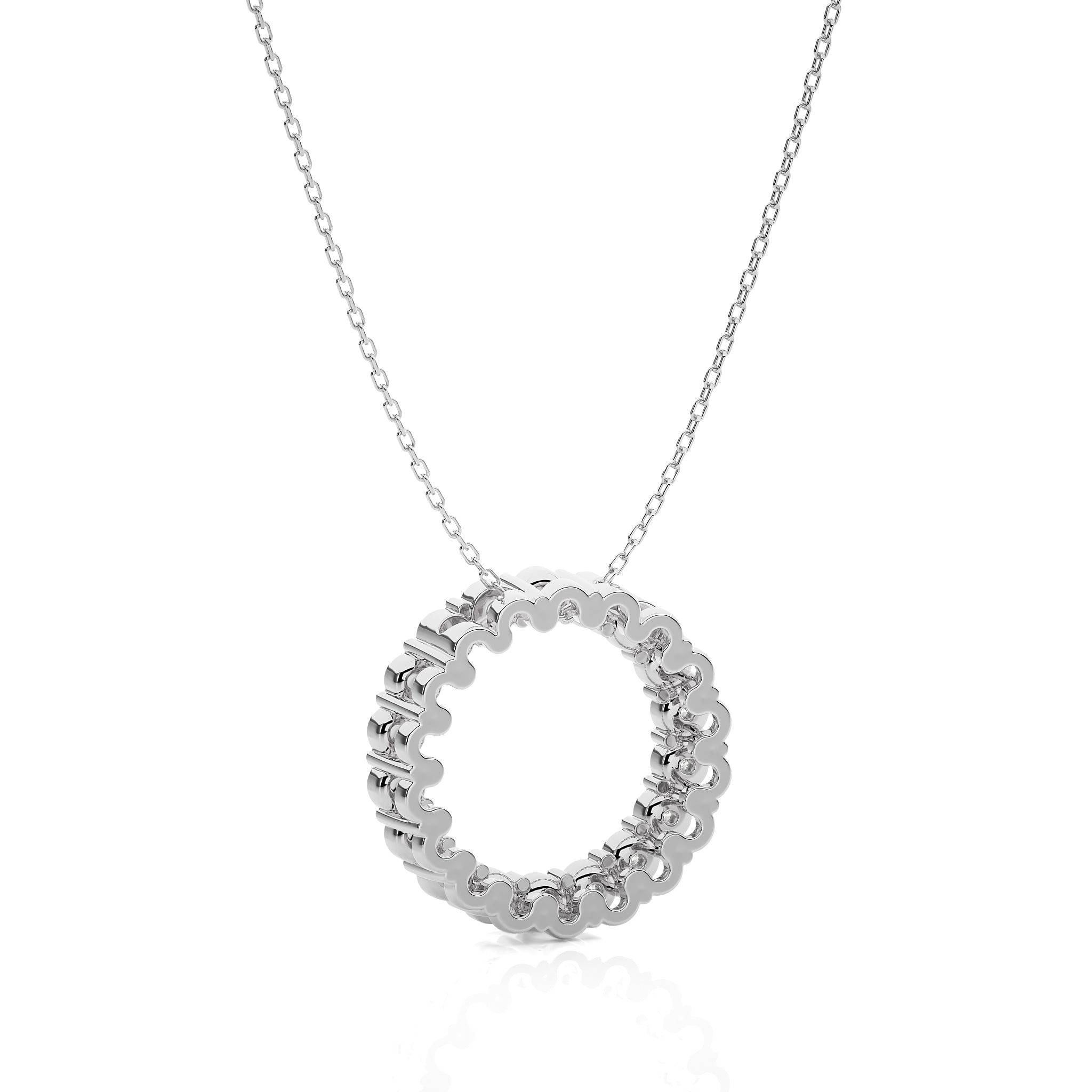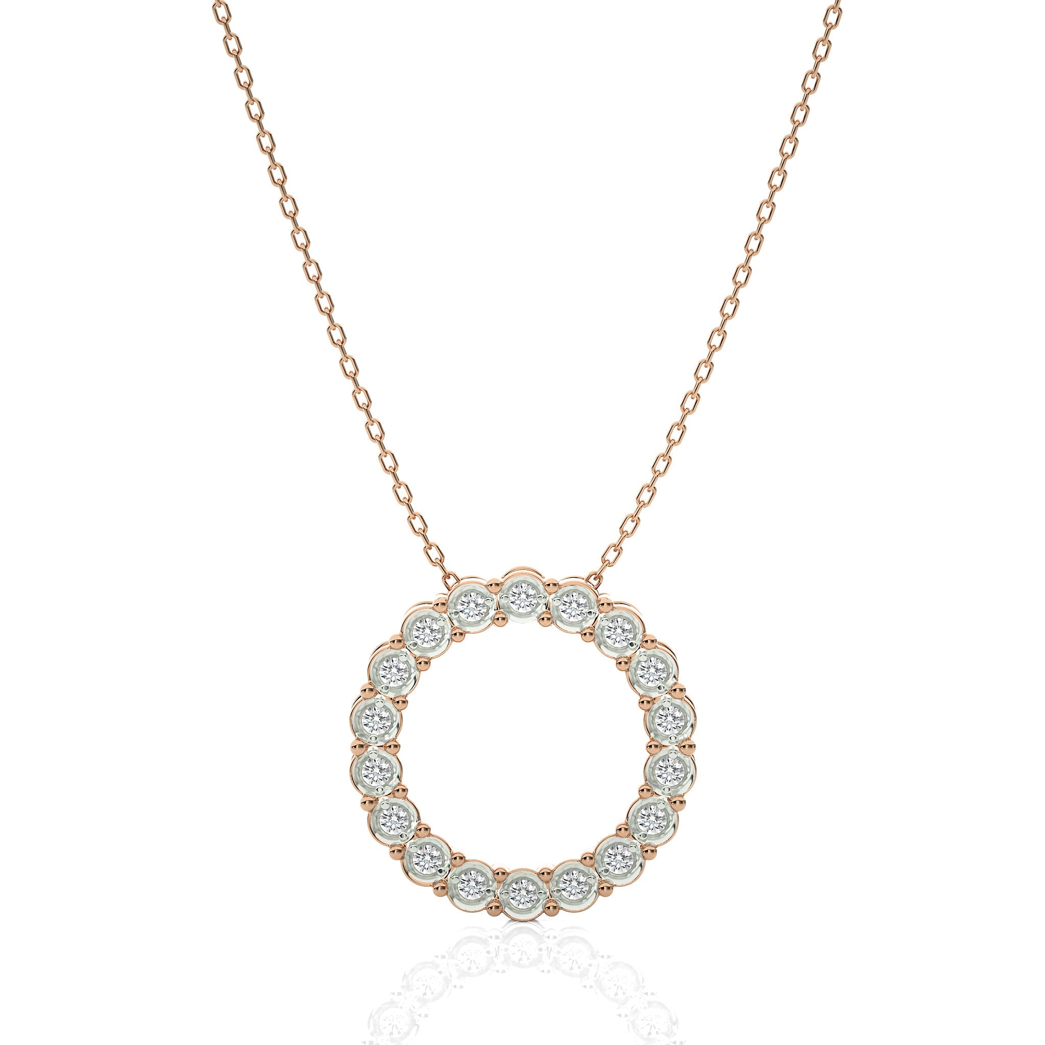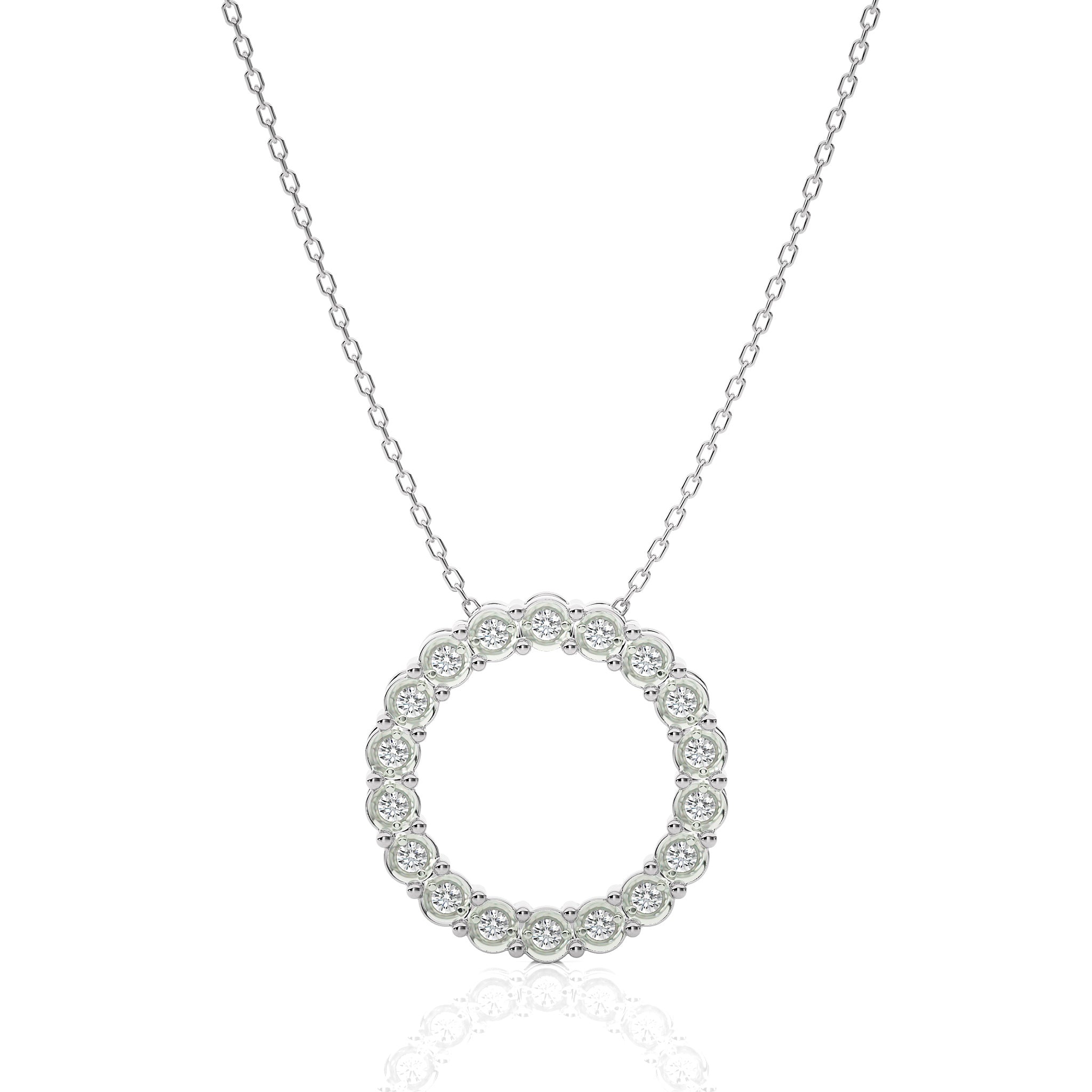 Reveal the elegance of the Classic Open Circle Pendant, featuring a 1/4 CT lab created diamond with DEF/SI quality. This radiant round Diamond is expertly set in a delicate prong setting, creating a timeless piece that captures light and attention with every movement