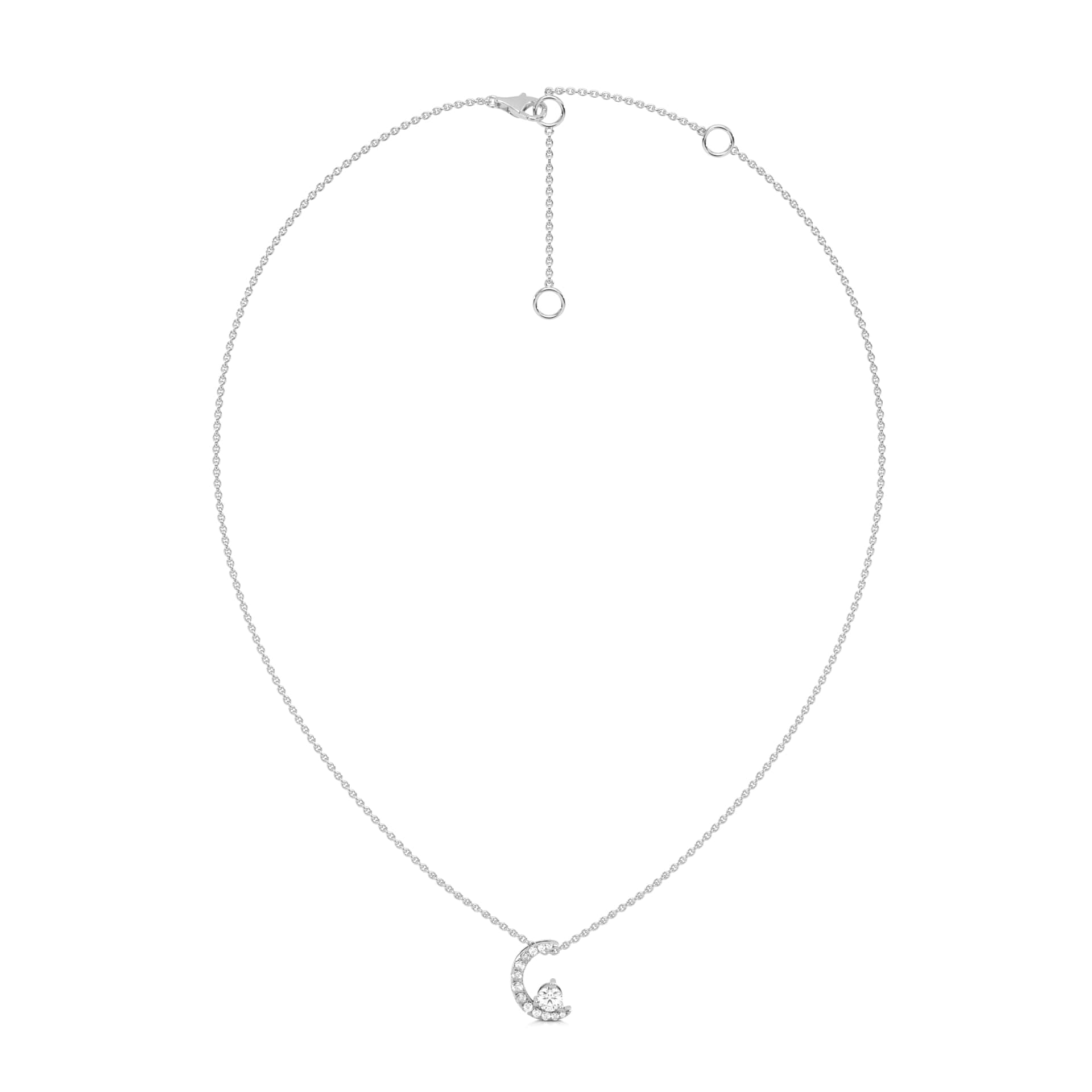 Crafted to captivate, this 3/8 CT. Round Natural Diamond Half Moon Pendant features H-I/I1-I2 quality diamonds in micro split and prong settings. Its sleek half-moon design adds a radiant touch of elegance to any ensemble