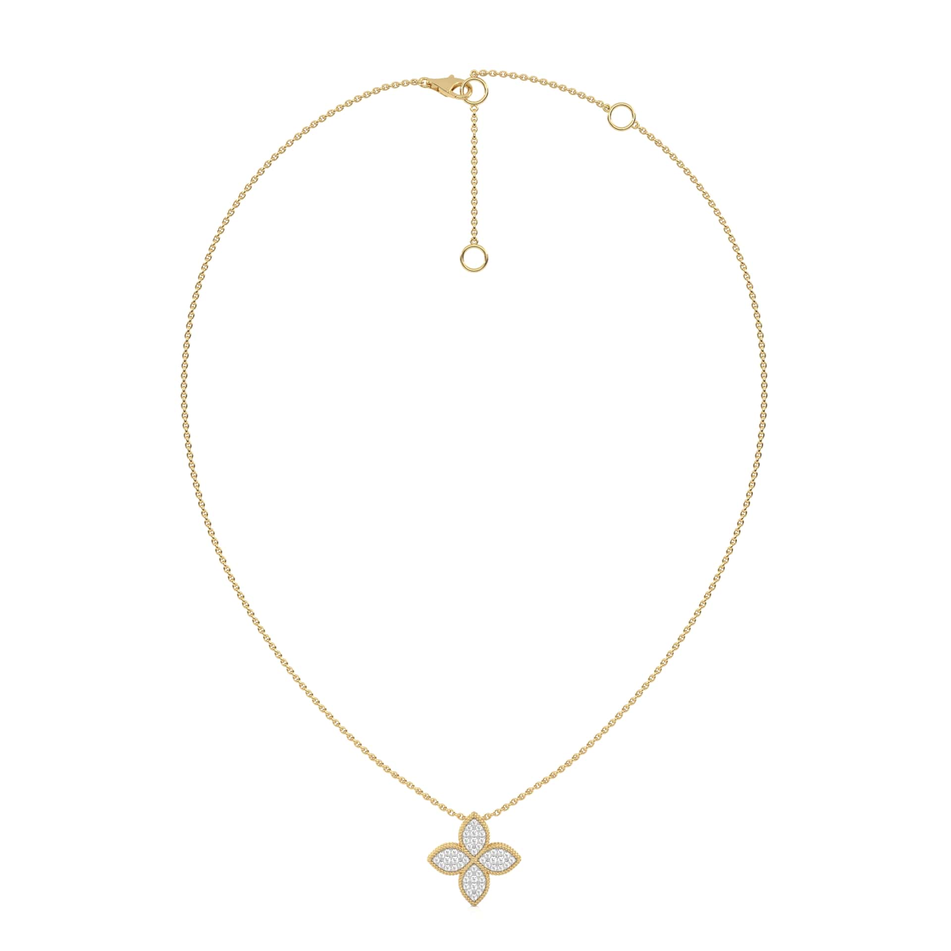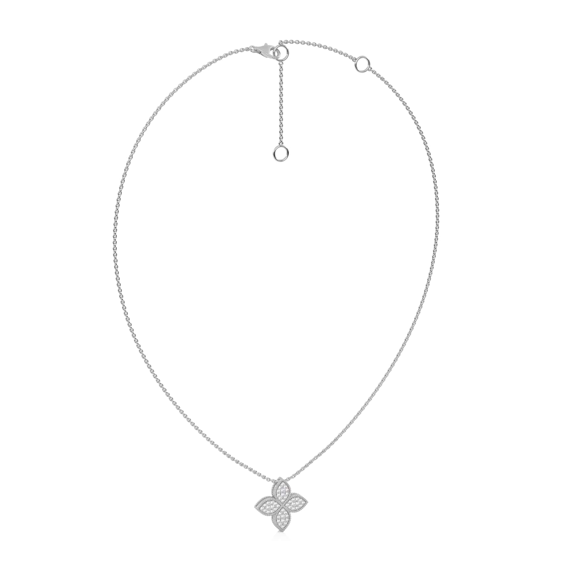 Bloom with charm wearing this 1/4 CT. Round Natural Diamond Four Leaf Pendant Necklace. Featuring H-I/I1-I2 quality diamonds in a pave setting, it exudes a delicate sparkle inspired by nature's grace