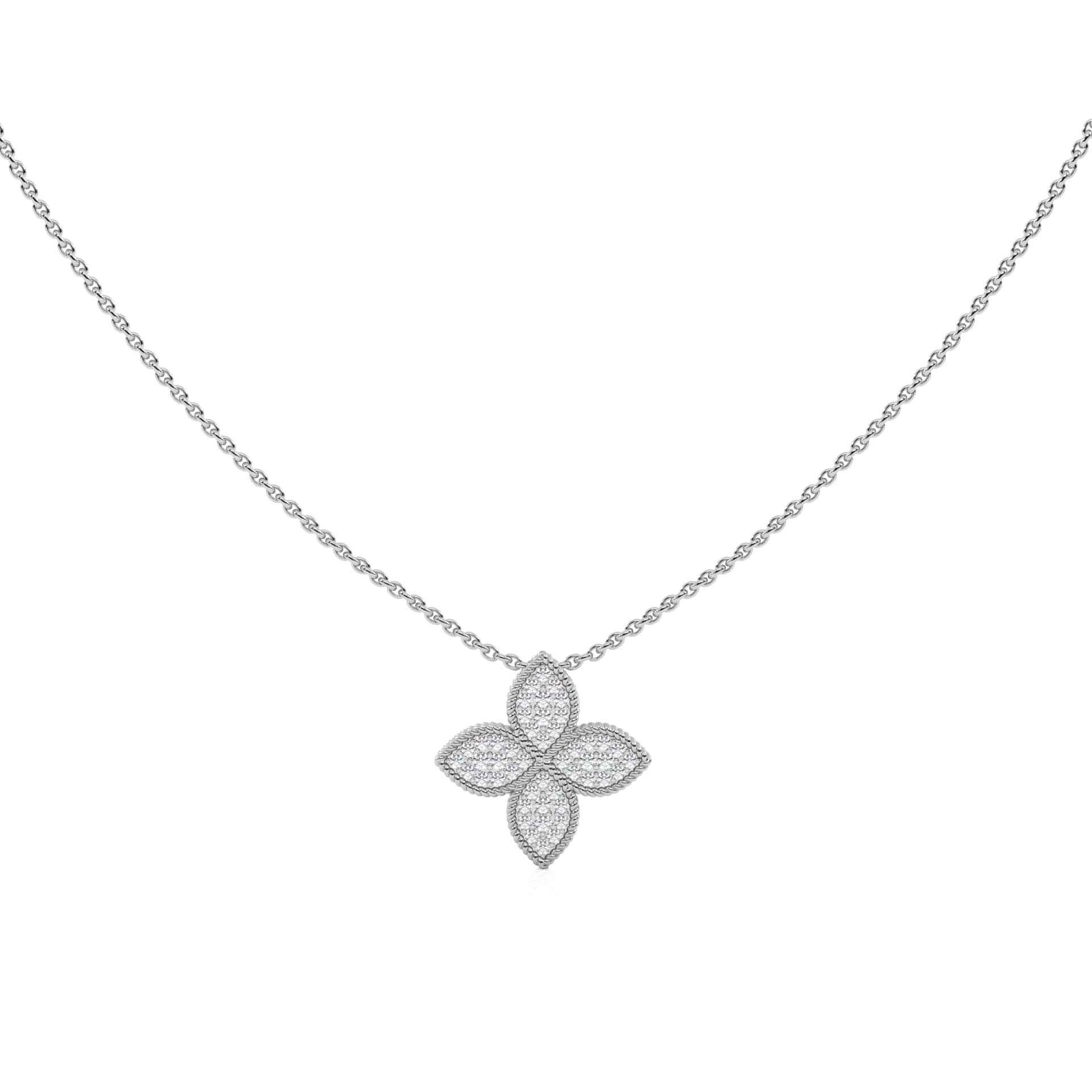 1/4 CT. Round Natural Diamond Four Leaf Pendant Necklace