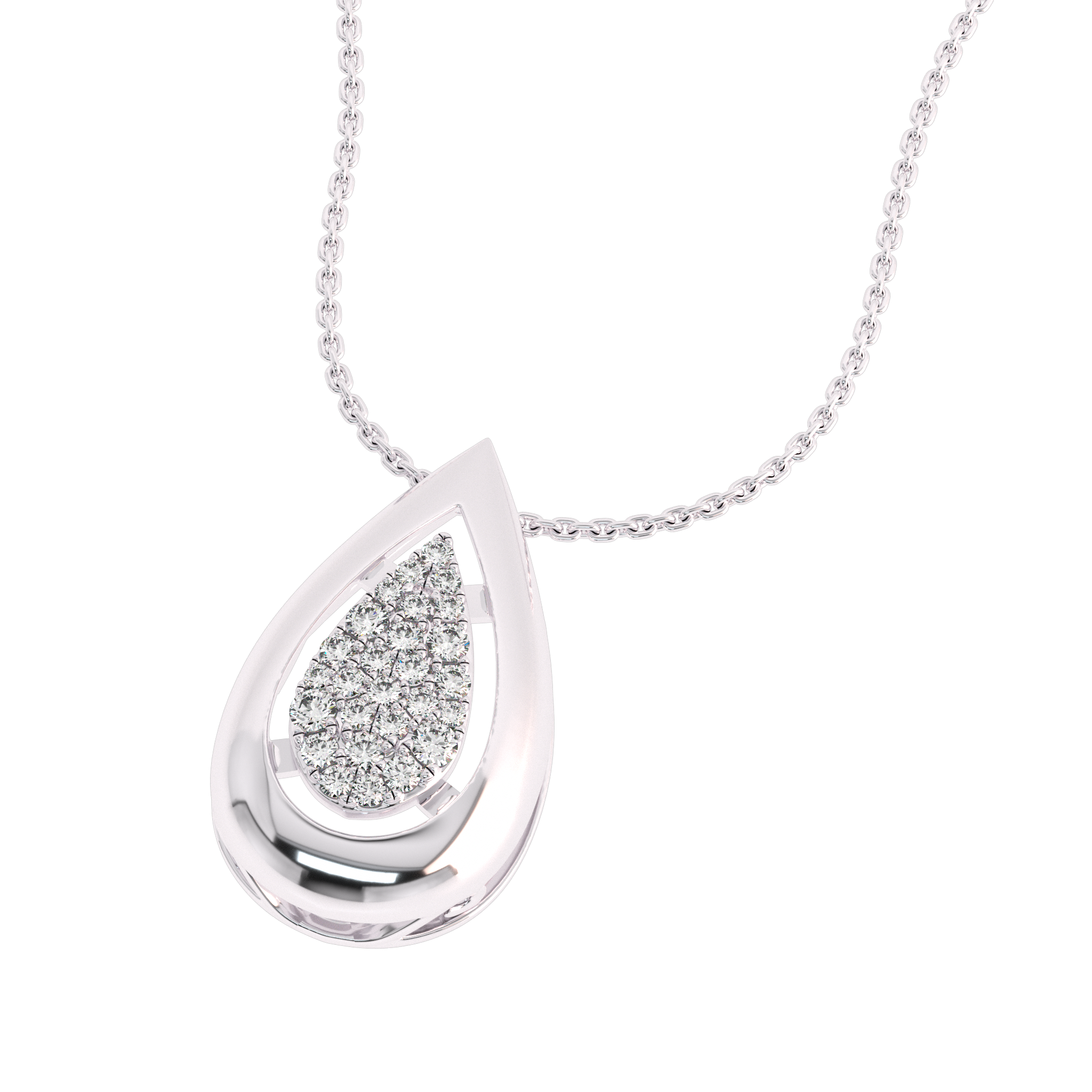 Elevate your elegance with our 3/4 Ct. Lab Created Round Diamond Studded Designer Cluster Teardrop Pendant. This exquisite pendant, meticulously crafted in a micro split setting, showcases a collection of Lab Created diamonds with DEF color and SI quality. Its unique teardrop design exudes timeless charm and sophistication, making it a captivating accessory for any occasion