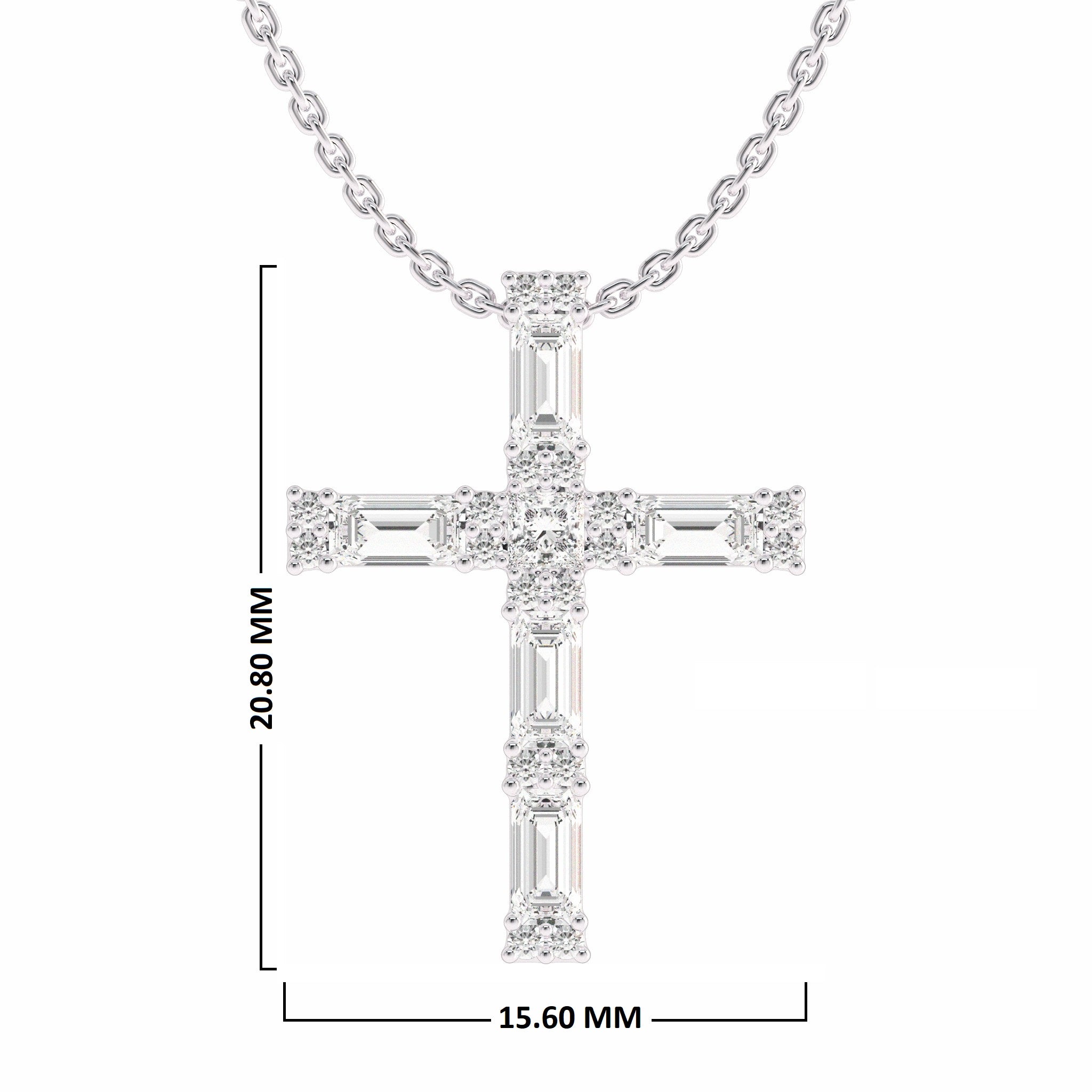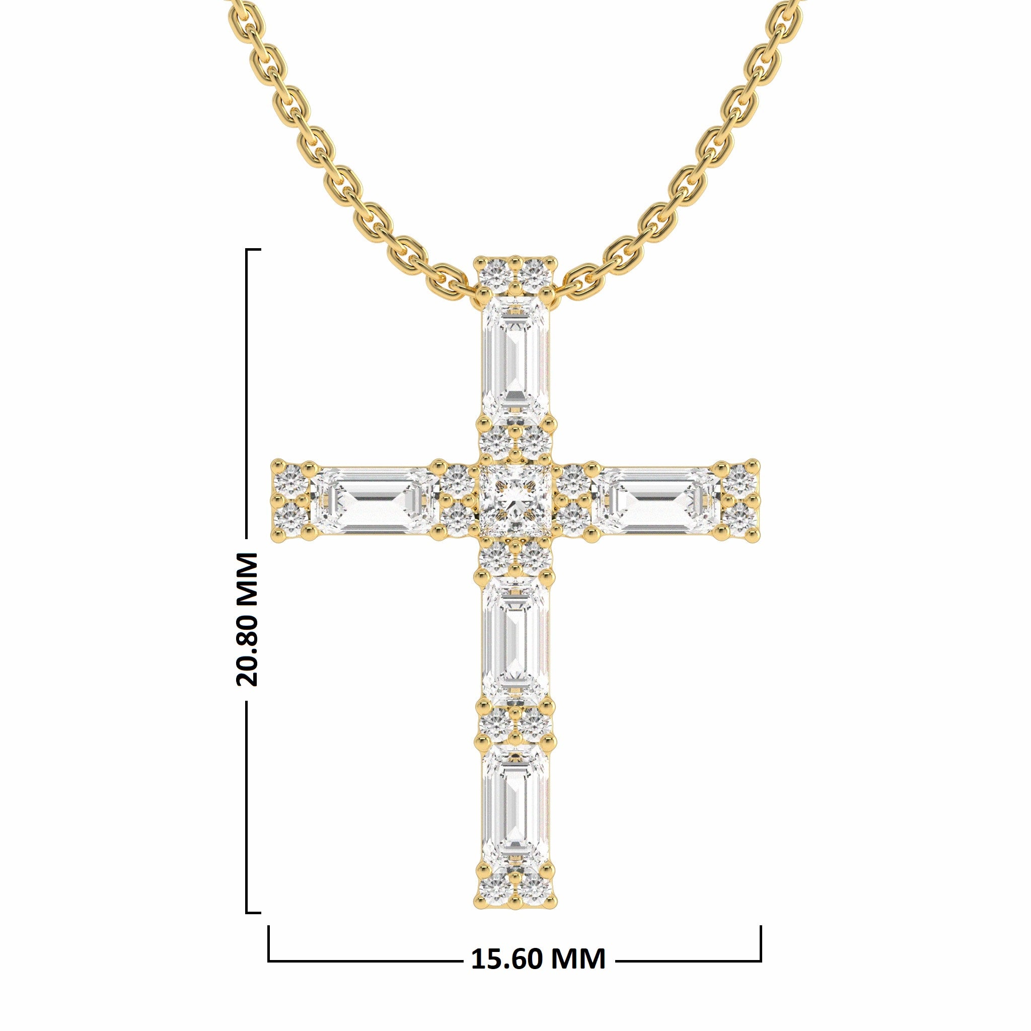 Elevate your style with the timeless allure of our 3/4 CT. Lab Created Round, Princess, and Criss Cut Diamond Studded Cross Pendant. Crafted with precision and adorned with DEF color and SI clarity diamonds, this pendant radiates brilliance and faith. Each stone securely nestled in a prong setting, this classic cross pendant is a symbol of enduring elegance and devotion