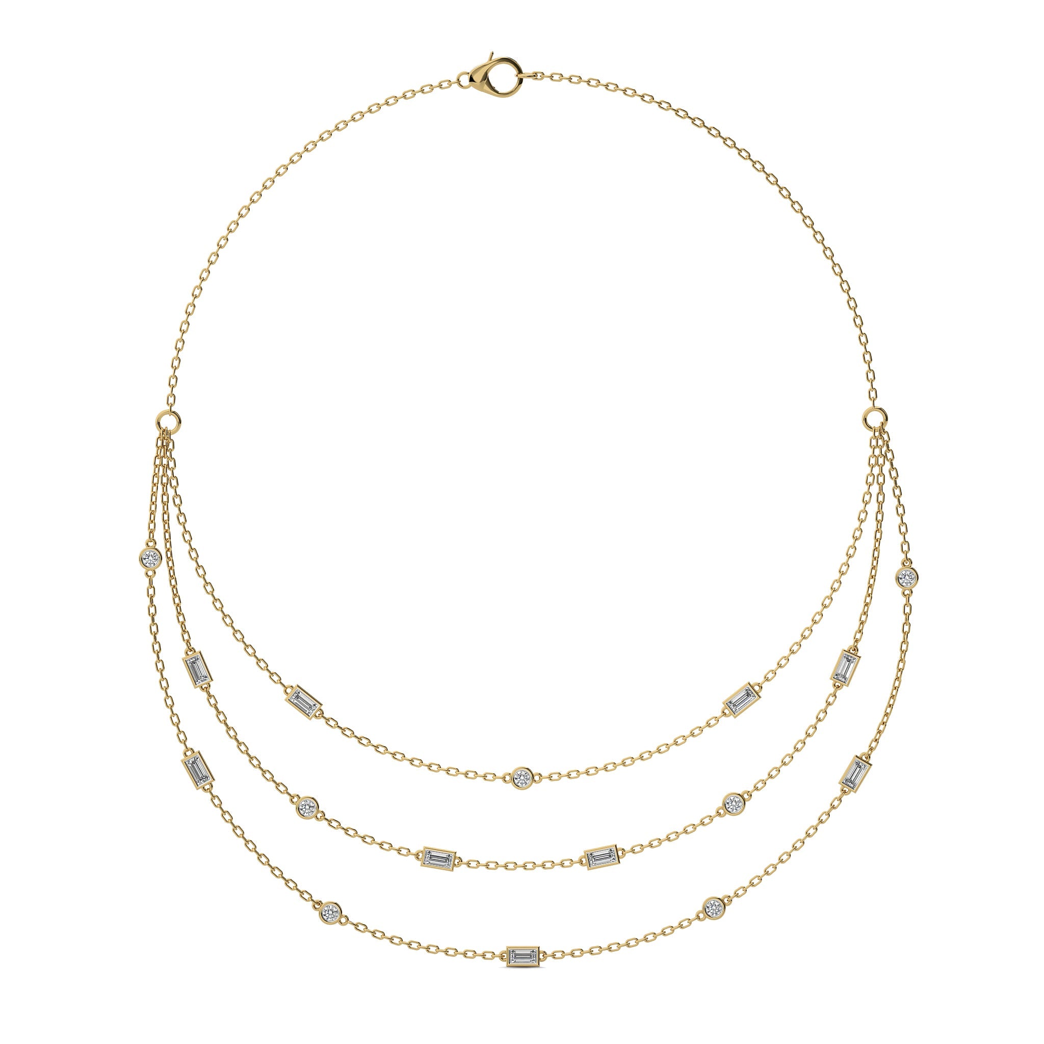 Elevate your jewelry collection with this 2 CT. Three Layered Baguette and Round Lab Created Diamond Necklace, showcasing DEF/SI quality diamonds. Bezel set for a sleek, contemporary look, this necklace adds stunning dimension to any ensemble. An exquisite choice for making a bold statement