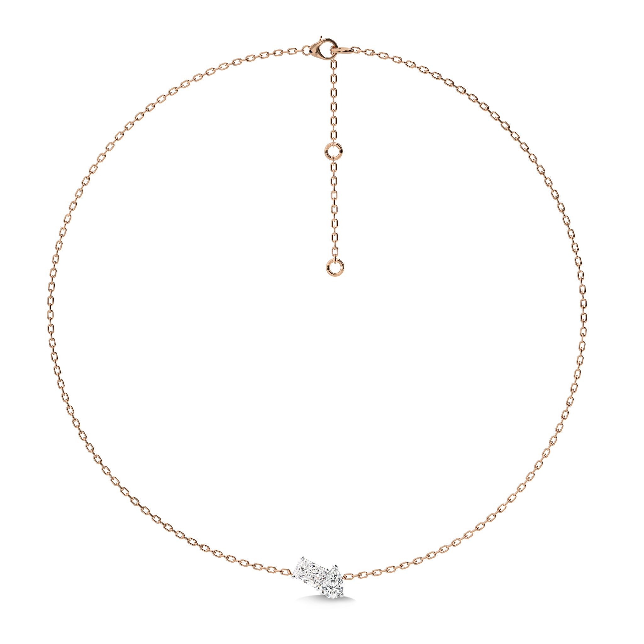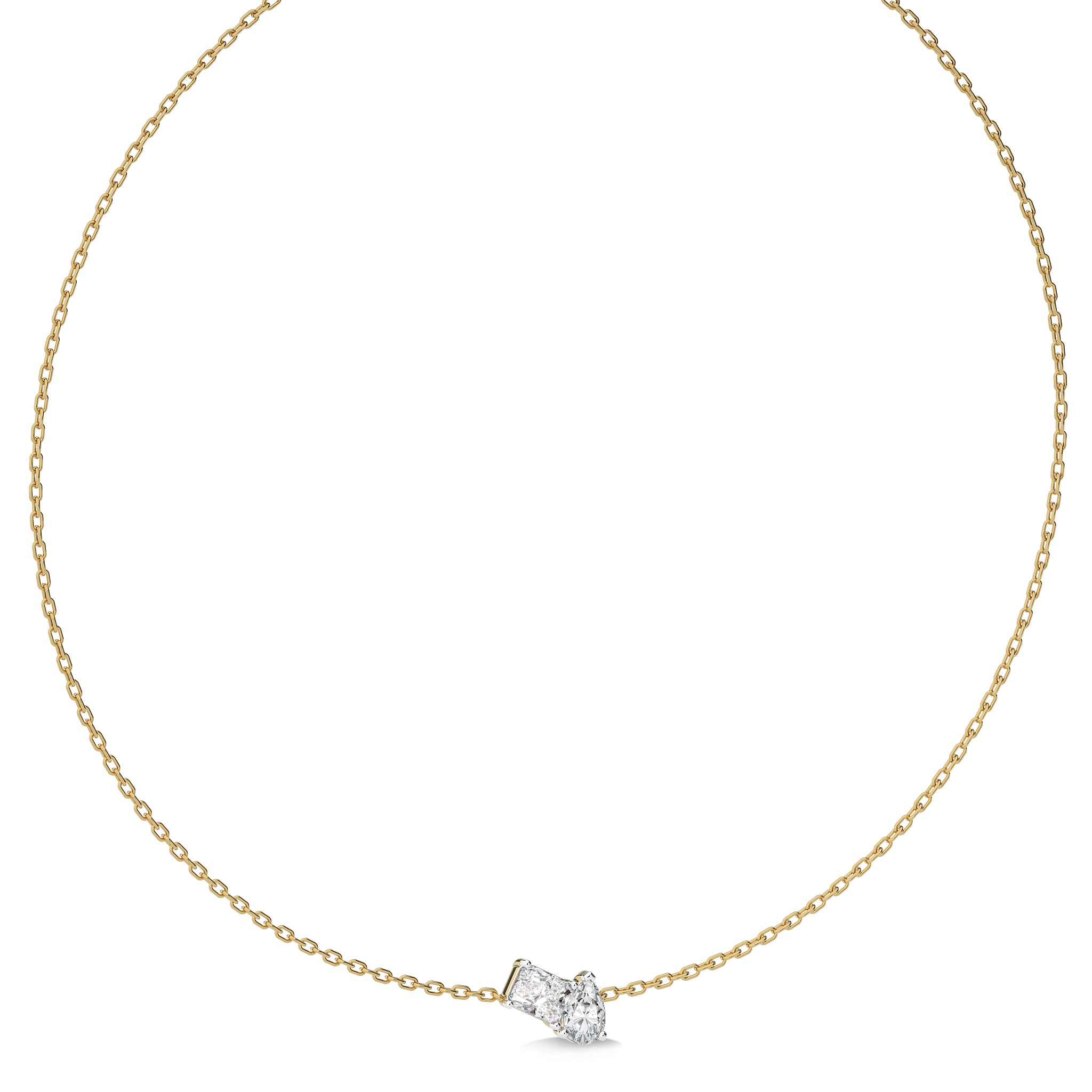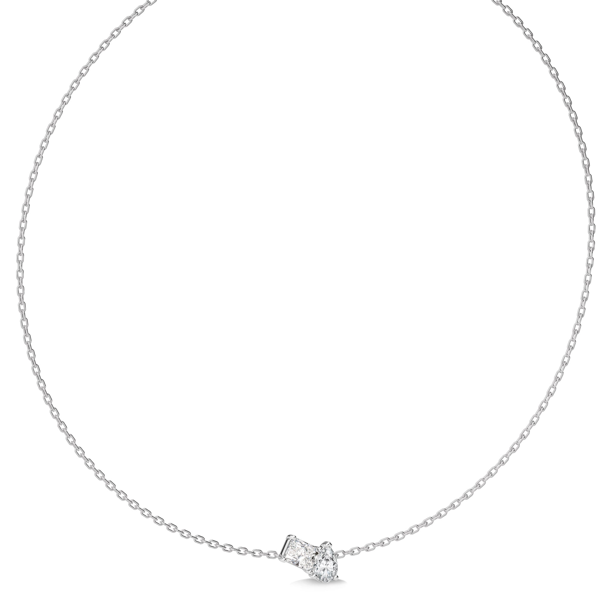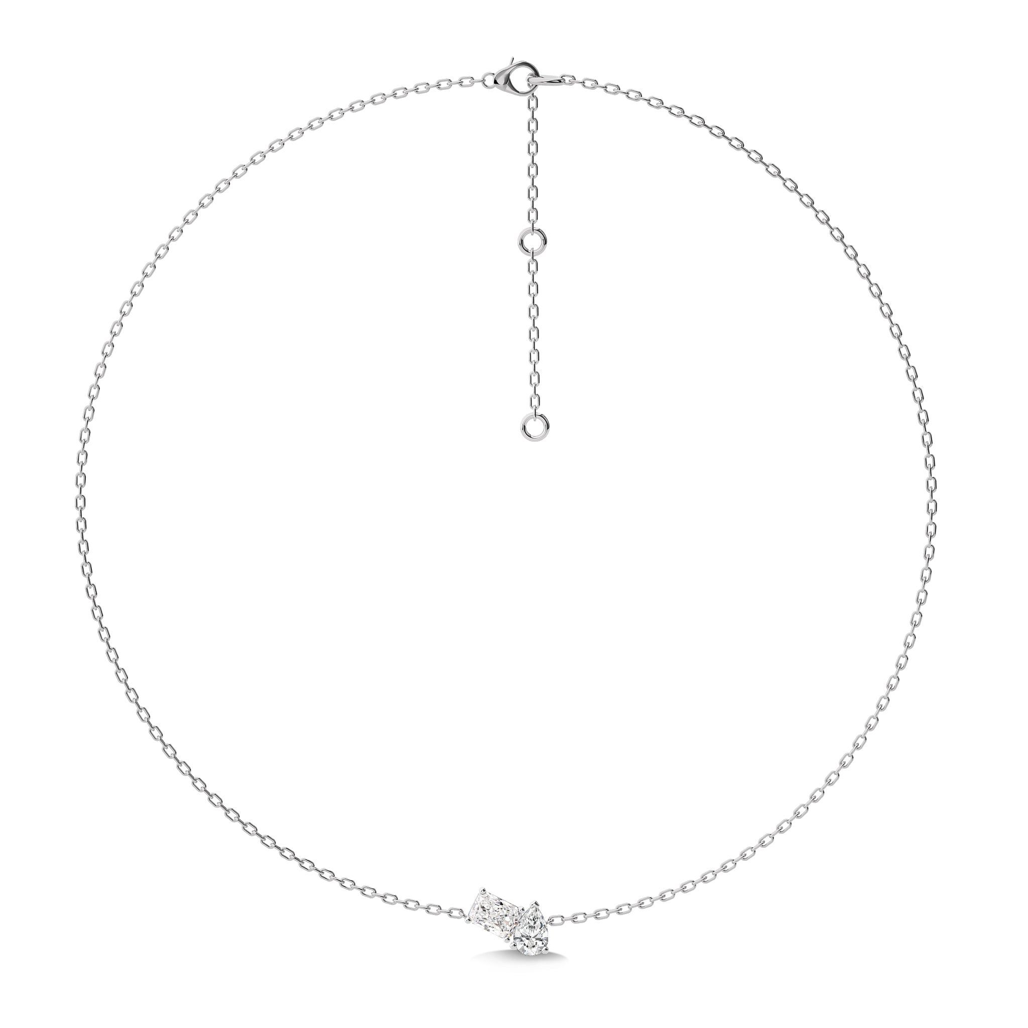 Capture the essence of whimsy with our Whimsical Emerald and Pear Dual Natural Diamond Toi et Moi Necklace, featuring 2 carats of H-I/I1-I2 quality diamonds in a prong setting , perfect for adding a touch of charm to any outfit
