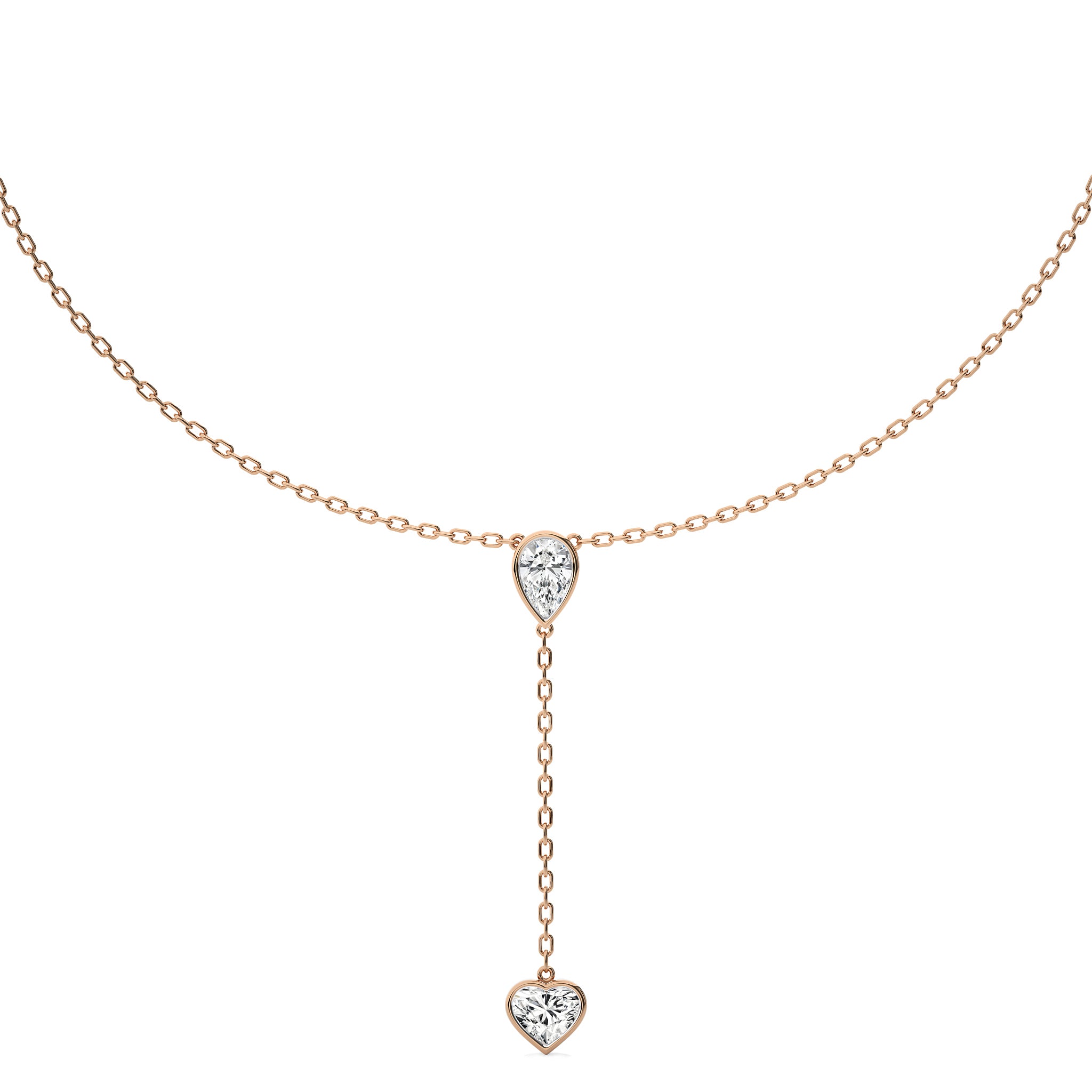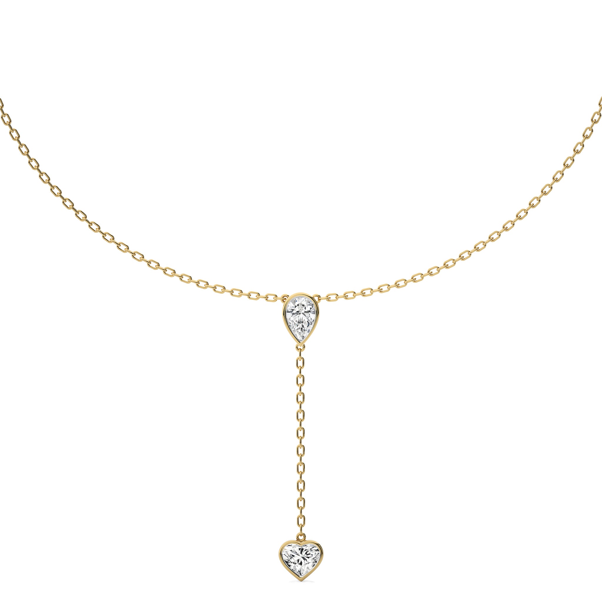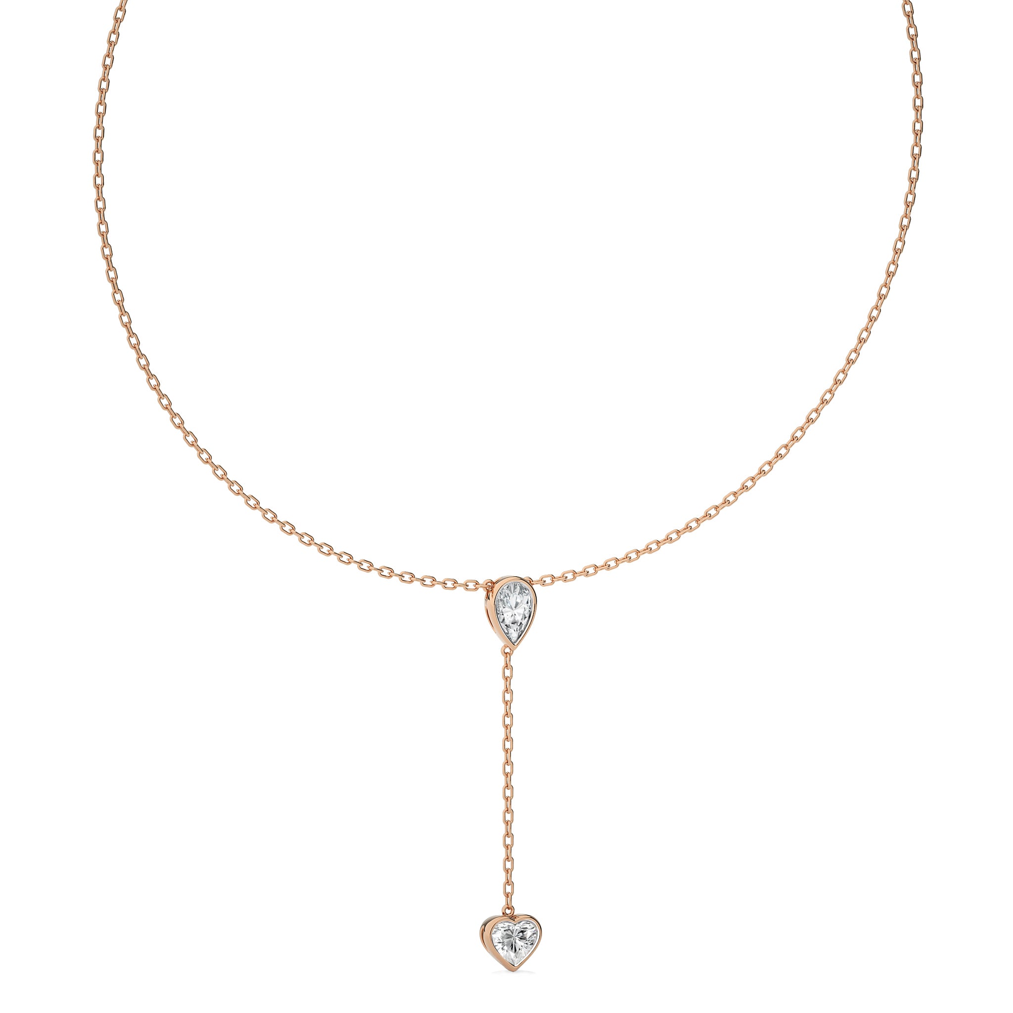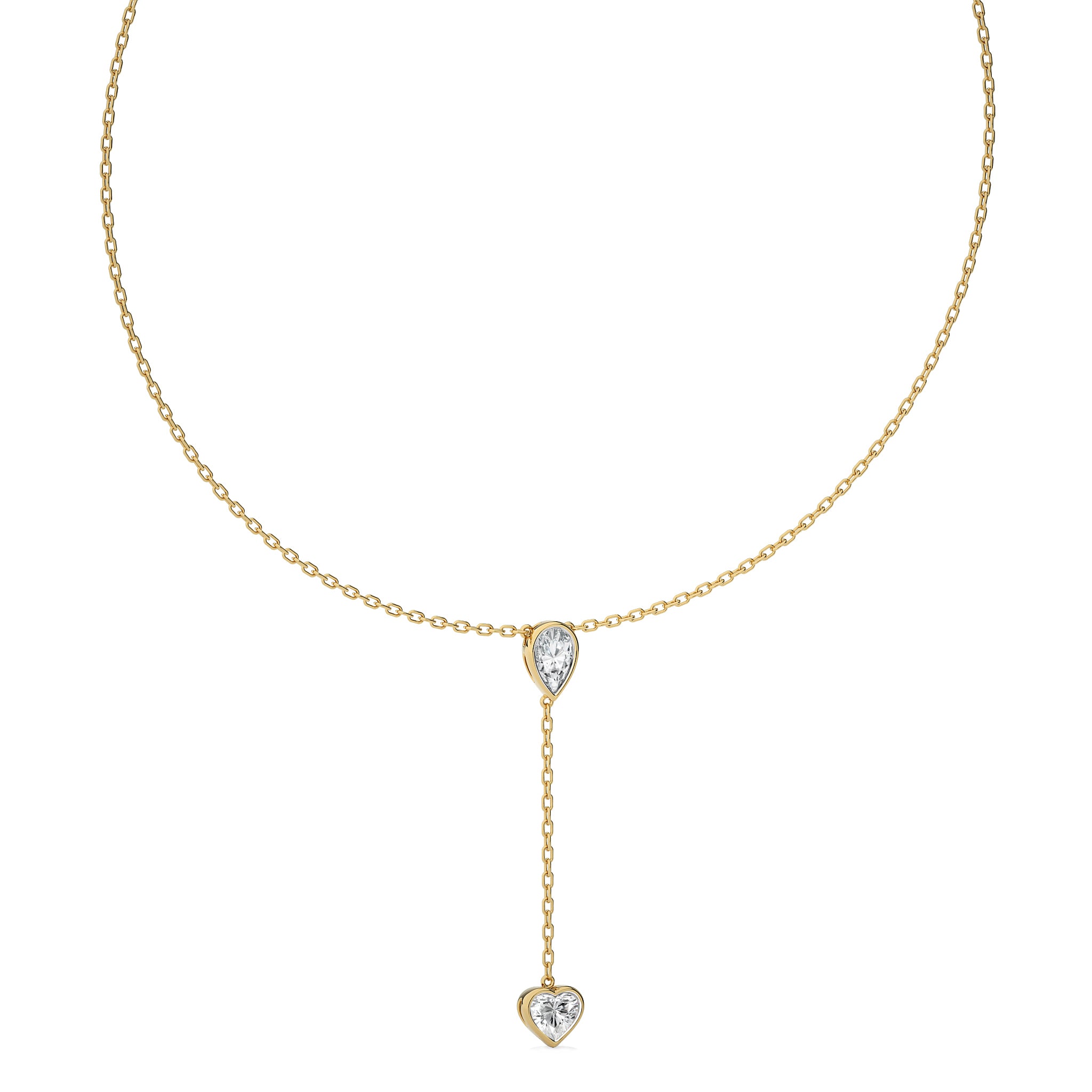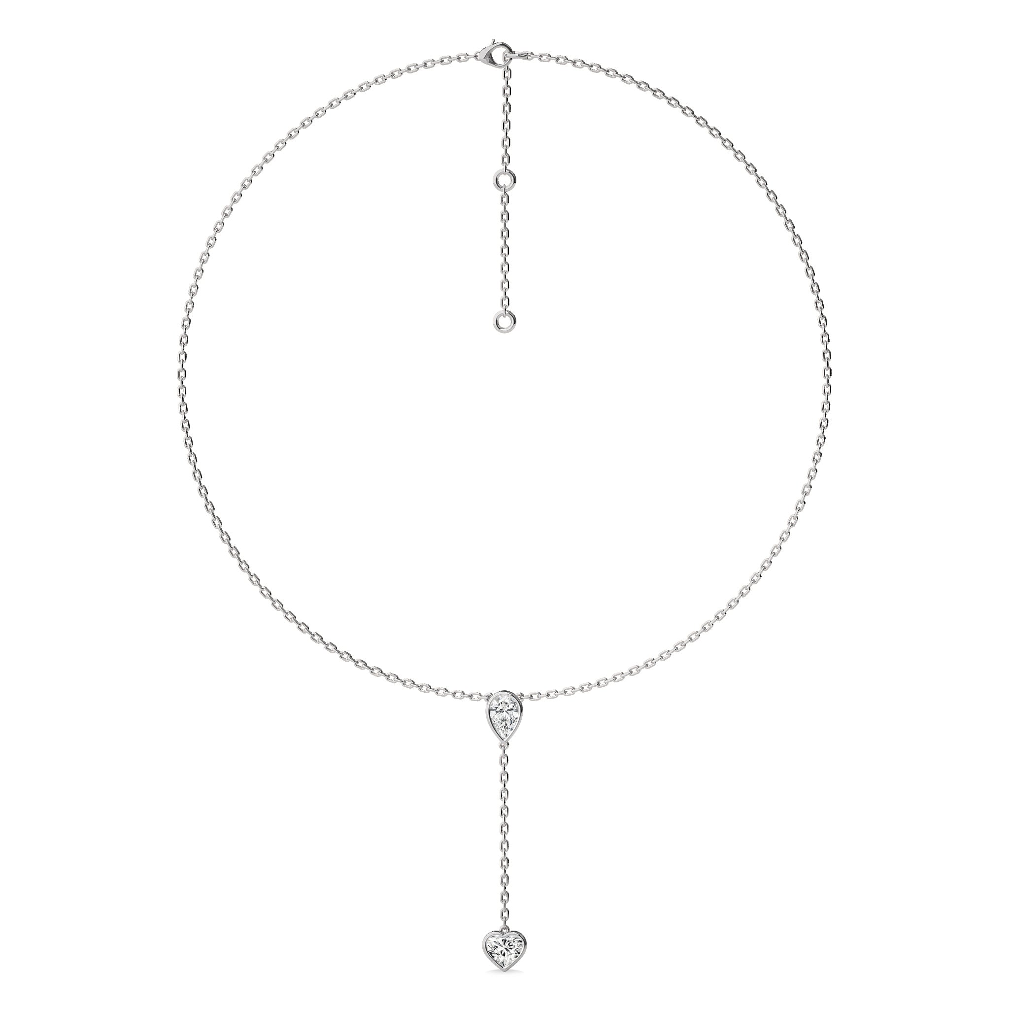 Engross Yourself with our Lab Created Diamond Lariat Necklace Featuring 2 carats of DEF/SI quality diamonds bezel set for a sleek look,the twin pear and heart stones adding a touch of glamour to any outfit
