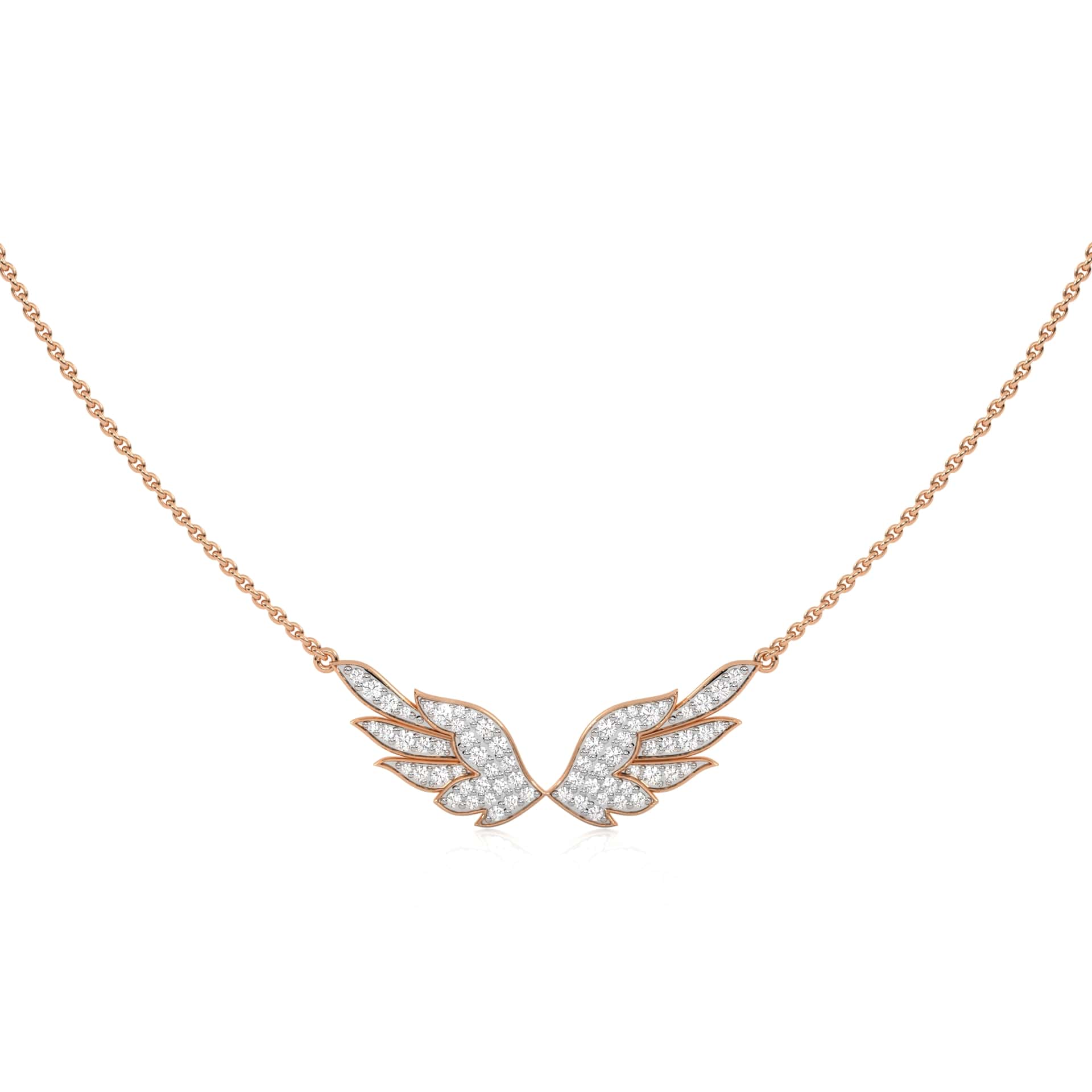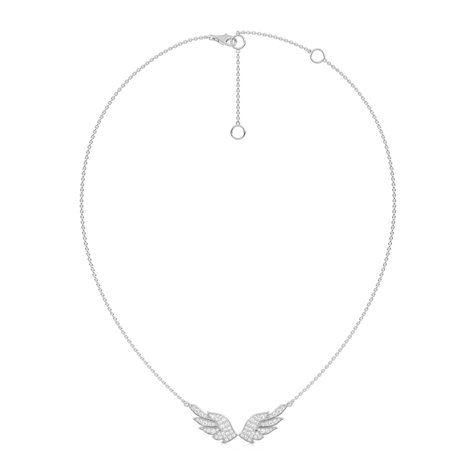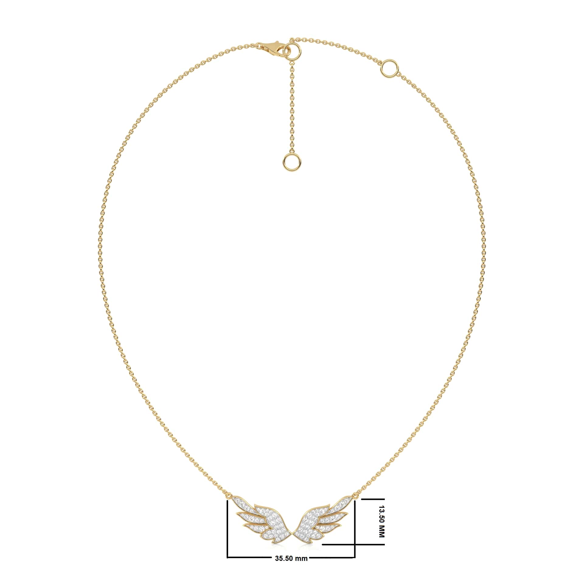 This 5/8 CT. Round Lab Created Diamond Angel Wings Pendant Necklace features round Lab Created diamonds totaling 5/8 carats, set in a pave design. The graceful angel wings, crafted with DEF/SI quality diamonds, radiate a gentle brilliance, making it a perfect symbol of protection and elegance