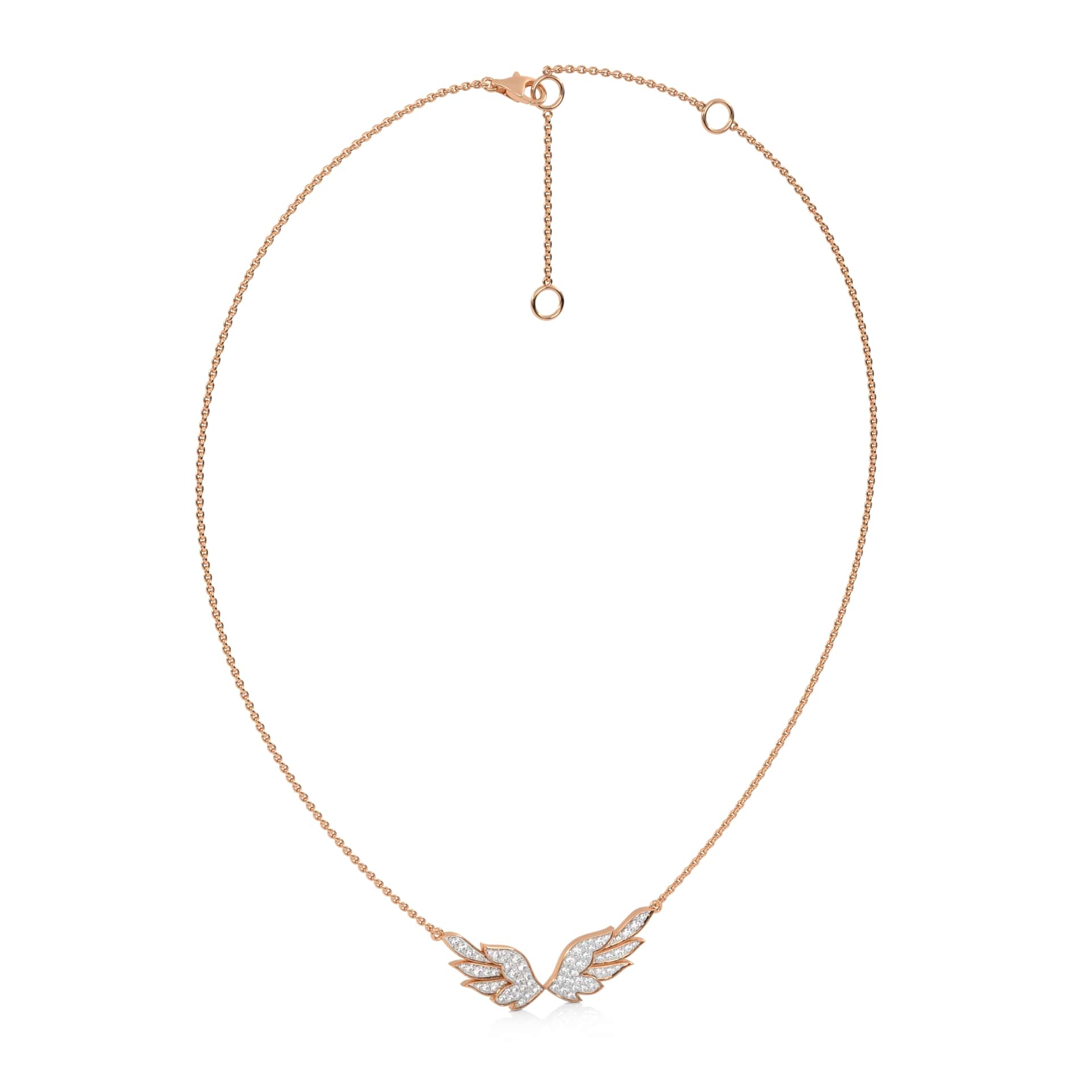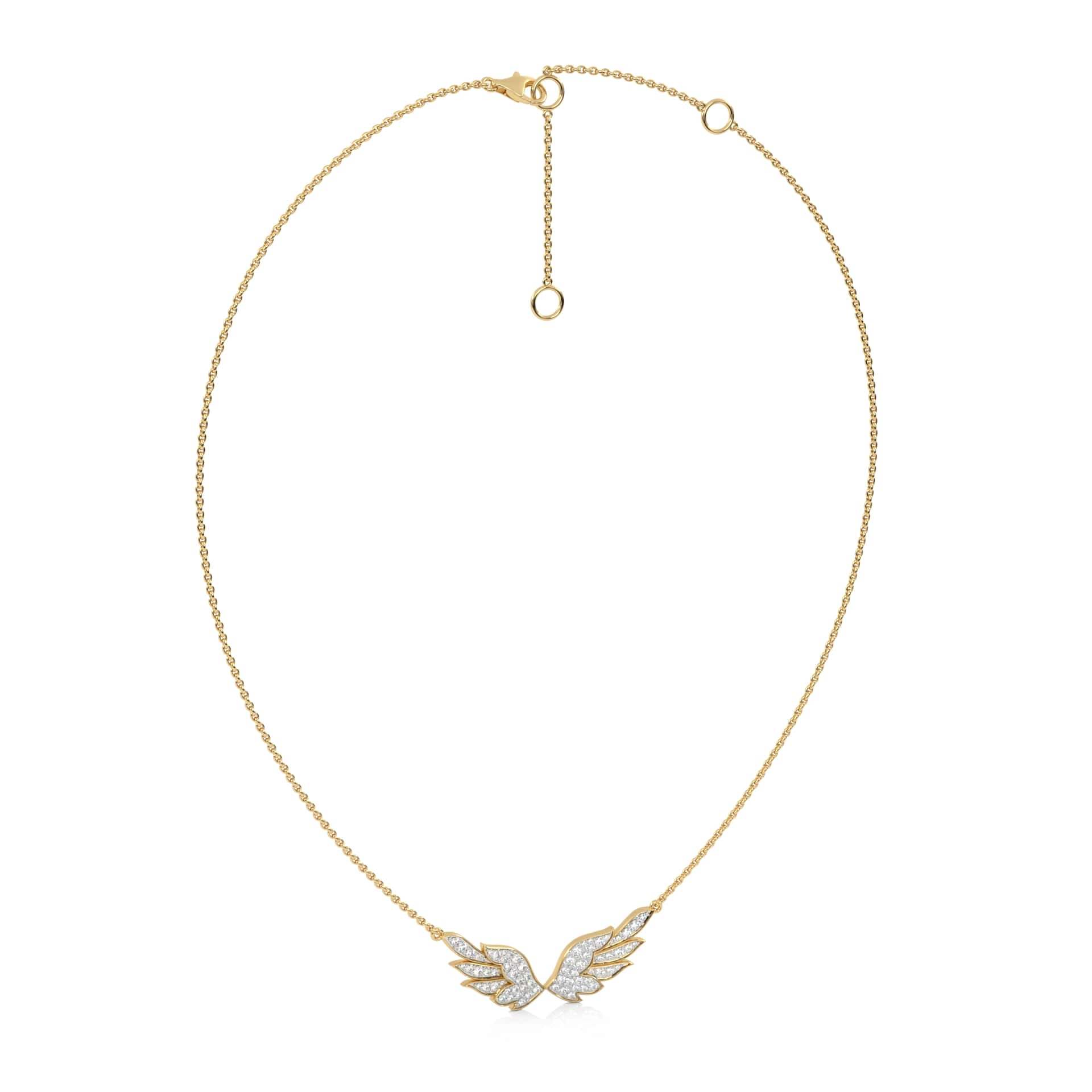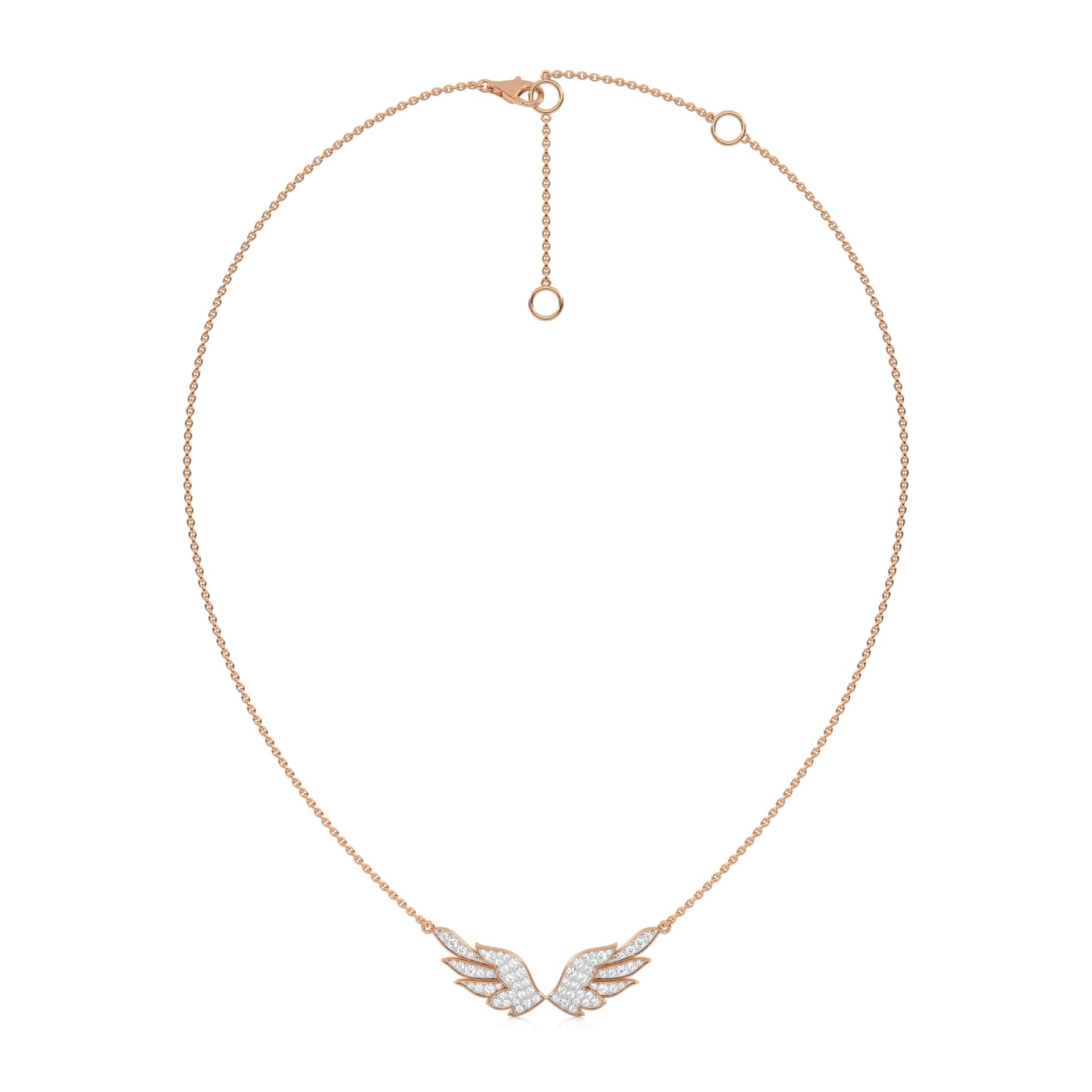 This 5/8 CT. Round Lab Created Diamond Angel Wings Pendant Necklace features round Lab Created diamonds totaling 5/8 carats, set in a pave design. The graceful angel wings, crafted with DEF/SI quality diamonds, radiate a gentle brilliance, making it a perfect symbol of protection and elegance