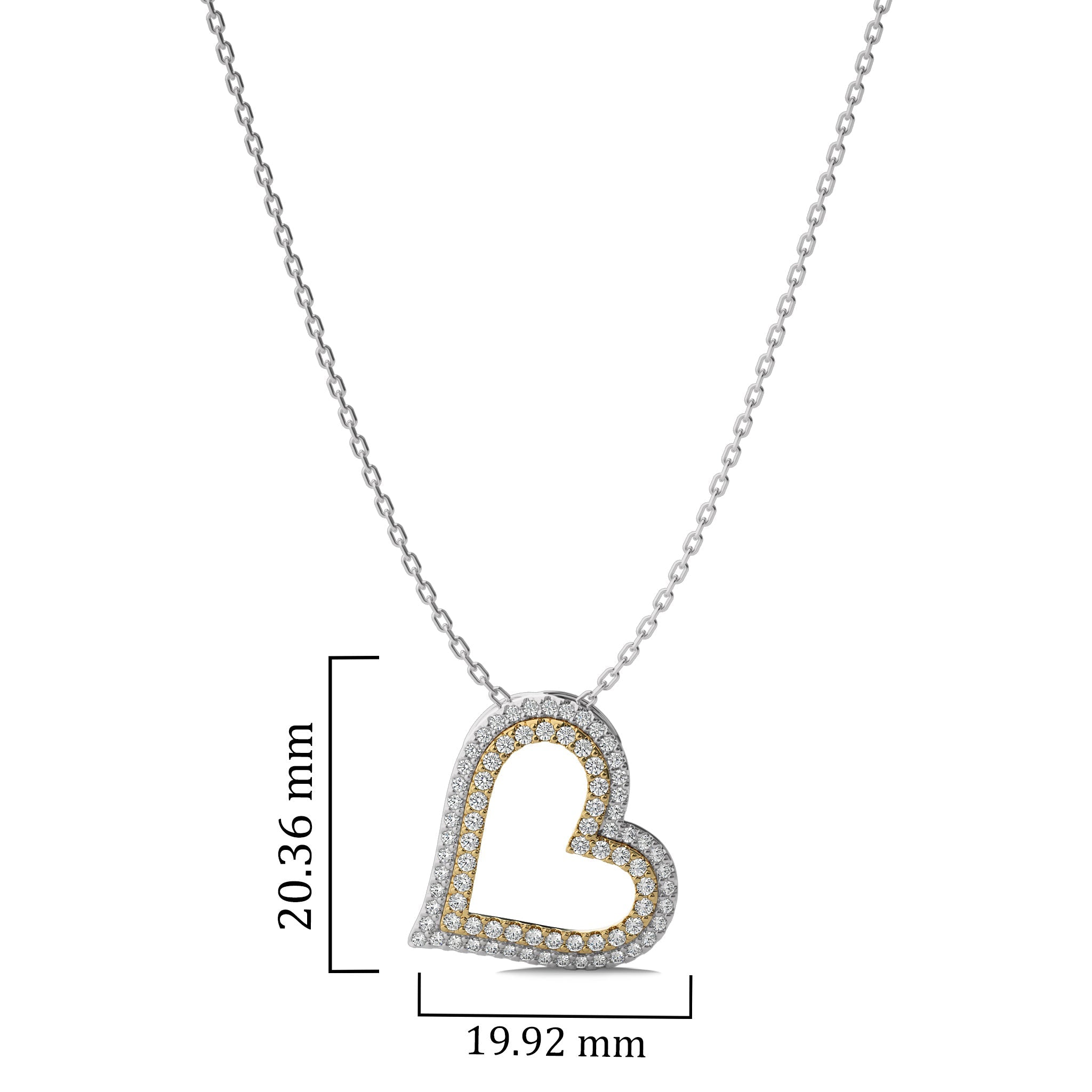 Express your affection with this two tone 5/8 CT. Round Lab Created Diamond Heart Pendant, featuring DEF/SI quality diamonds. Prong set for exceptional brilliance, this pendant captures the essence of love and elegance. A timeless piece that makes a heartfelt gift for any occasion
