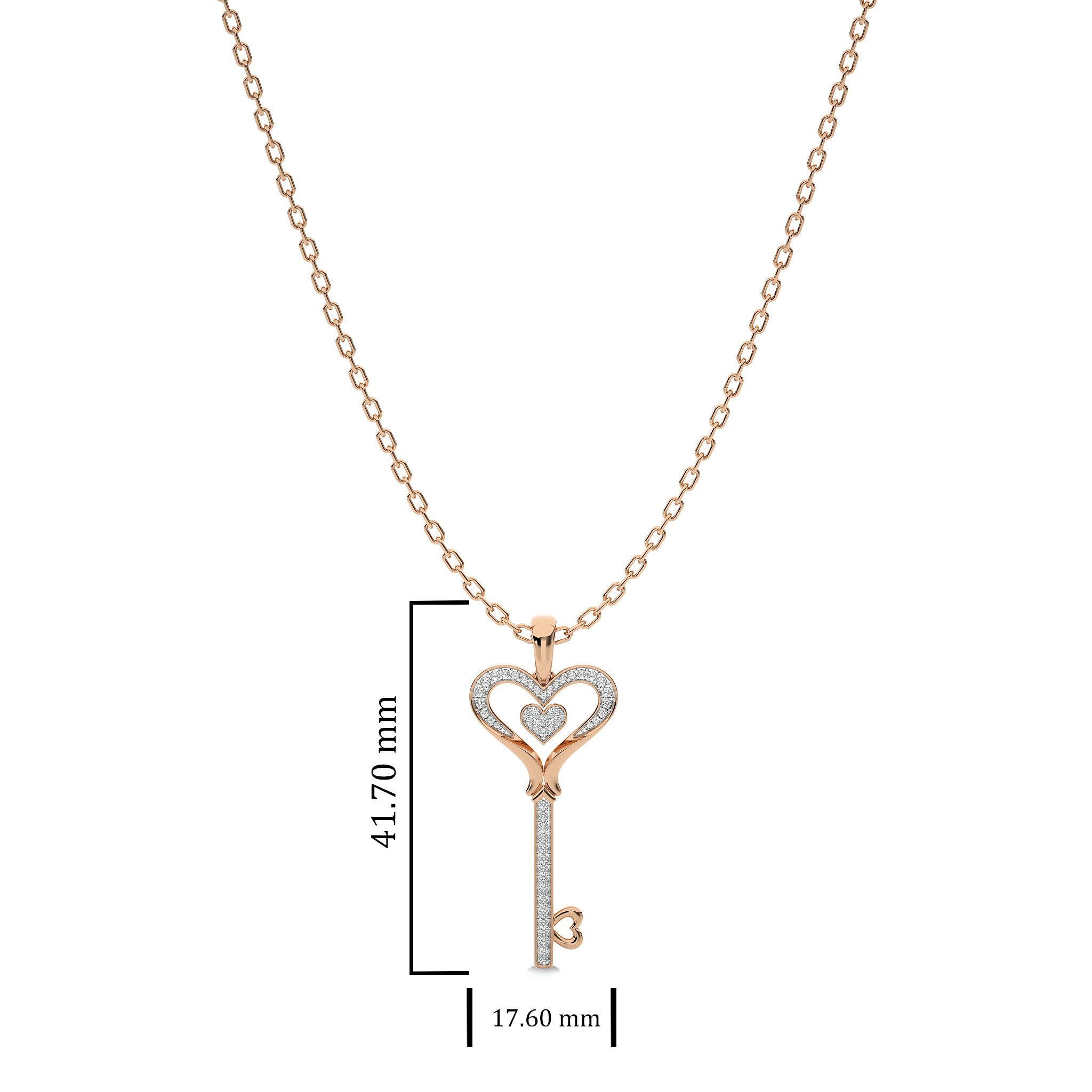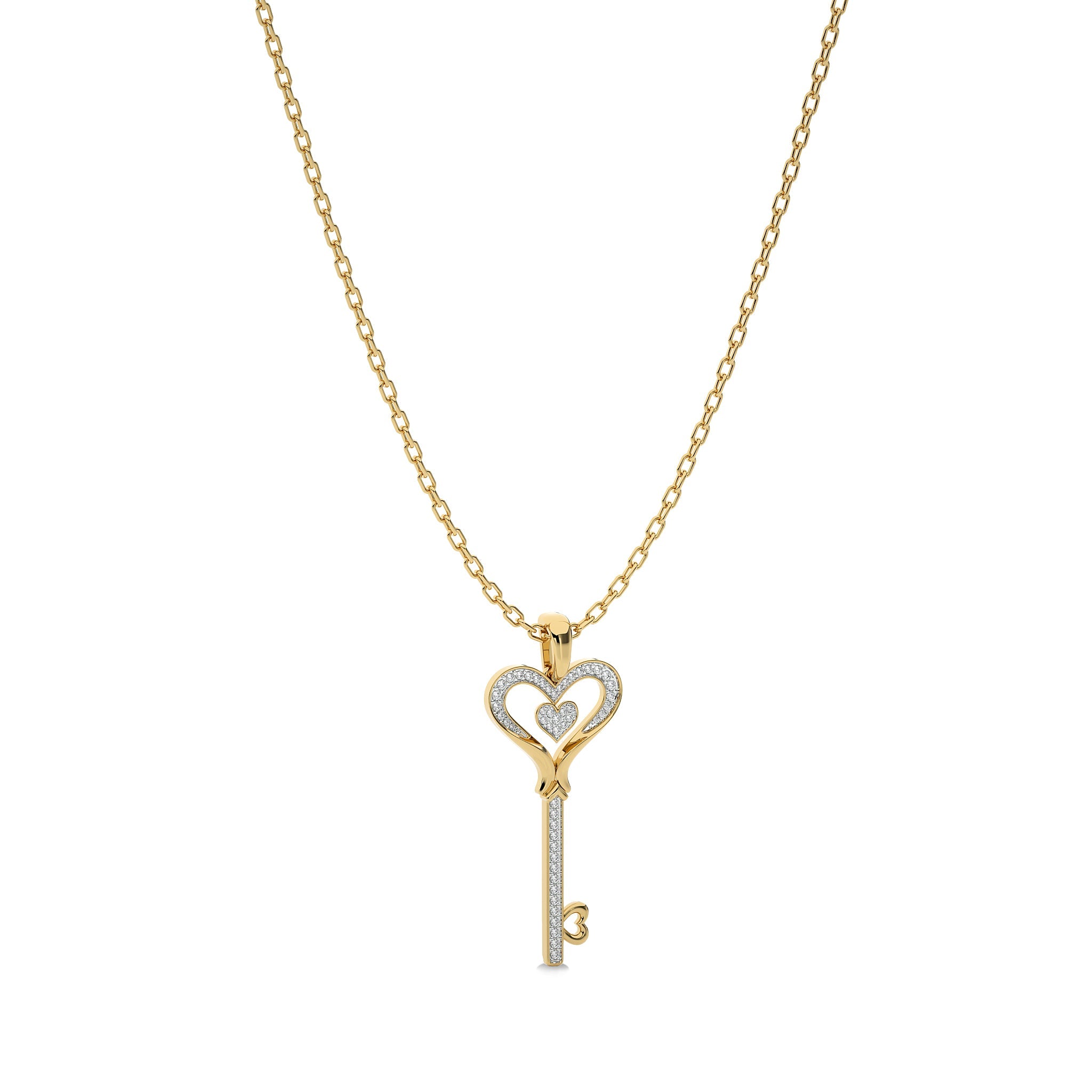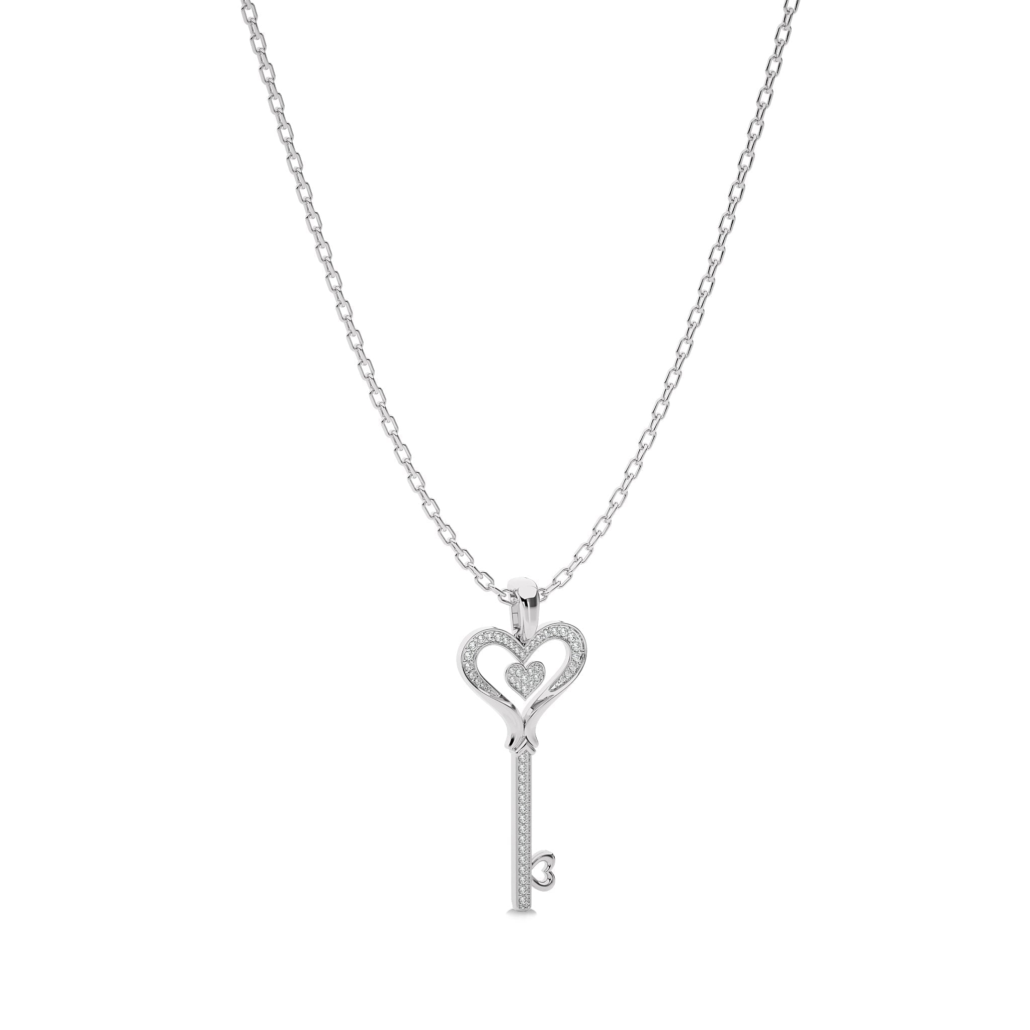 Unlock your style with this 1/4 CT. Round Lab Created Diamond Key Pendant, showcasing DEF/SI quality diamonds. Pave set for stunning sparkle, this pendant symbolizes love and possibility. A charming addition to any jewelry collection or a thoughtful gift for someone special