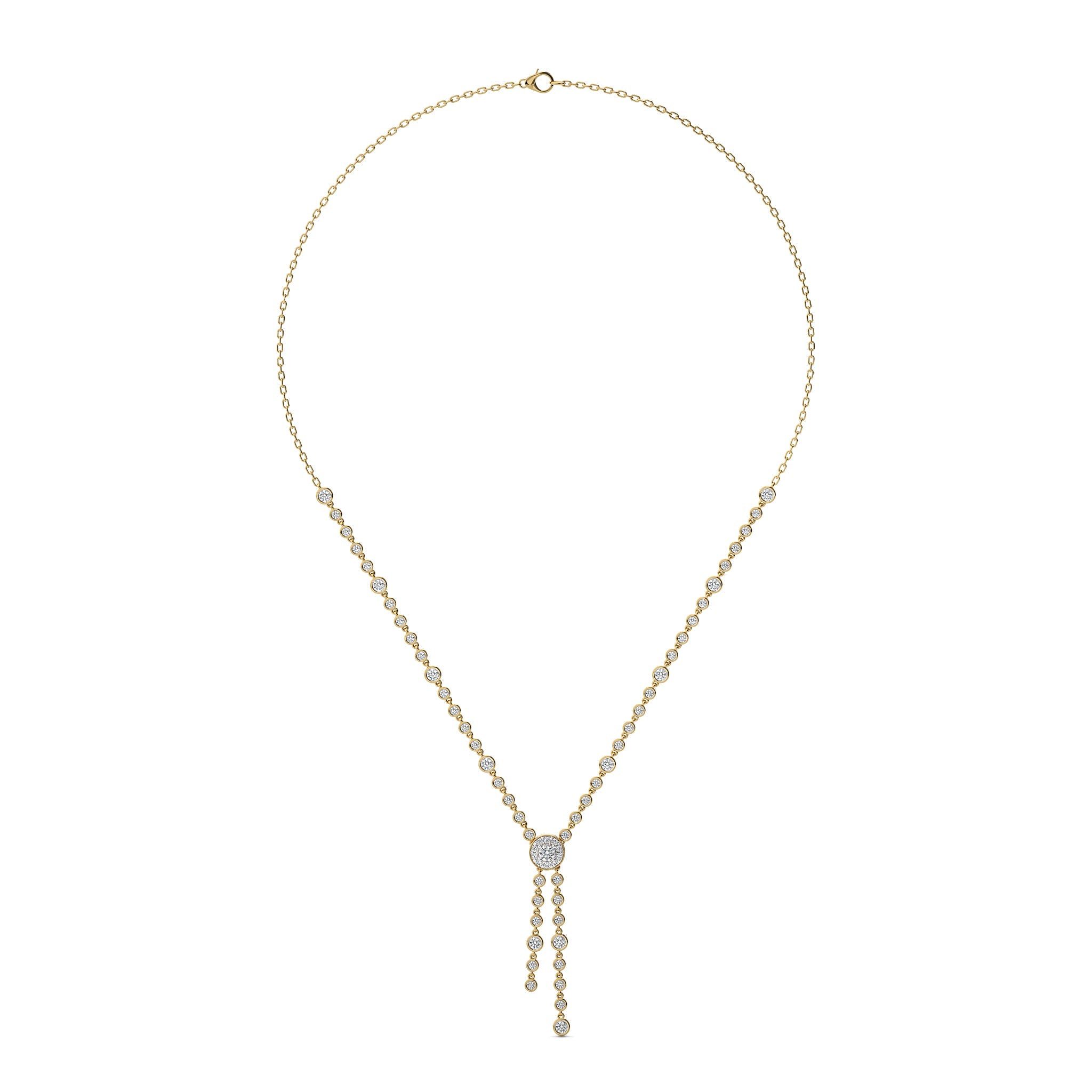 Transform your style with this 3 CT. Round Natural Diamond Pendant Necklace, showcasing H-I/I1-I2 quality diamonds. Featuring pave, bezel, and prong settings, this piece offers a dazzling display of brilliance. A stunning accessory that adds a touch of luxury to any outfit