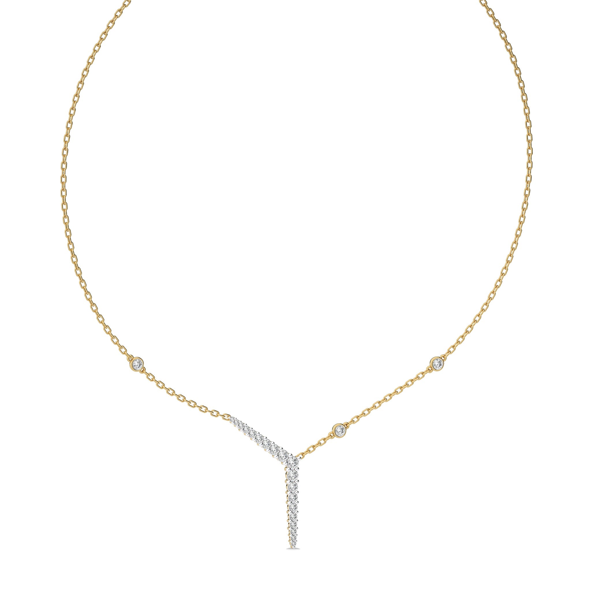 Embrace modern elegance with this 1 CT. Round Natural Diamond Y Necklace, featuring H-I/I1-I2 quality diamonds. Prong and bezel set for a captivating shine, this necklace effortlessly enhances any outfit. A stylish piece perfect for both casual and formal occasions
