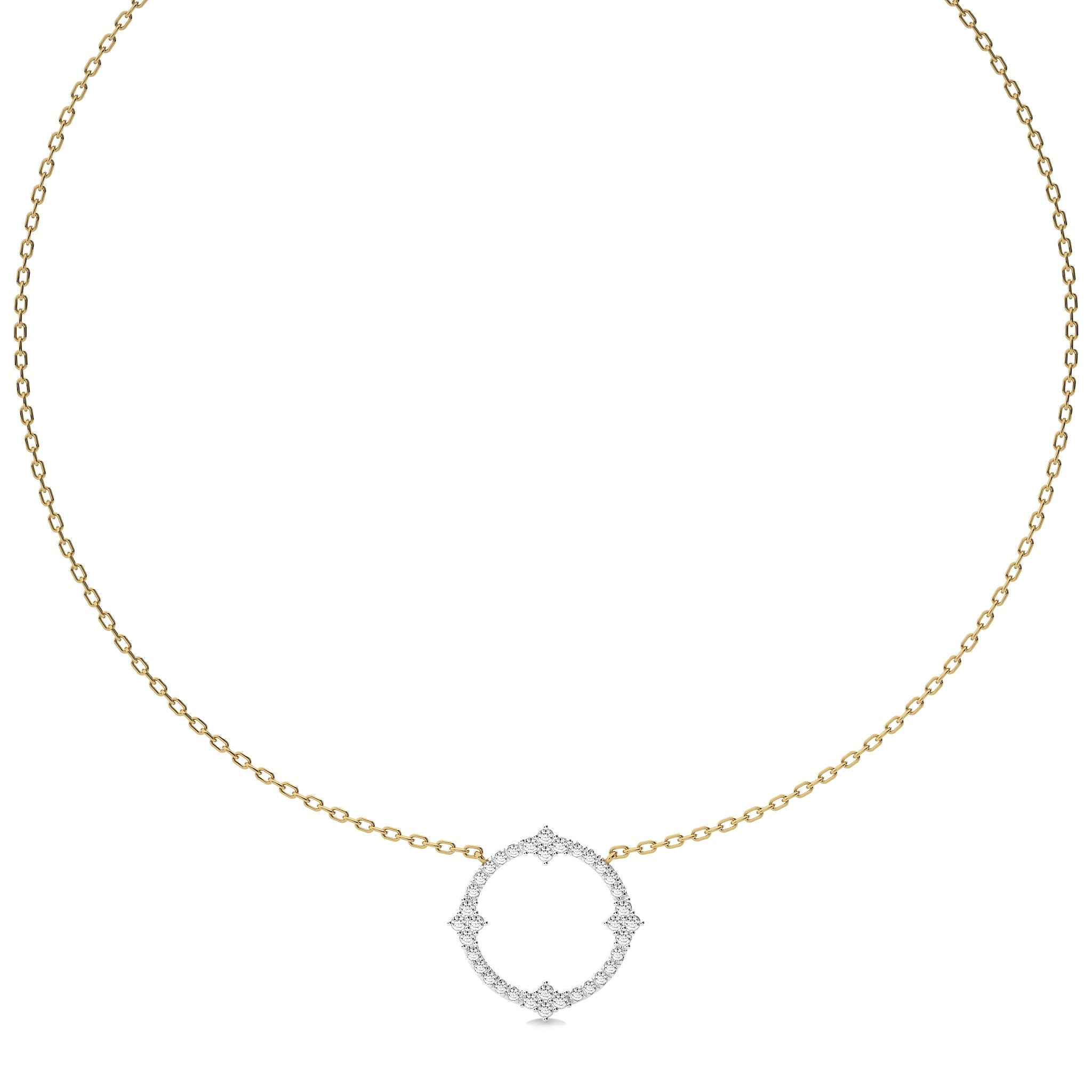 Charming and captivating, this 3/4 CT. round cut Natural diamond circle pendant necklace, H-I/I1-I2 quality, features a micro split and prong setting that enhances the diamond's brilliance. A perfect choice for adding a touch of sophistication to your look
