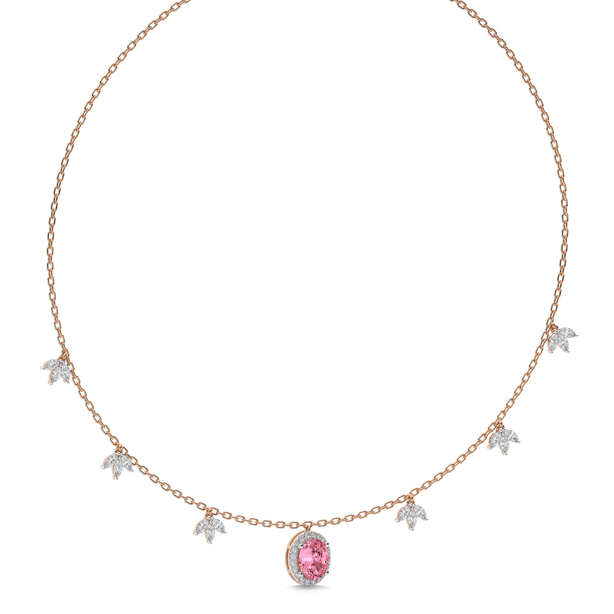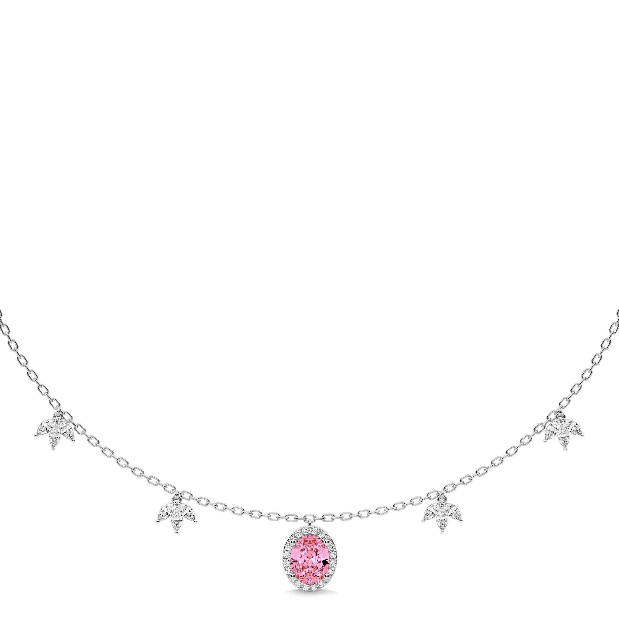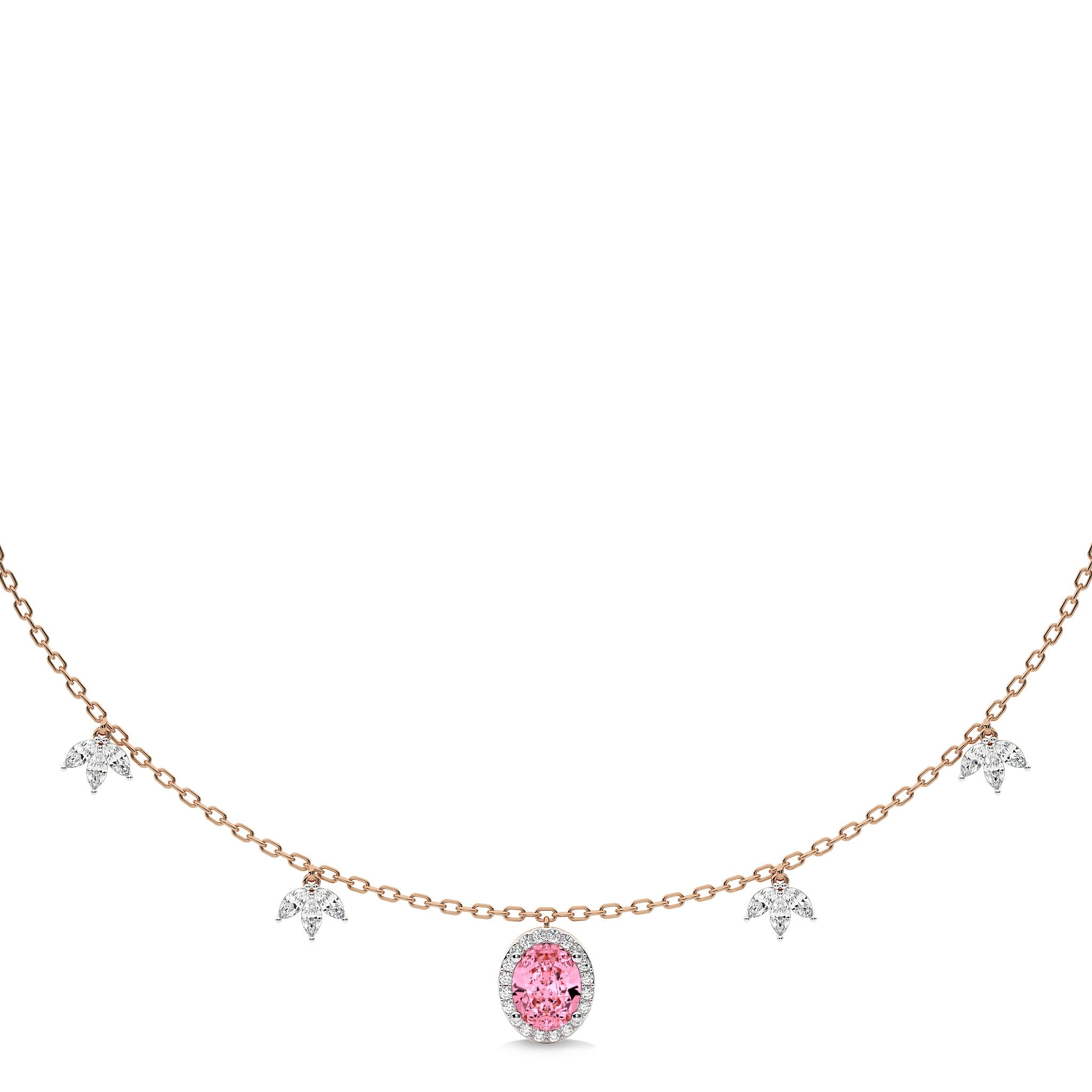 3 CT. Marquise and Round Natural Diamond Oval Morganite Pendant Necklace