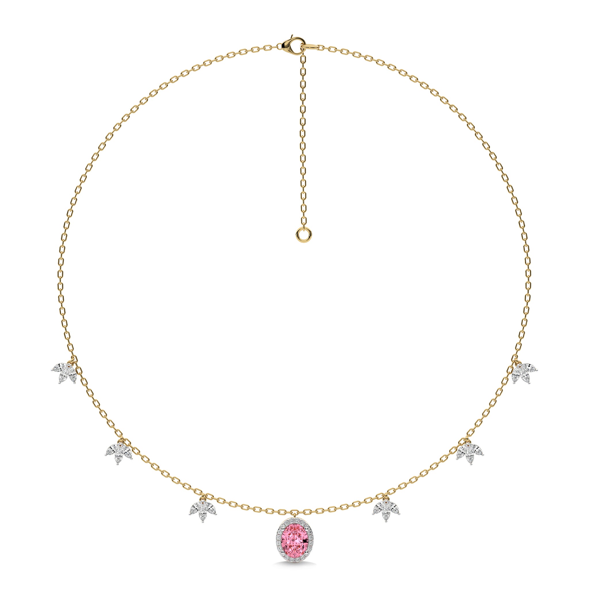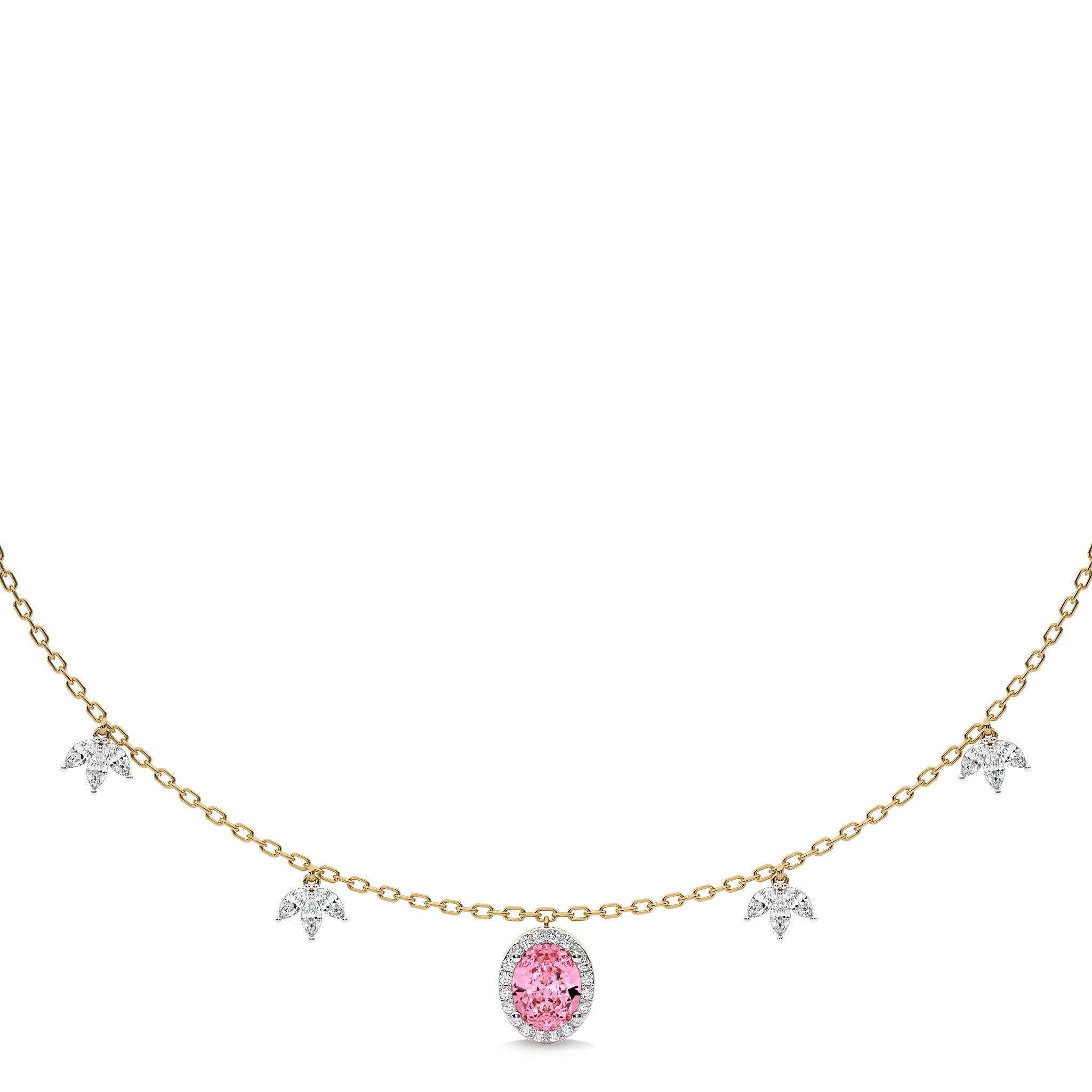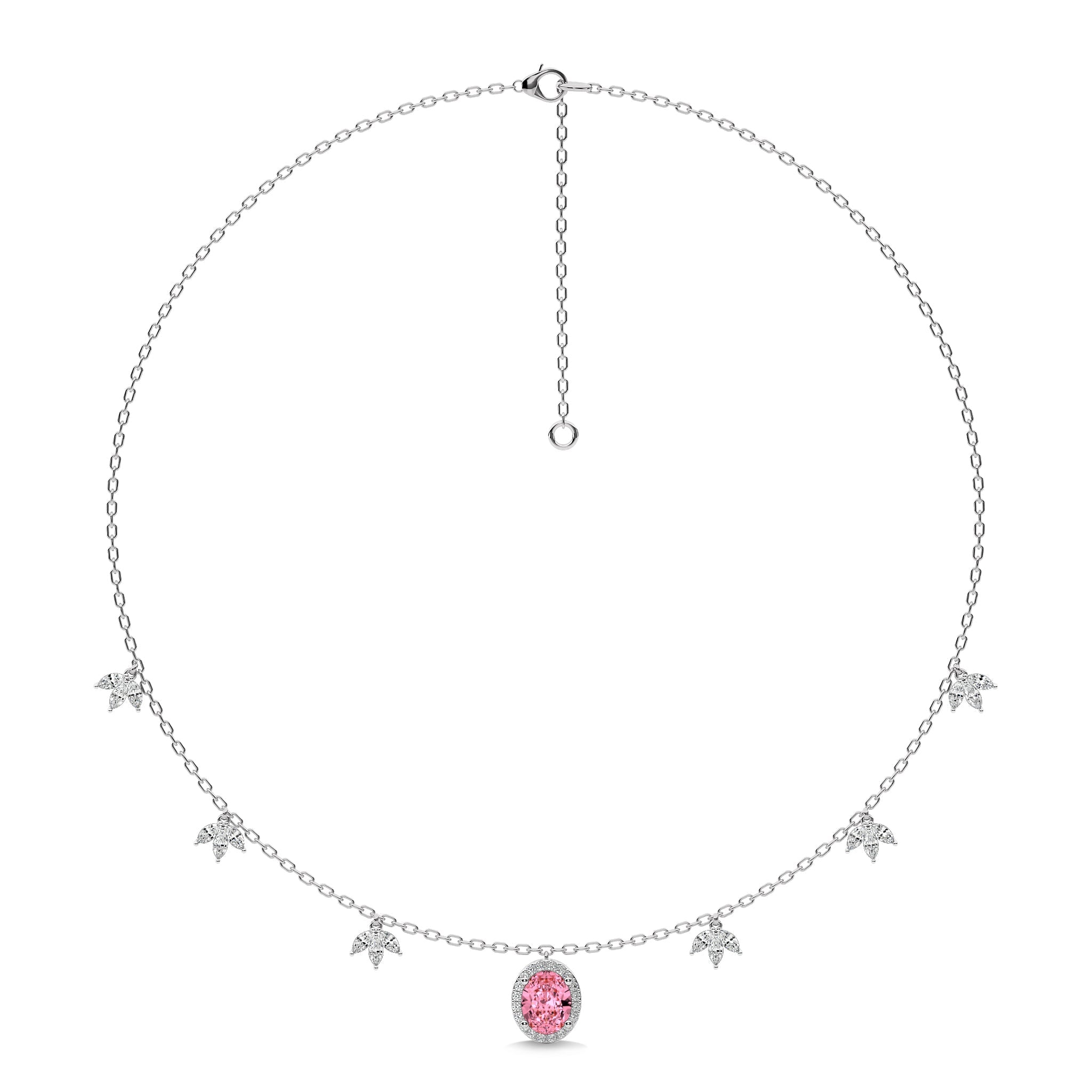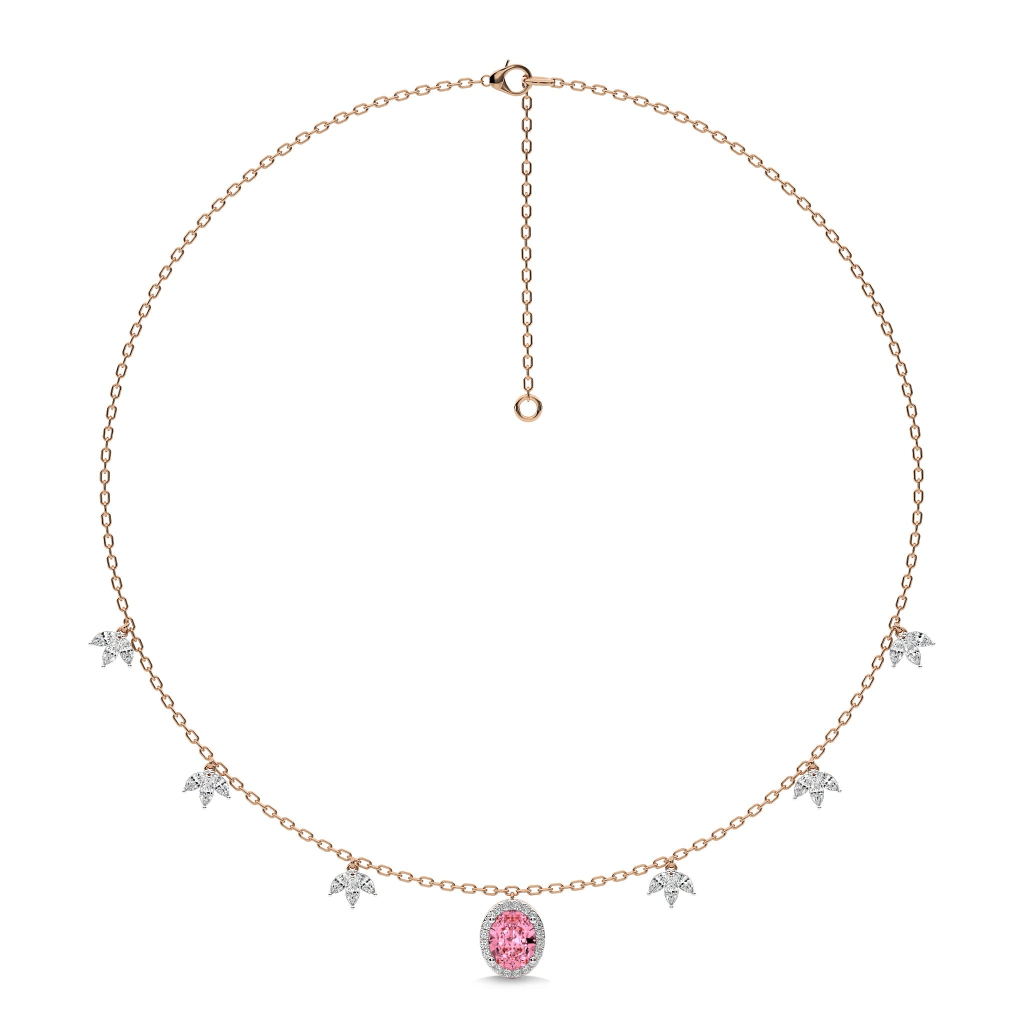 3 CT. Marquise and Round Natural Diamond Oval Morganite Pendant Necklace