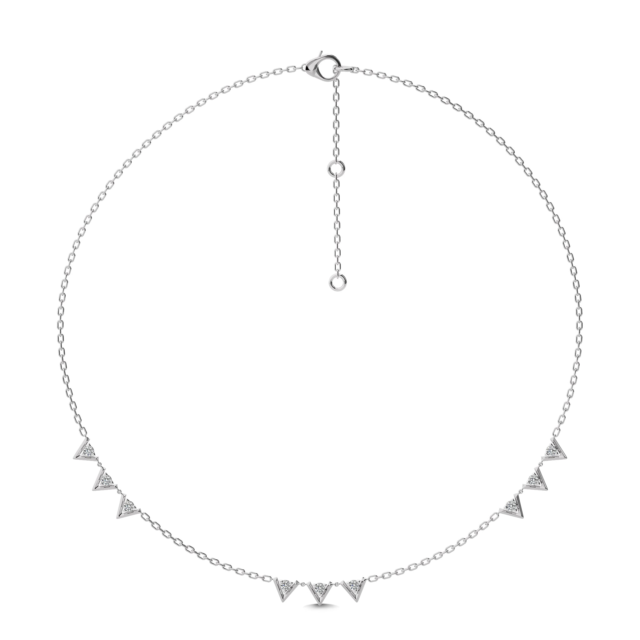 1/2 CT. Dainty Round Natural Diamond V motifs Station Necklace