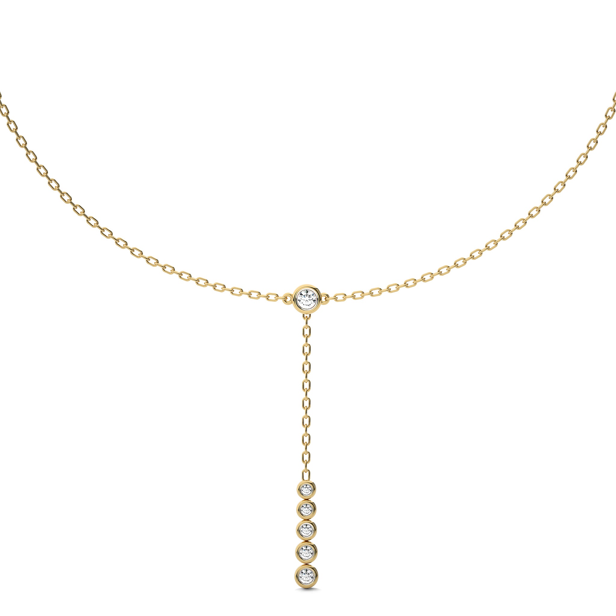 Dive into luxury with our Zephyr Round Natural Diamond Y Necklace, featuring a stunning 1/2 carat diamond of H-I/I1-I2 quality. Meticulously bezel set for a modern look, making it the perfect accessory for elevating any outfit