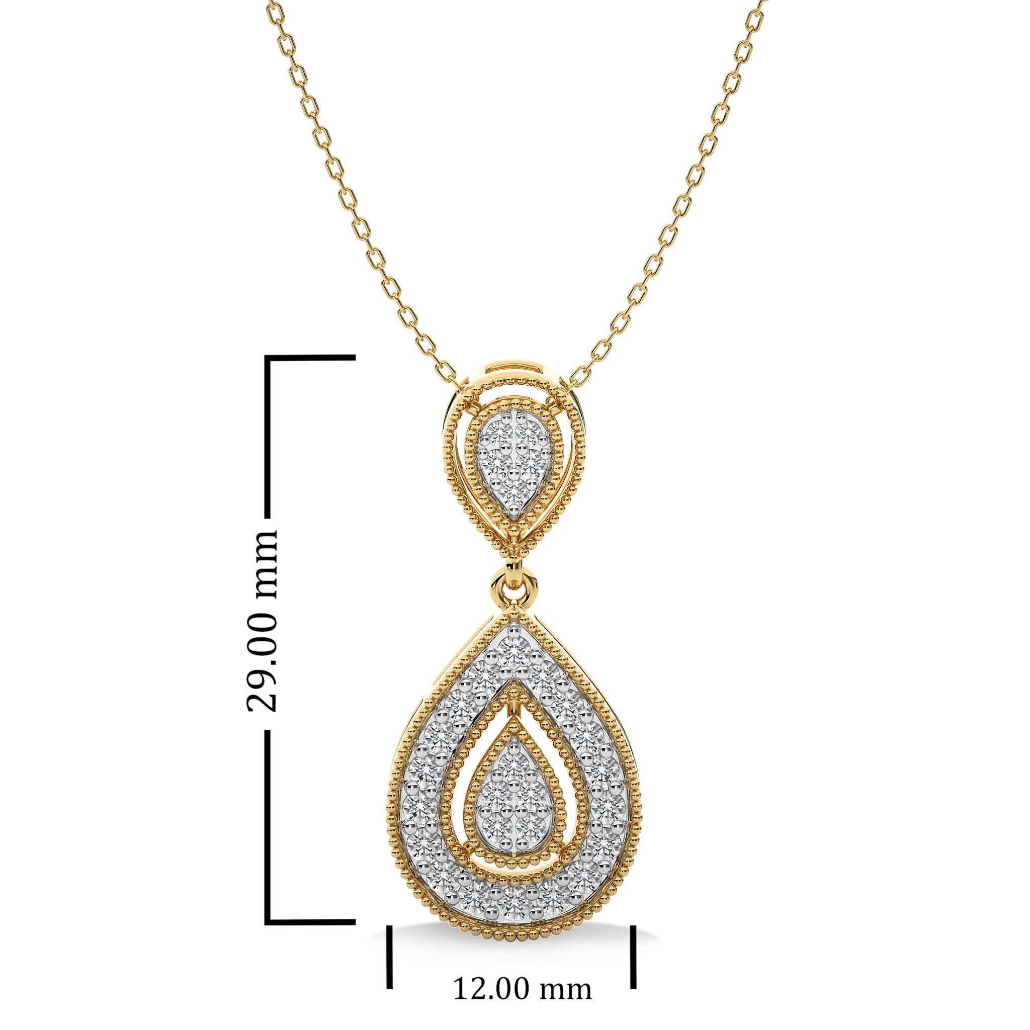 Elevate your style with this exquisite 1/2 CT. pear shape teardrop Natural diamond pendant. Set in a pave setting with H-I/I1-I2 quality stones, this pendant is a timeless and elegant addition to your jewelry collection