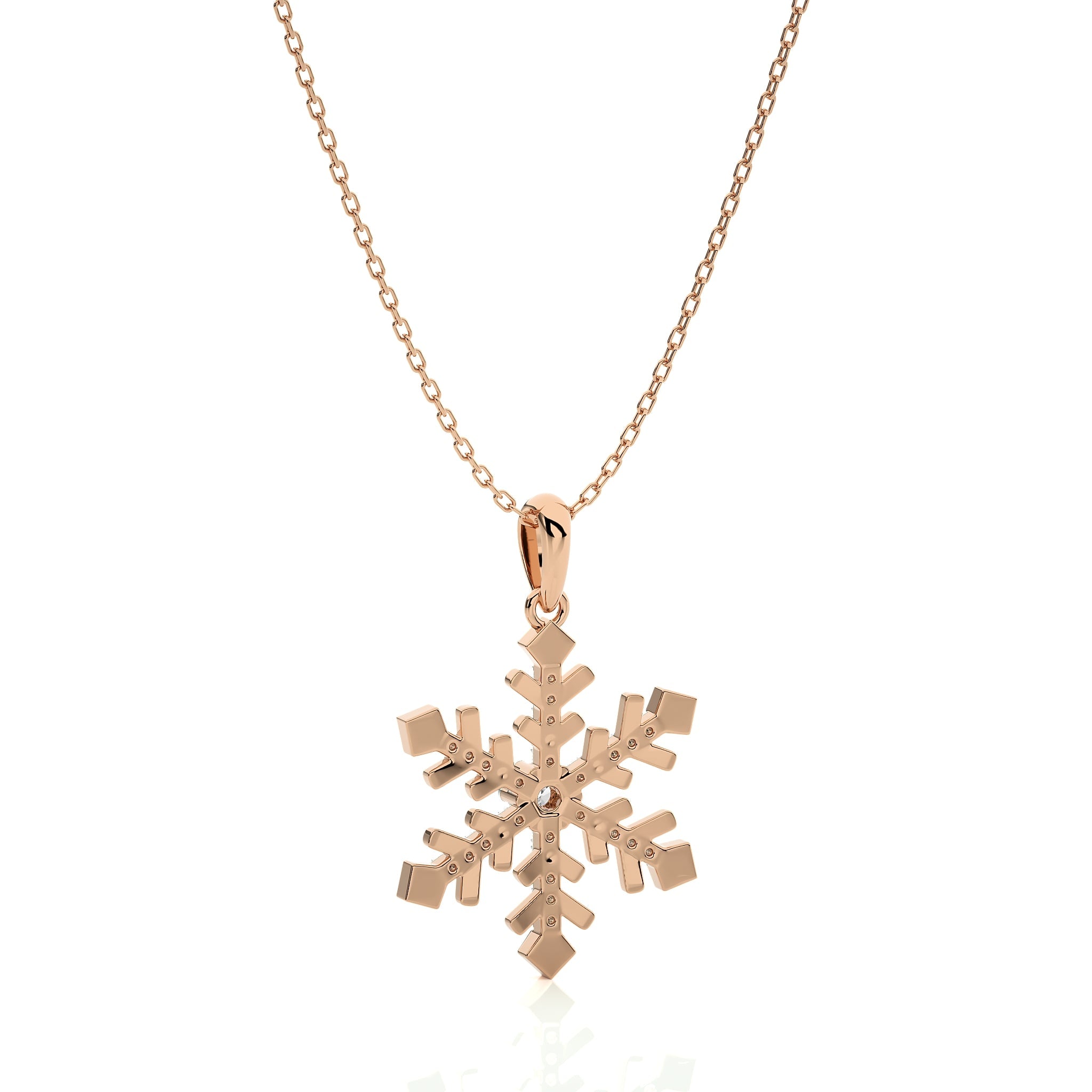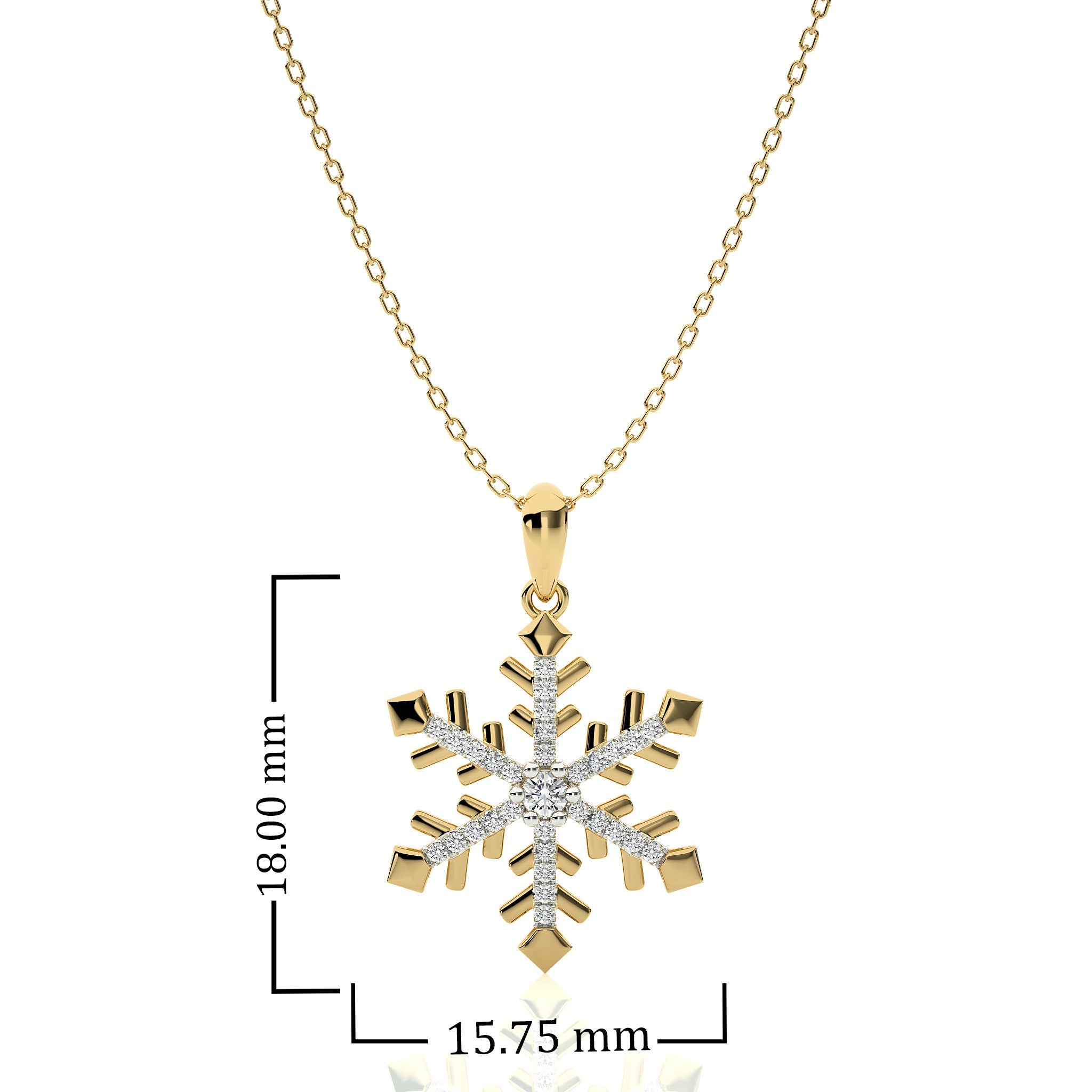 This charming piece features a 1/6 CT Natural diamond with H-I/I1-I2 quality, intricately set in a micro split and prong setting. The delicate design mimics the beauty of a snowflake, capturing light and attention with its shimmering brilliance