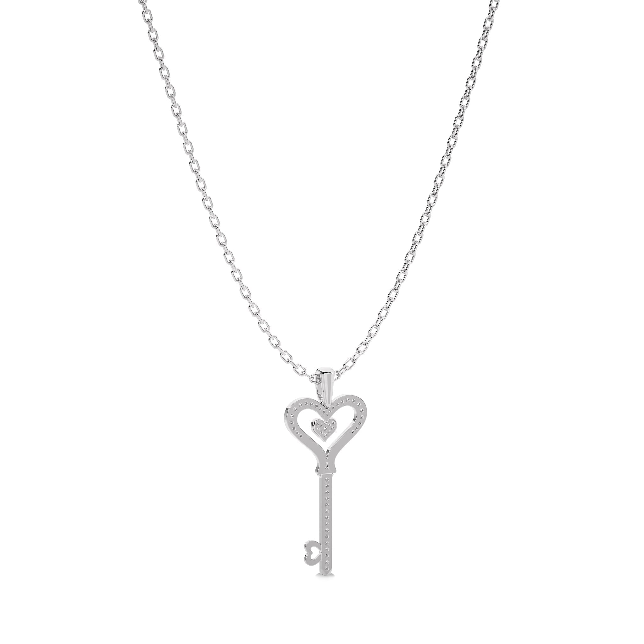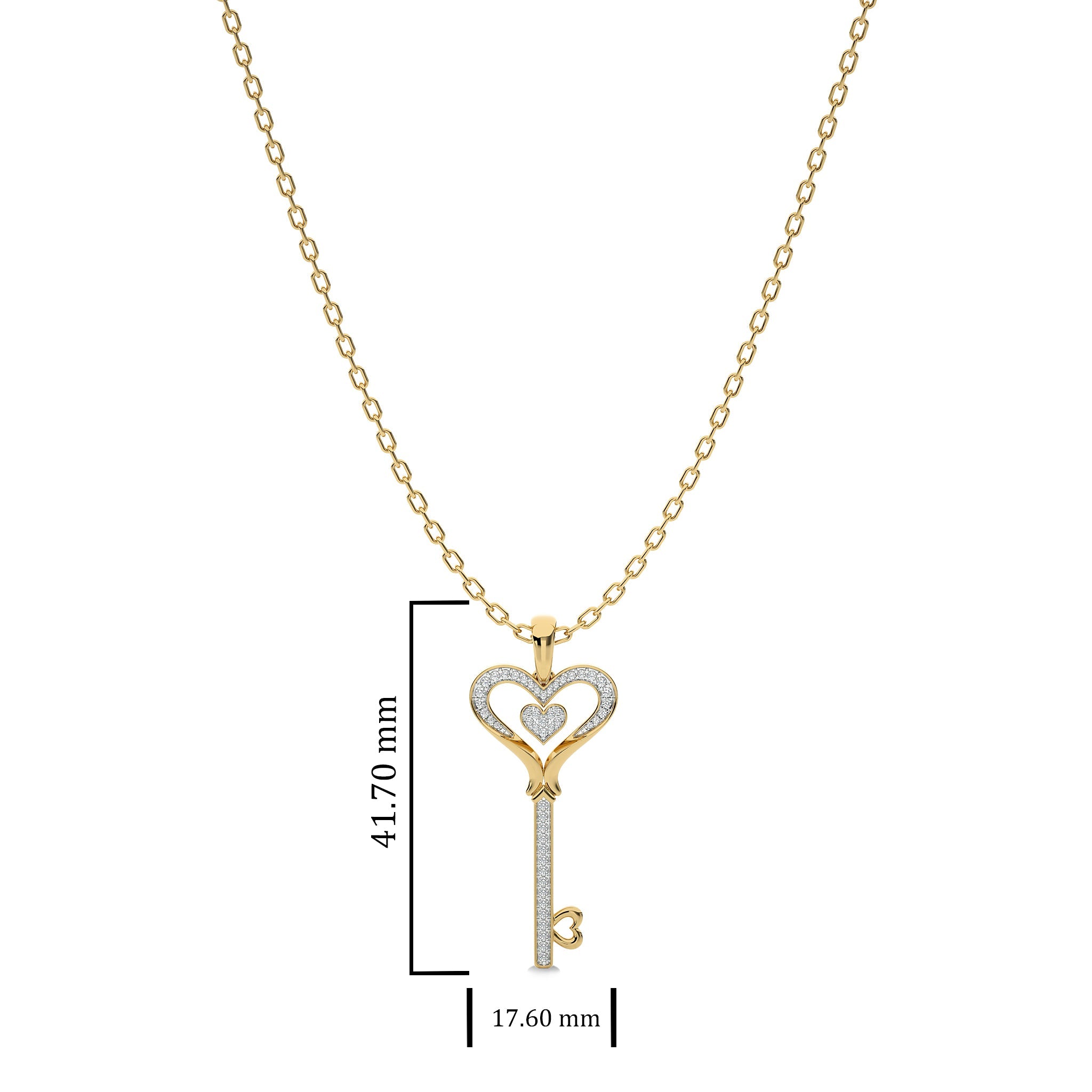 Unlock your style with this 1/4 CT. Round Natural Diamond Key Pendant, showcasing H-I/I1-I2 quality diamonds. Pave set for stunning sparkle, this pendant symbolizes love and possibility. A charming addition to any jewelry collection or a thoughtful gift for someone special