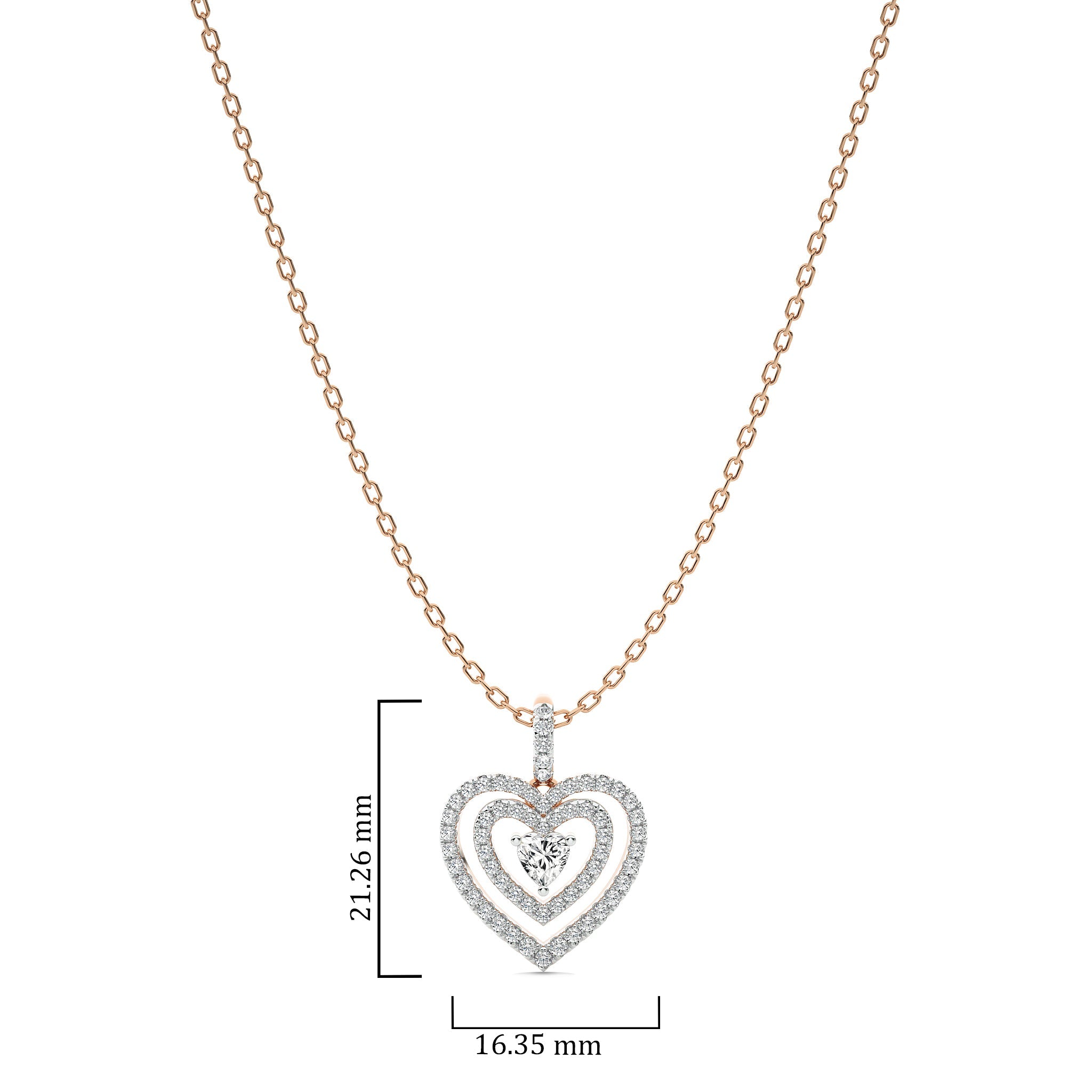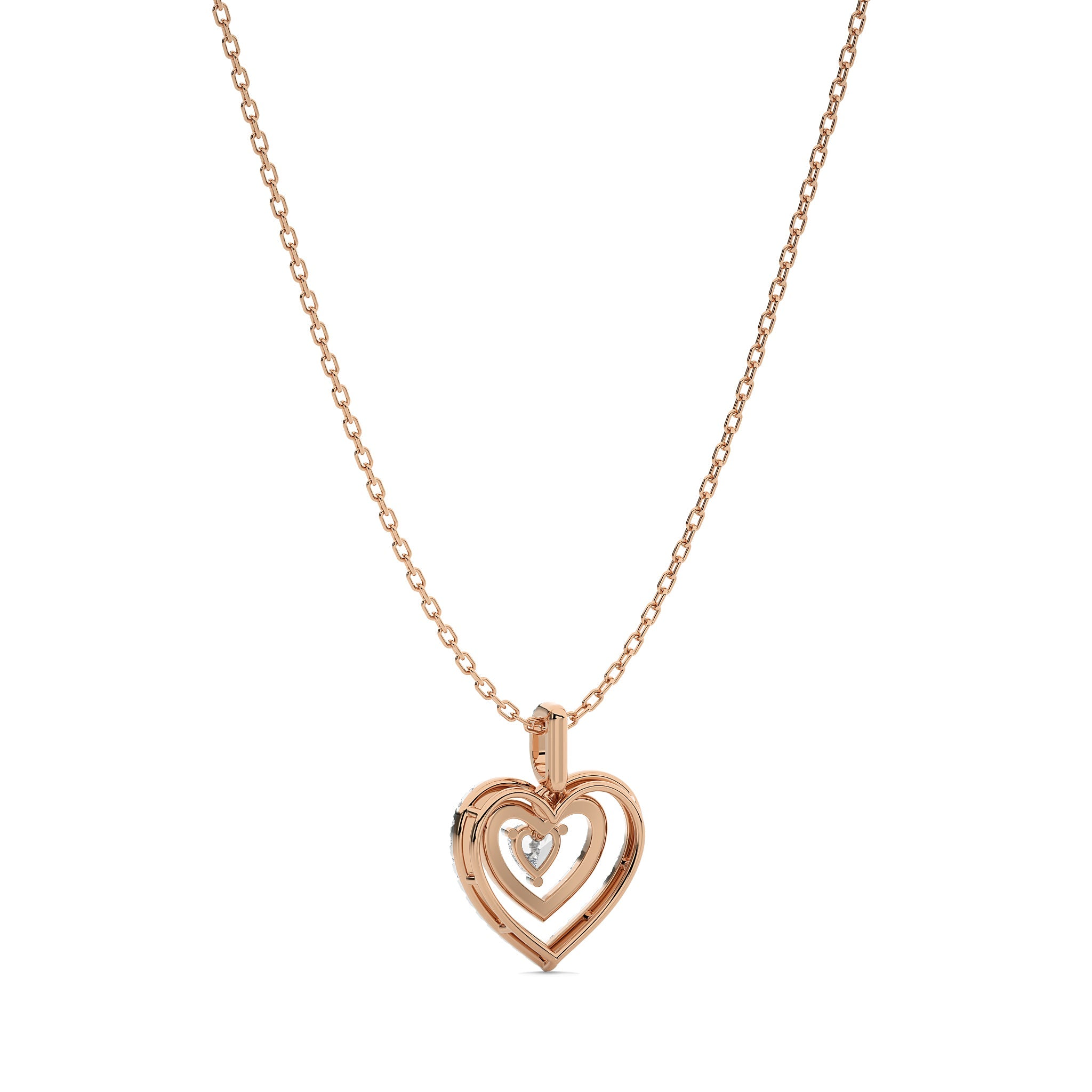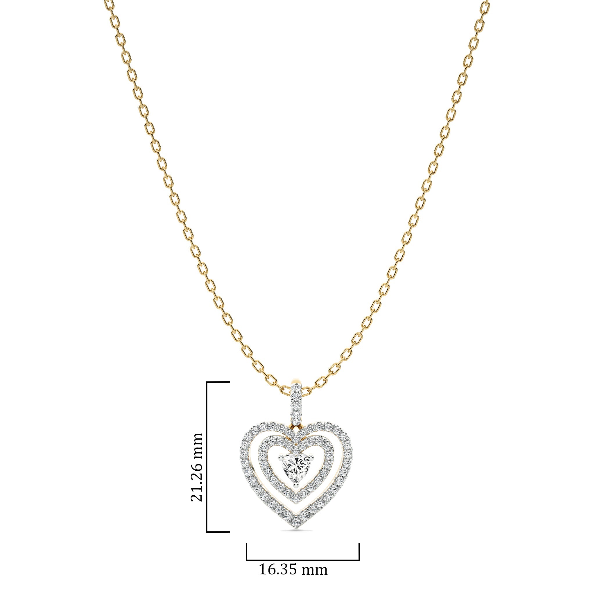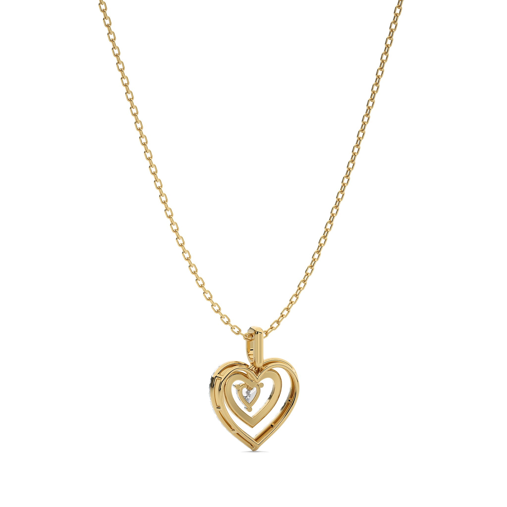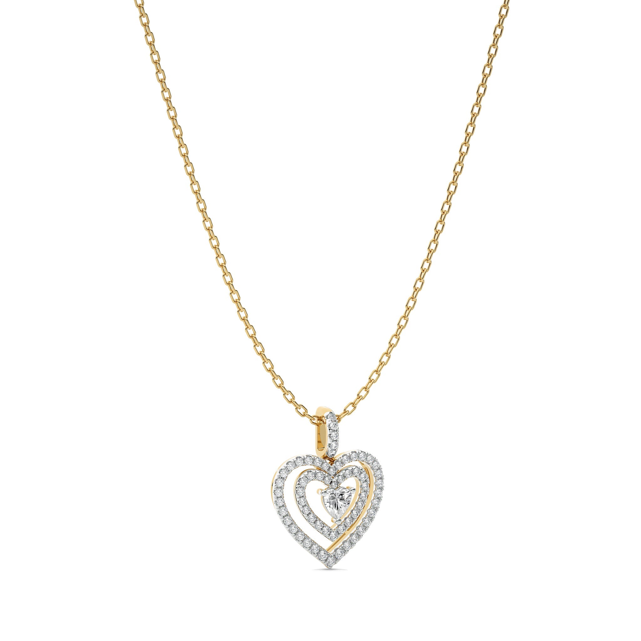 Love with this 5/8 CT. Triple Layer Round Natural Diamond Heart Pendant, featuring H-I/I1-I2 quality diamonds. Crafted with pave, micro split, and prong settings, this pendant showcases exceptional brilliance and depth. A beautiful piece that enhances any ensemble with a touch of romance