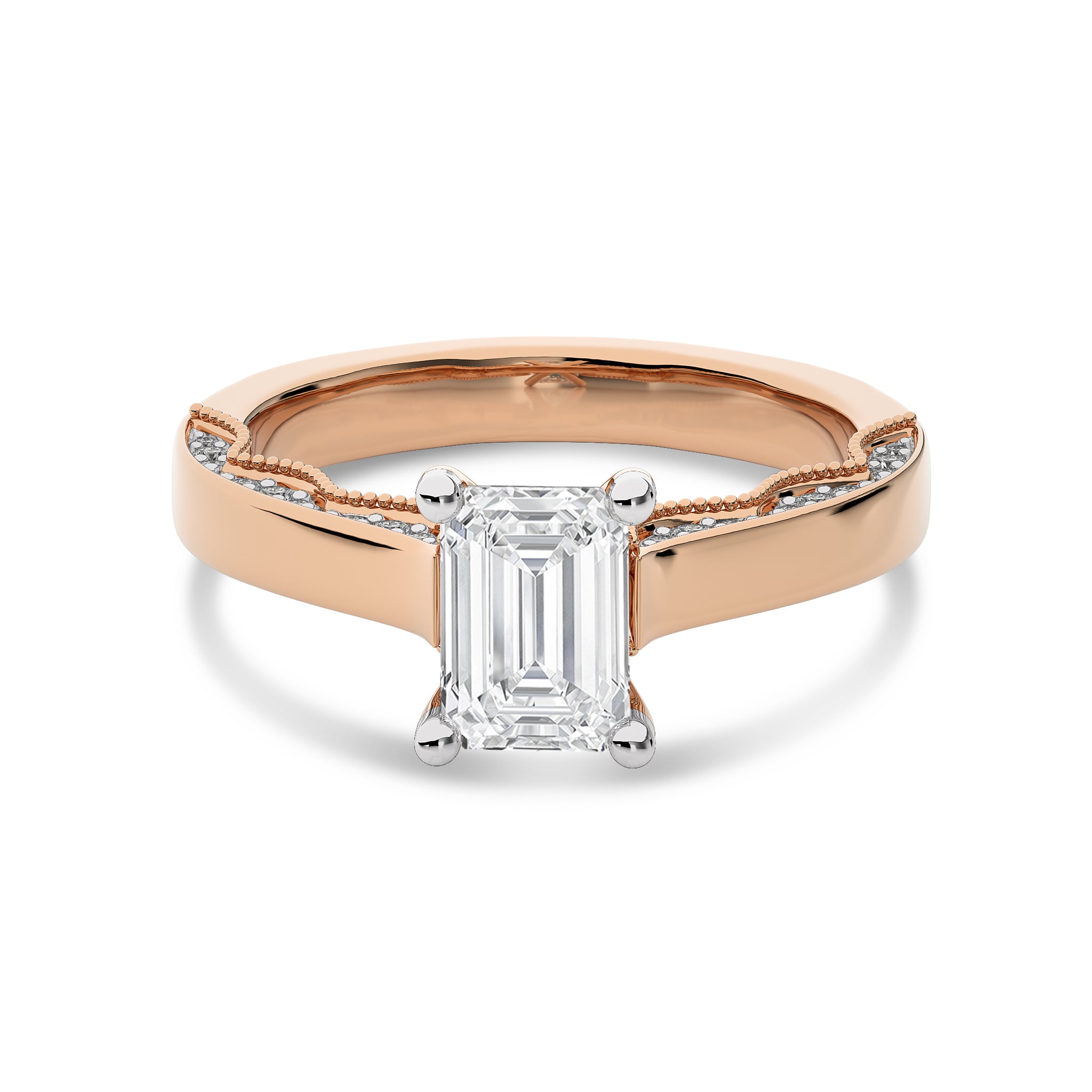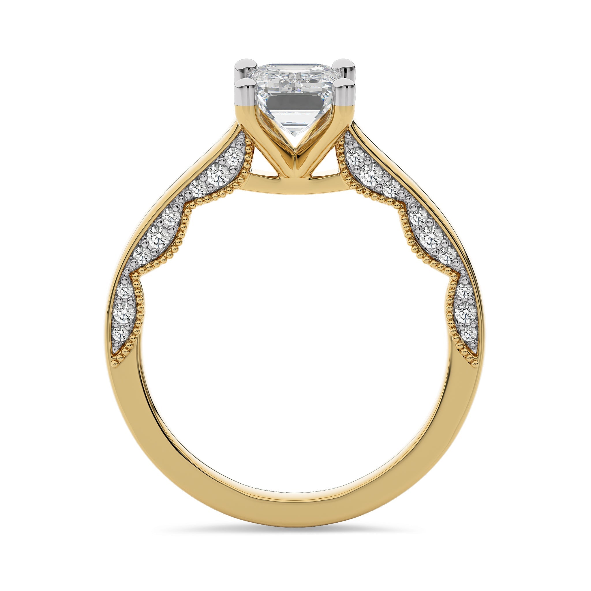 Vintage Emerald Cut Solitaire Ring with Studded Edge Lab Created Diamond Engagement Ring
