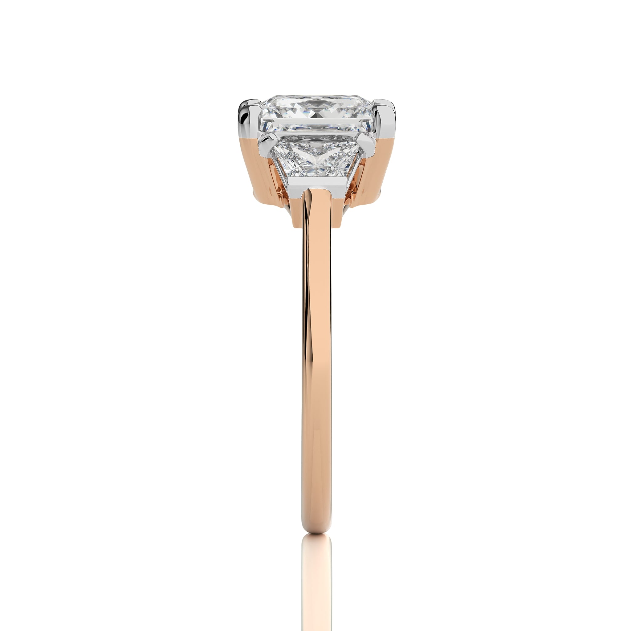 3 CT. Three Stone Princess and trapezoid Lab Created Diamond Engagement Ring