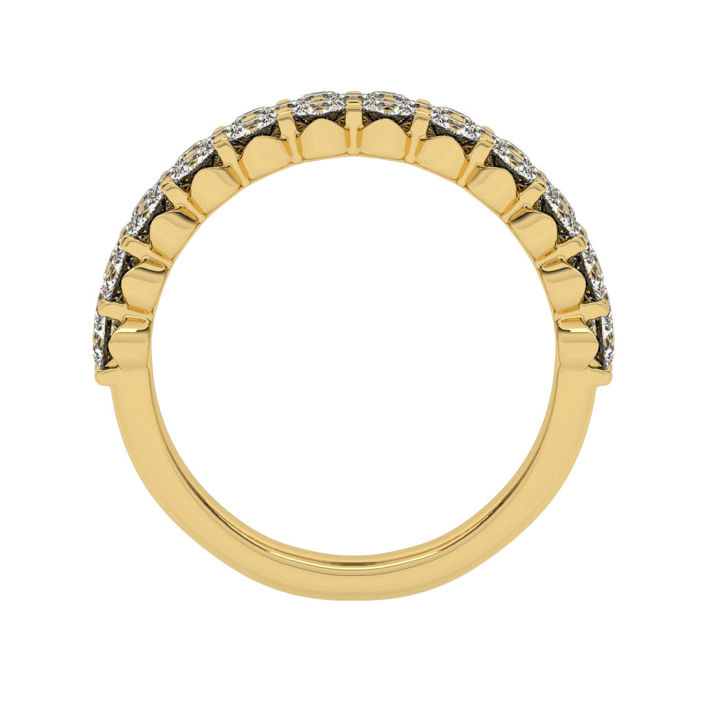 This magnificent 1 1/2 Carat Tripple Row Half Eternity Band is a true testament to timeless beauty. The DEF/SI quality lab-created diamonds are expertly set in a prong setting, accentuating their brilliance and fire. Perfect for adding a touch of elegance to any outfit, this band is a true classic