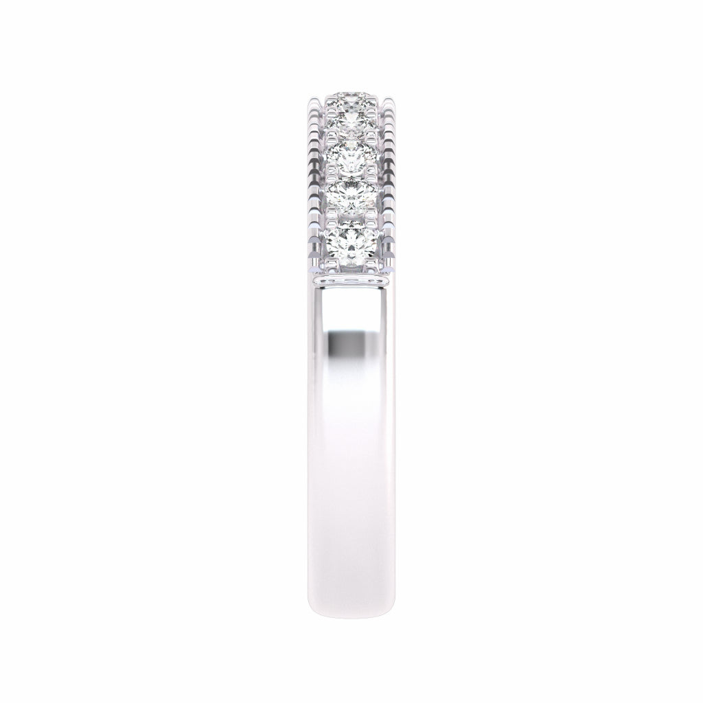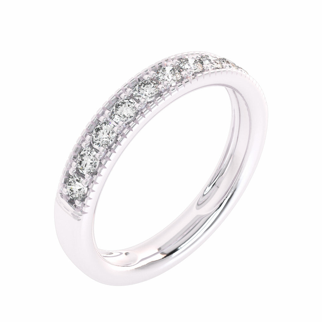 This magnificent 1/2 Carat Single Row Half Eternity Band is a true testament to timeless beauty. The DEF/SI quality lab-created diamonds are expertly set in a Micro pave setting, The diamonds are surrounded by a millgrain wall, adding a touch of elegance and vintage charm to the design. This beautiful ring makes a perfect gift for a loved one or a special treat for yourself
