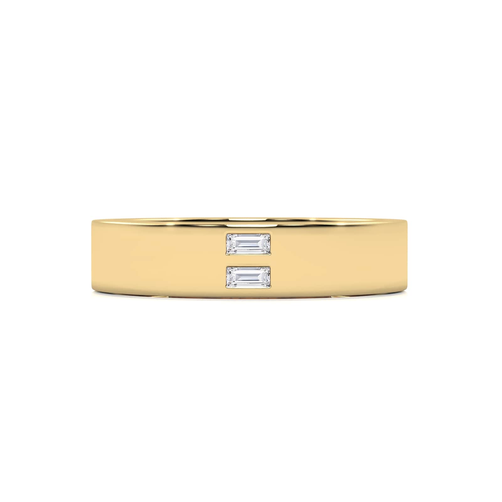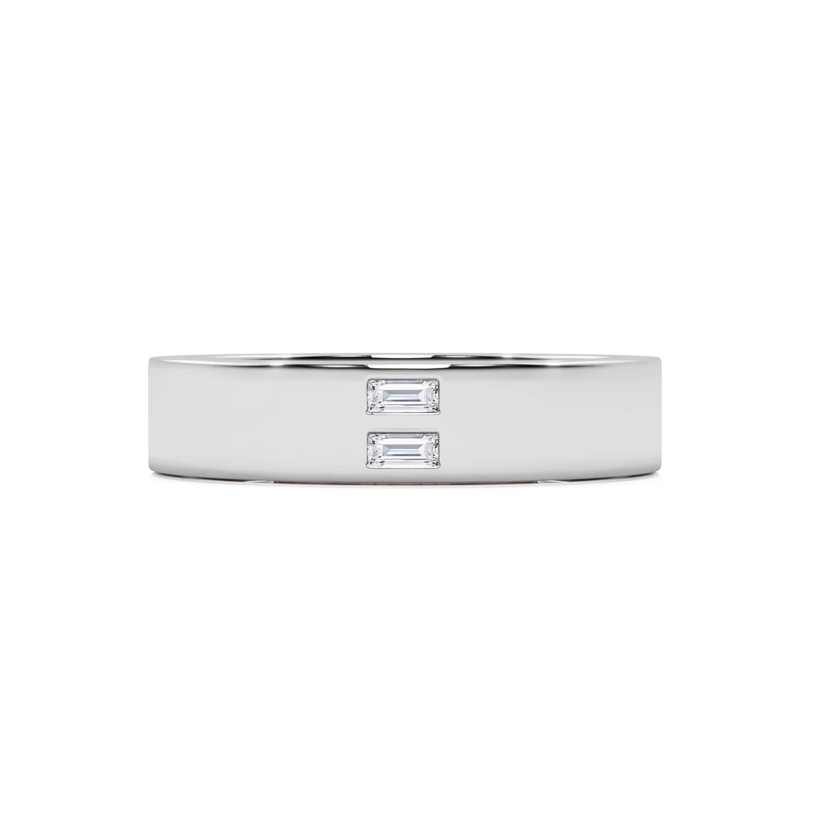 Redefine modern style with this 1/10 CT. Double Baguette Bezel Set Men's Wedding Band, featuring H-I/I1-I2 quality diamonds in a flush set, blending sleek design with subtle brilliance