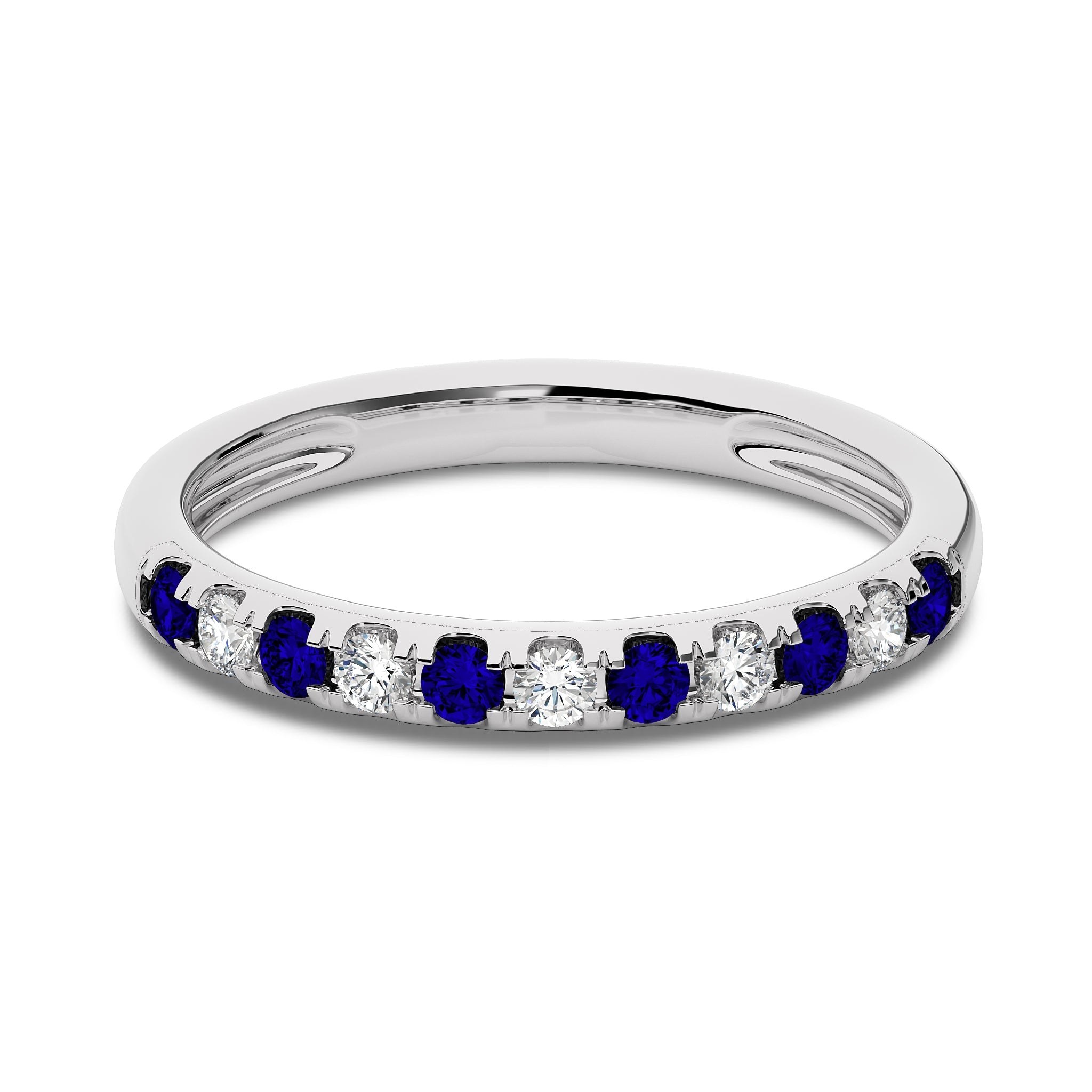 1/2 CT. Round Natural Diamond and Blue Sapphire Half Eternity Band
