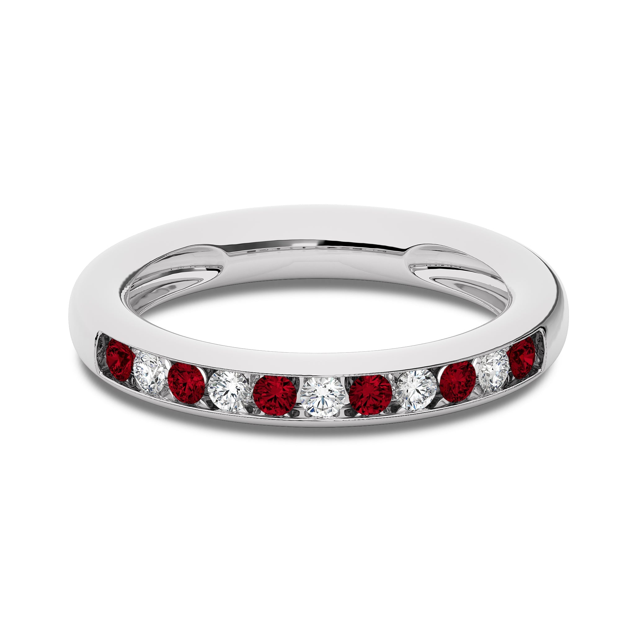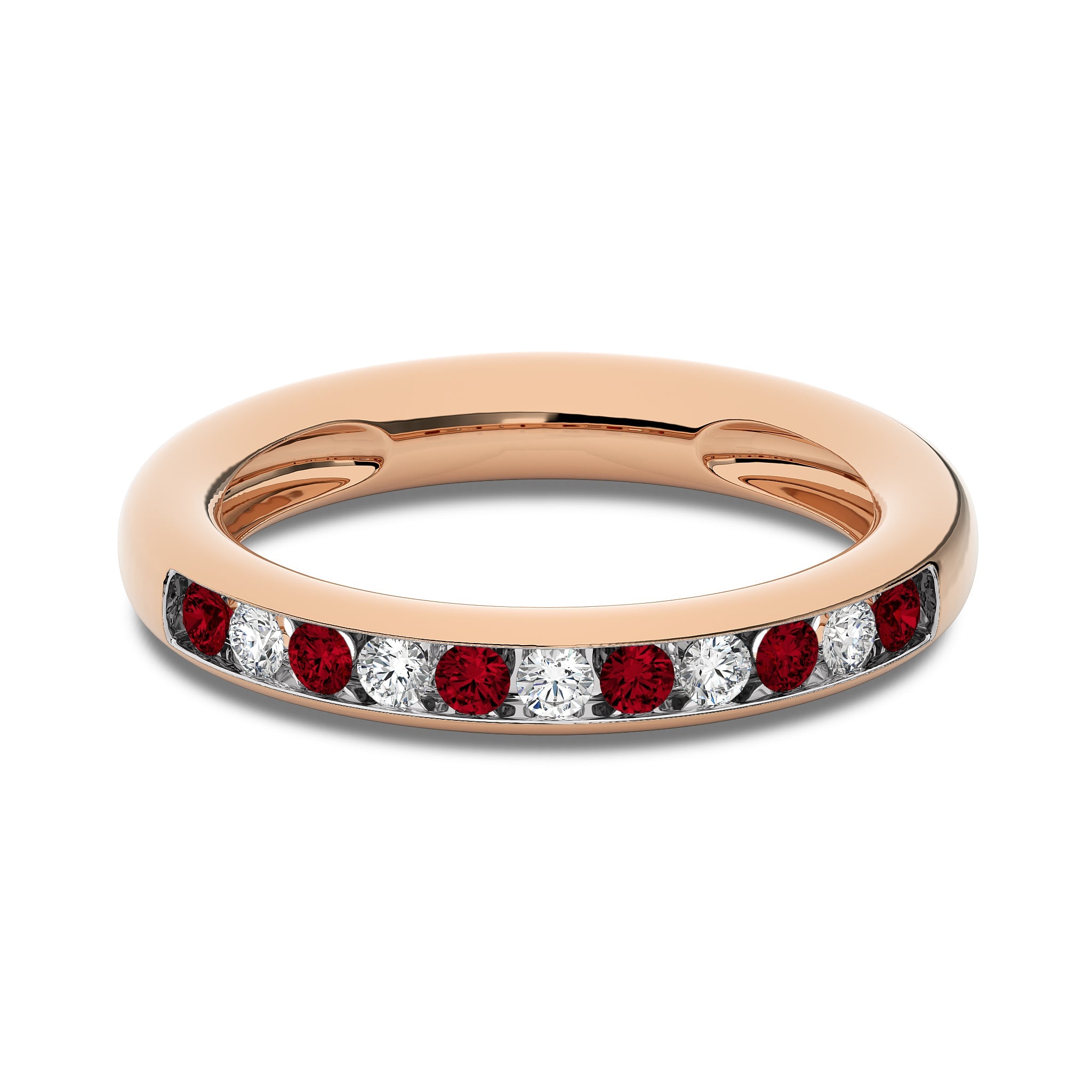 3/8 CT. Round Natural Diamond and Ruby Half Eternity Band