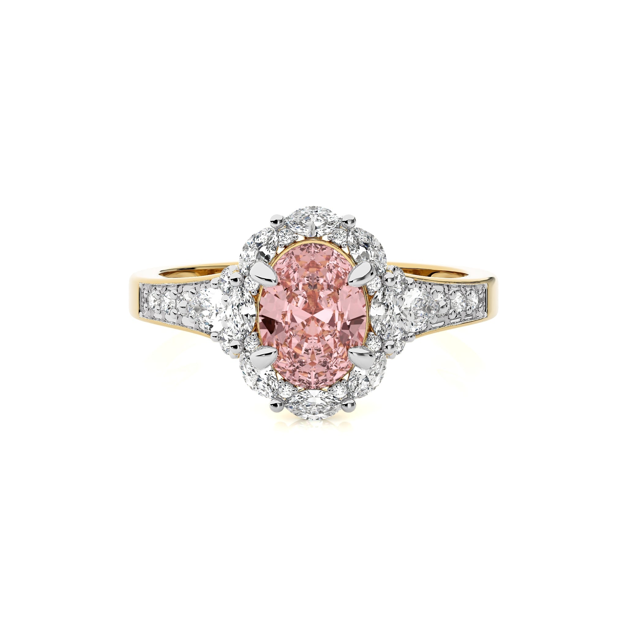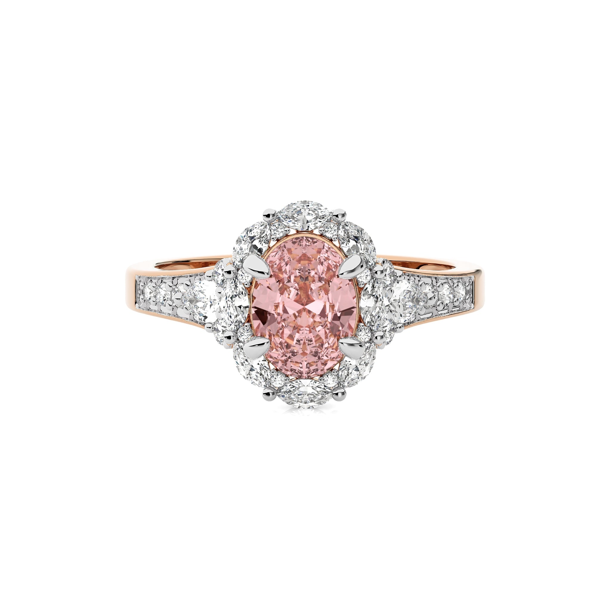 Celebrate love with this 1 3/4 CT Round Natural Diamond and Oval Morganite Engagement Ring. The radiant round diamonds beautifully complement the soft pink oval morganite, creating a stunning contrast of sparkle and warmth. This elegant ring symbolizes a timeless bond, offering a unique and romantic touch for your special moment