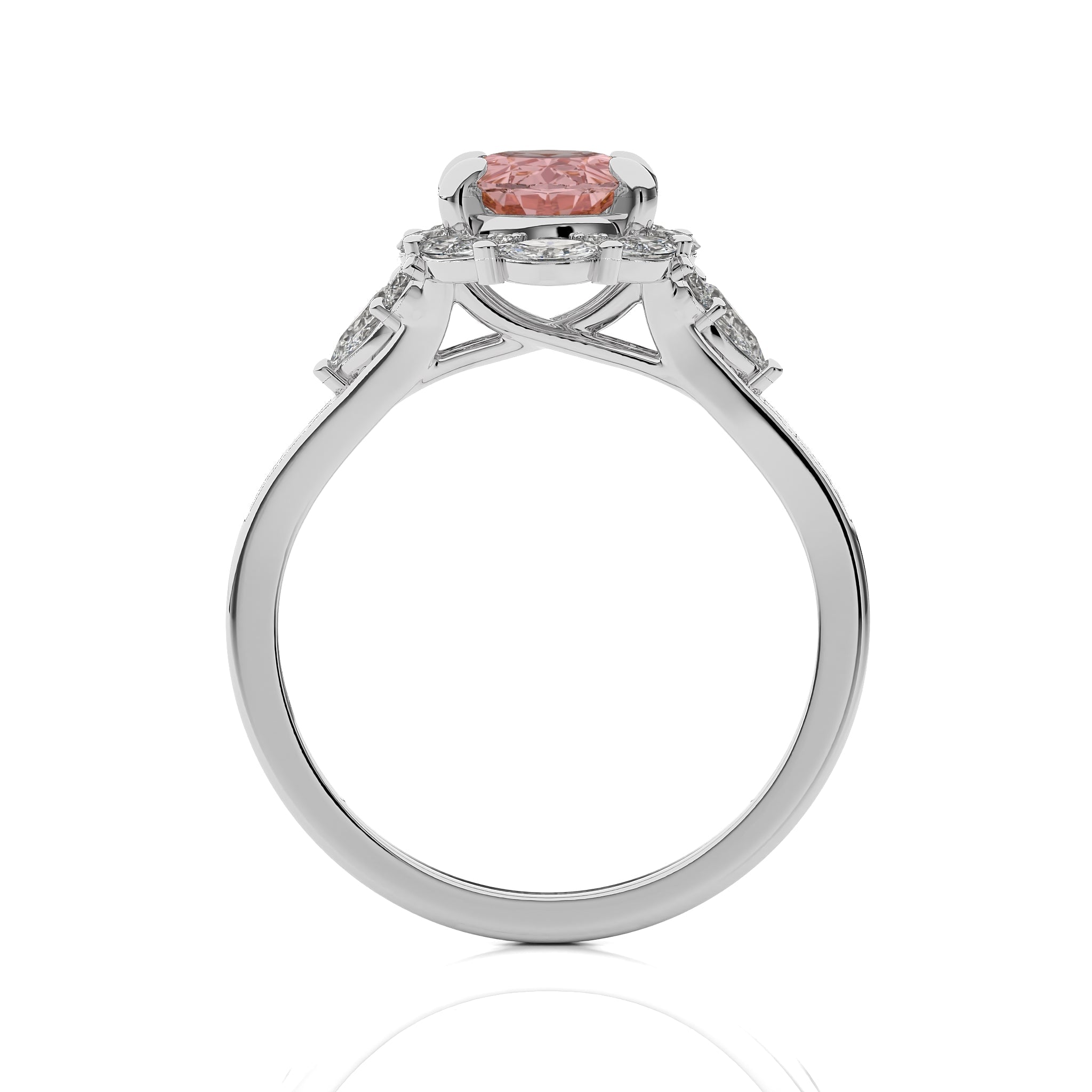 1 3/4 CT Round Natural Diamond and Oval Morganite Engagement Ring
