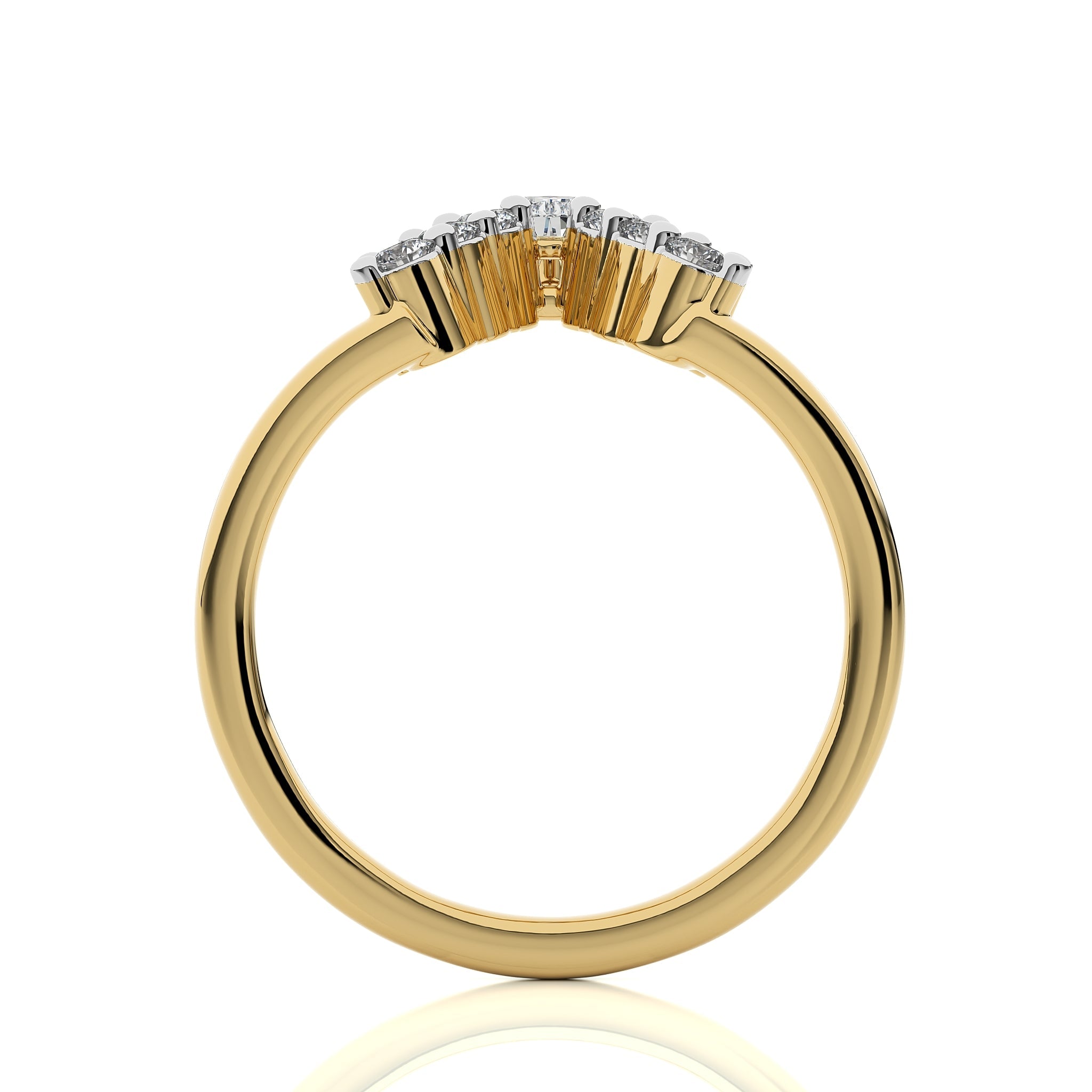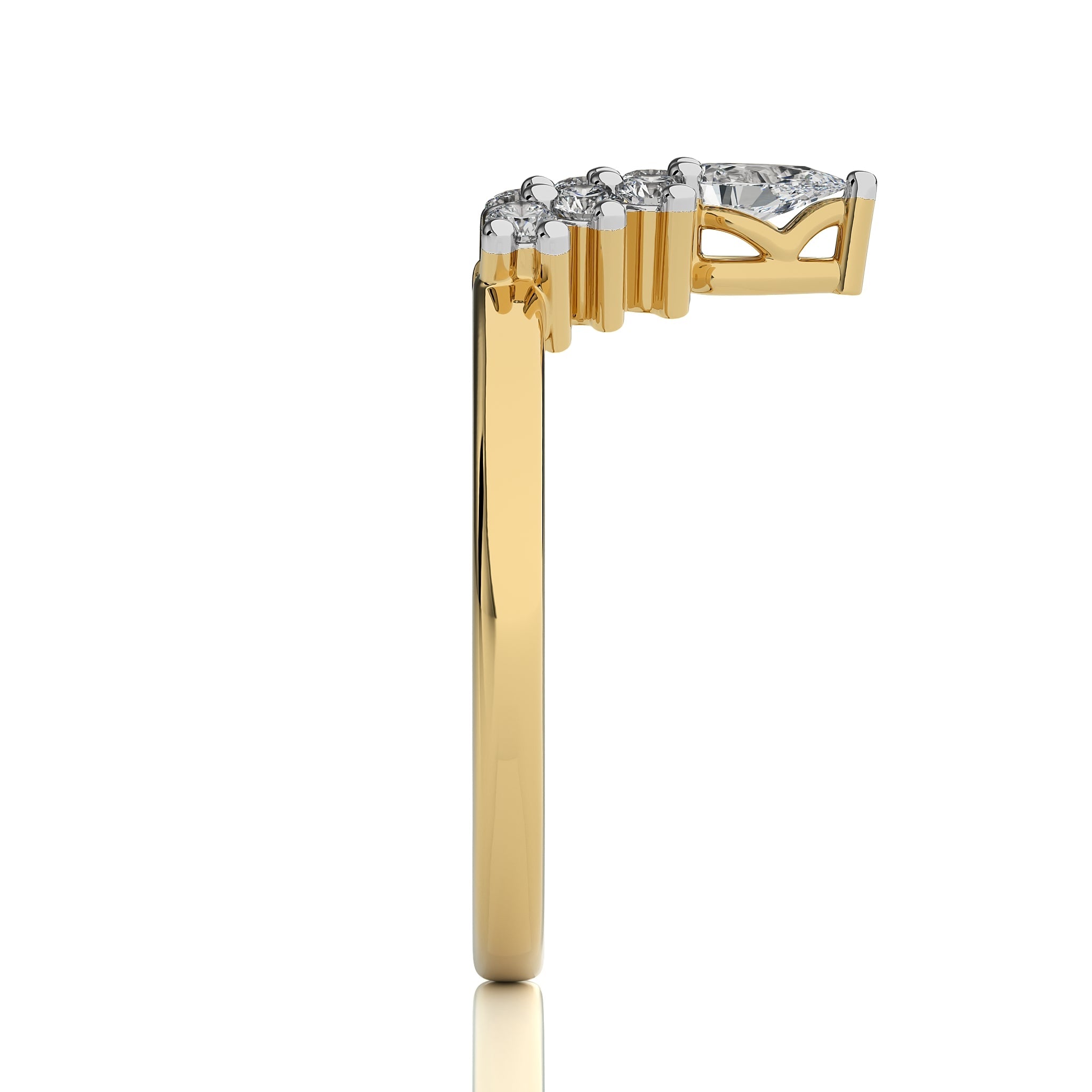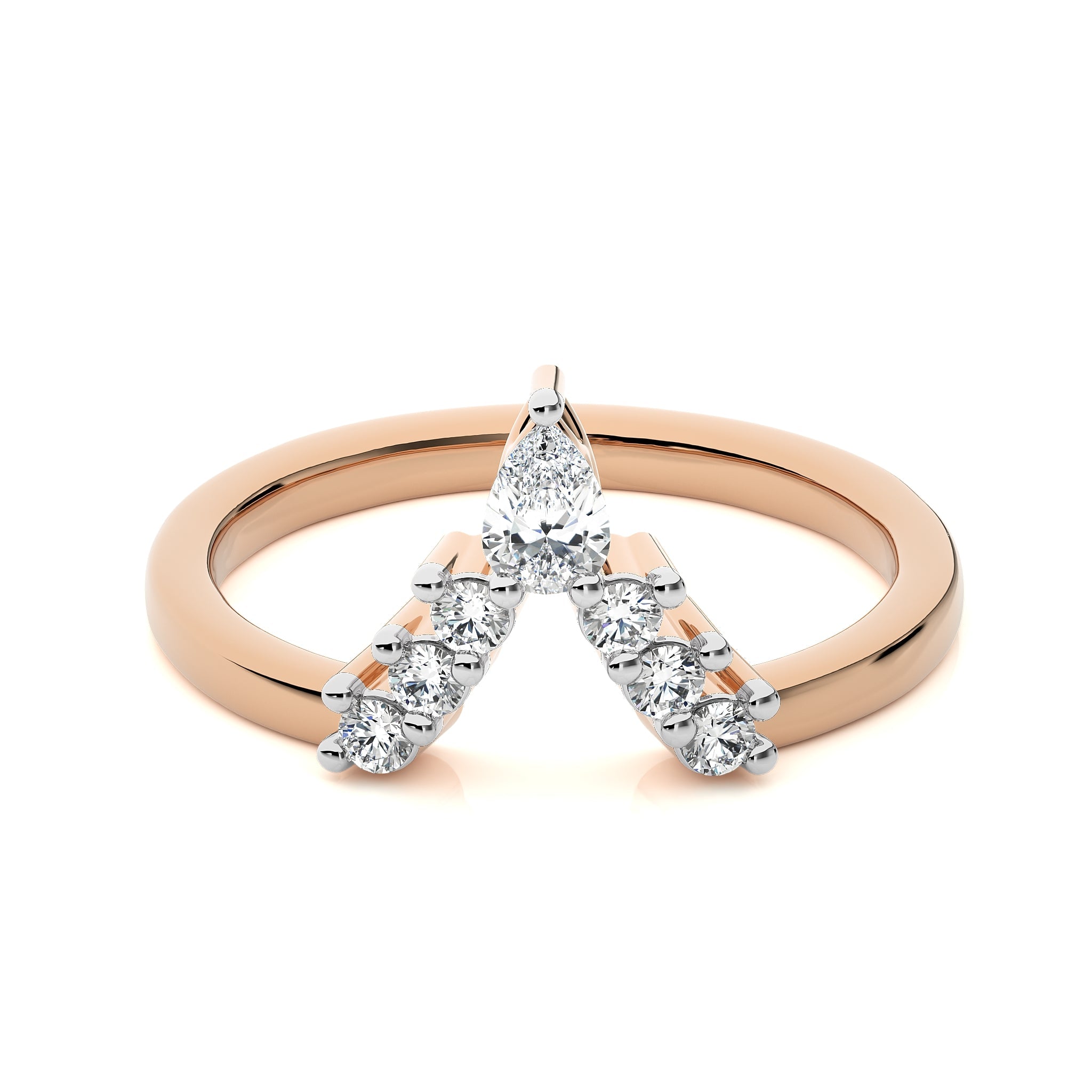 Redefine your fashion with this 1/4 CT. V Shape Band, featuring a blend of pear and round Natural diamonds in H-I/I1-I2 quality. The prong setting ensures a captivating brilliance. A distinctive piece that complements any special occasion