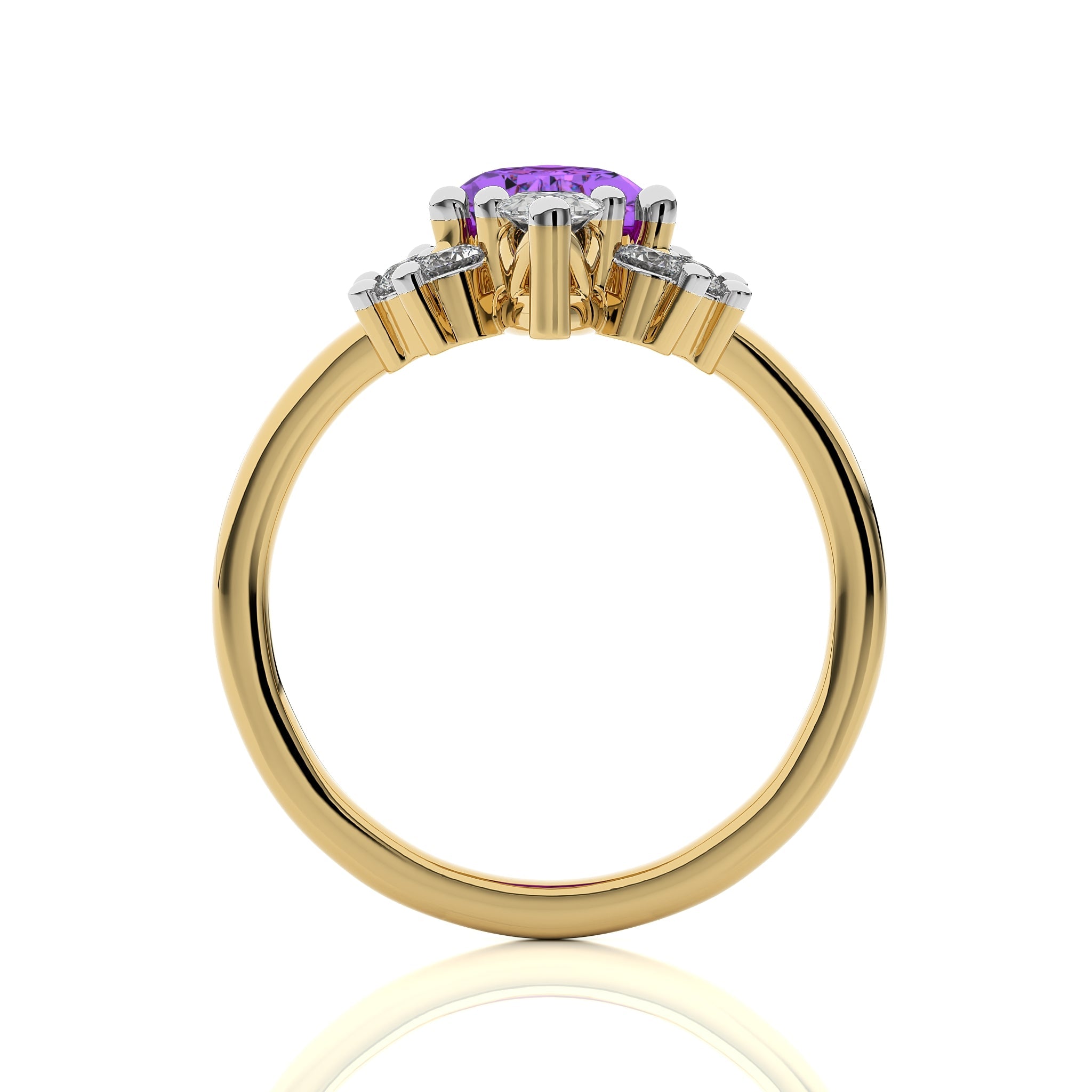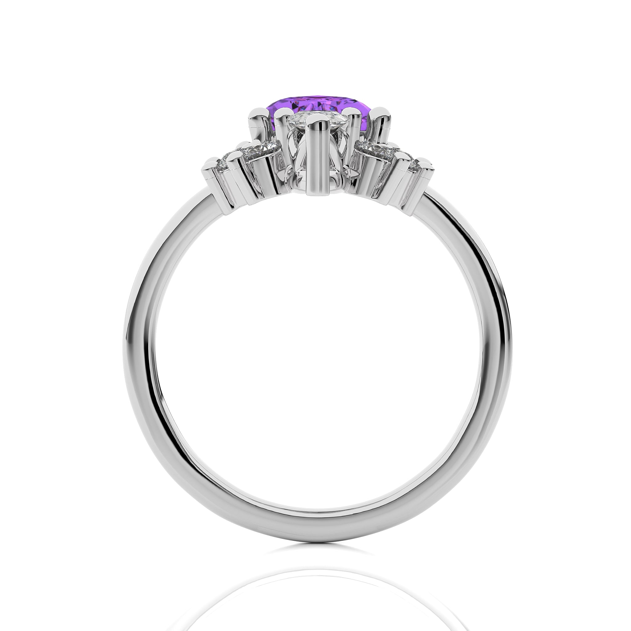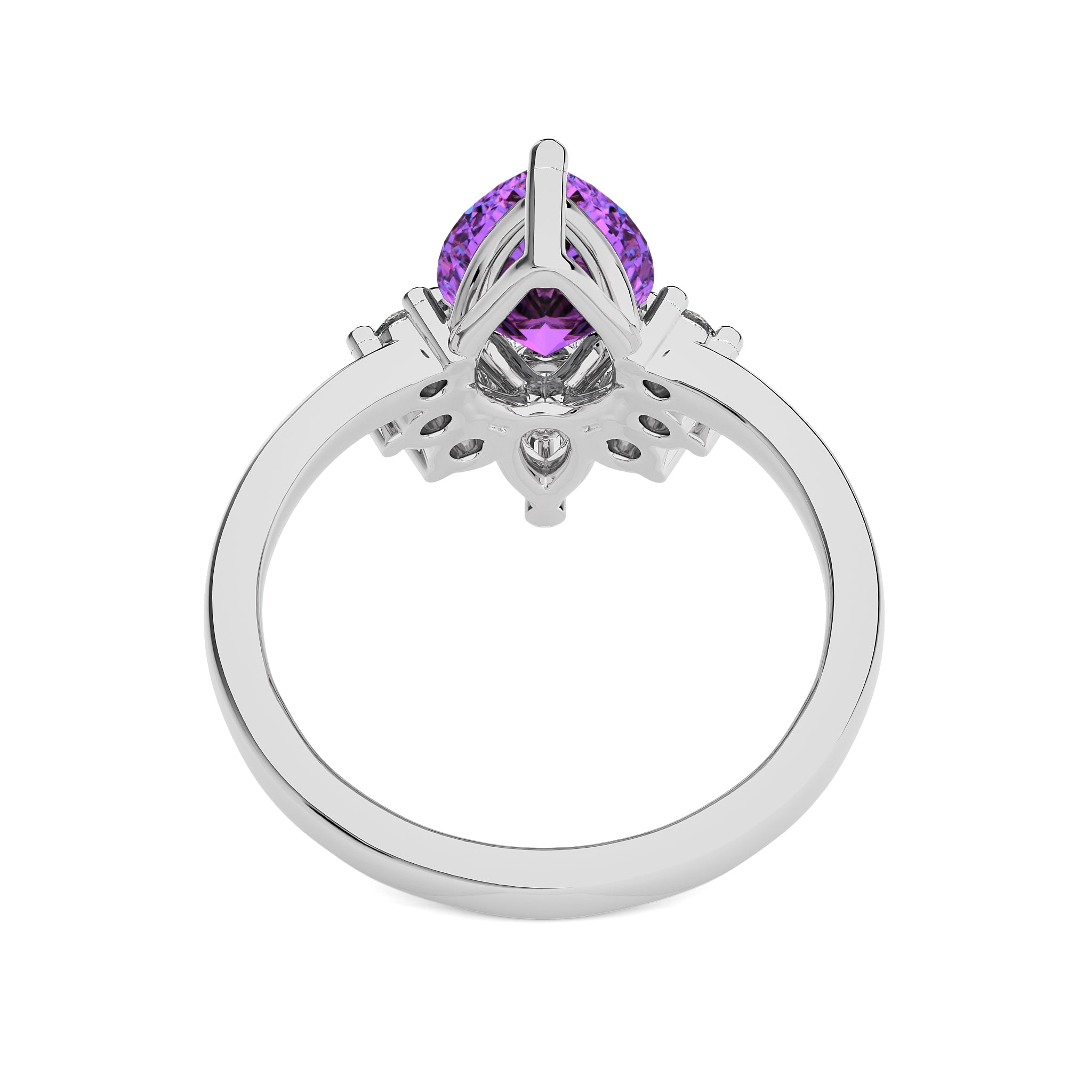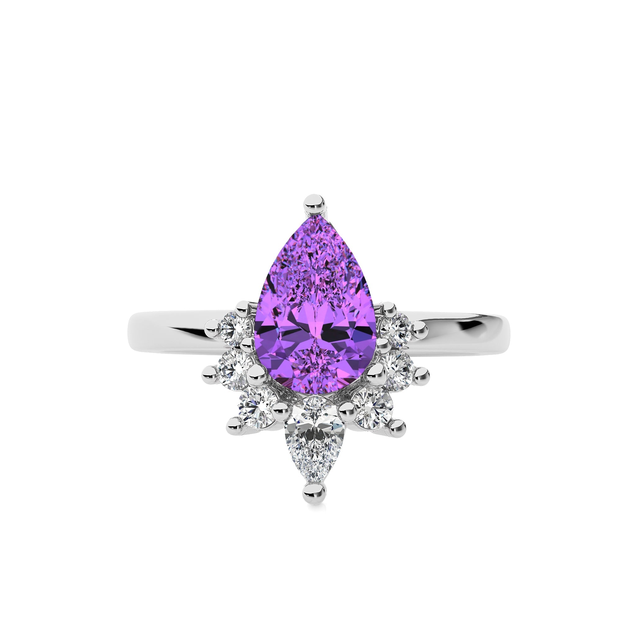 This 1 1/4 CT. Round and Pear Diamond Natural Diamond and Amethyst Engagement Ring features a stunning blend of round and pear-shaped diamonds, complemented by a vibrant amethyst. A flawless mix of elegance and individuality, this ring captures the essence of love in a breathtaking design